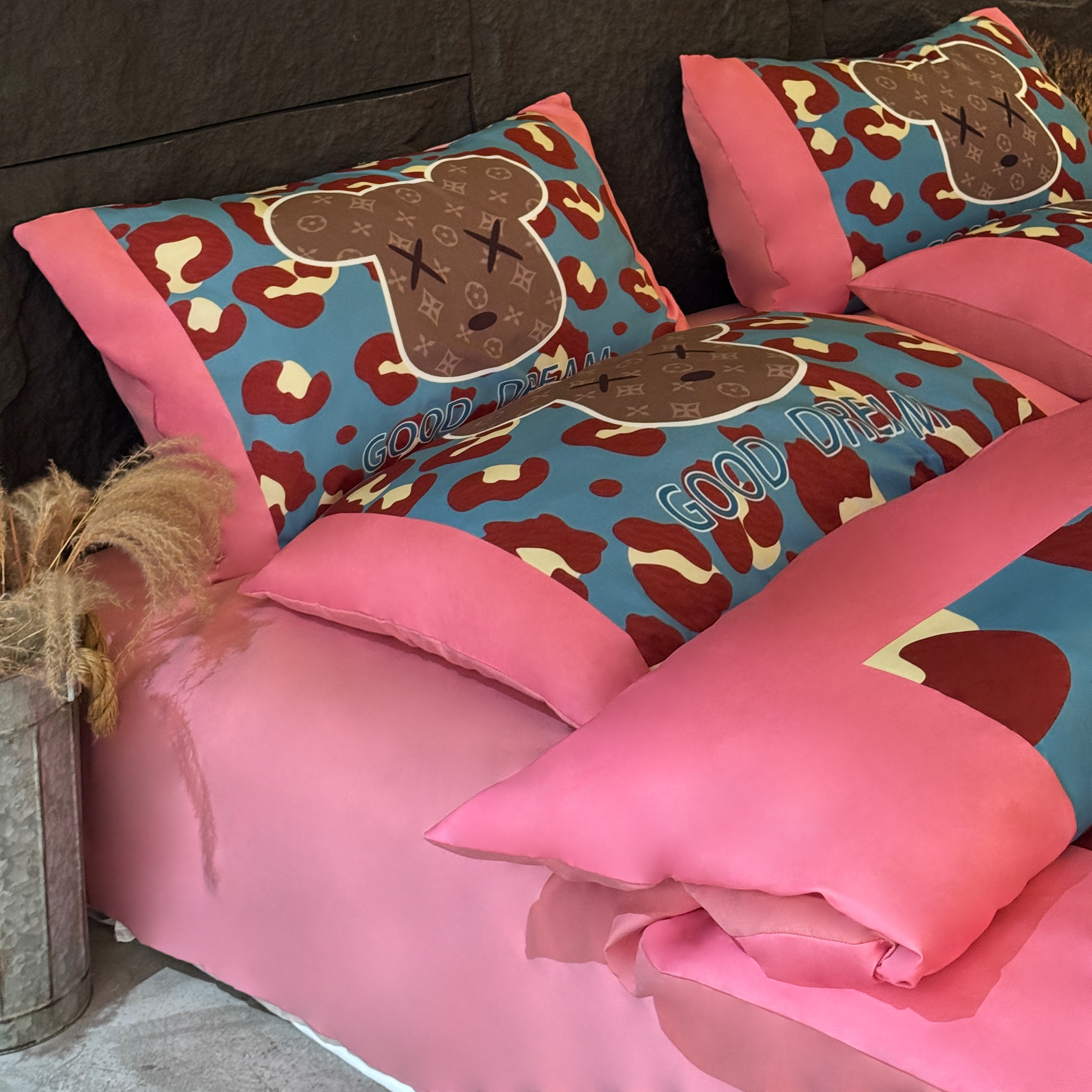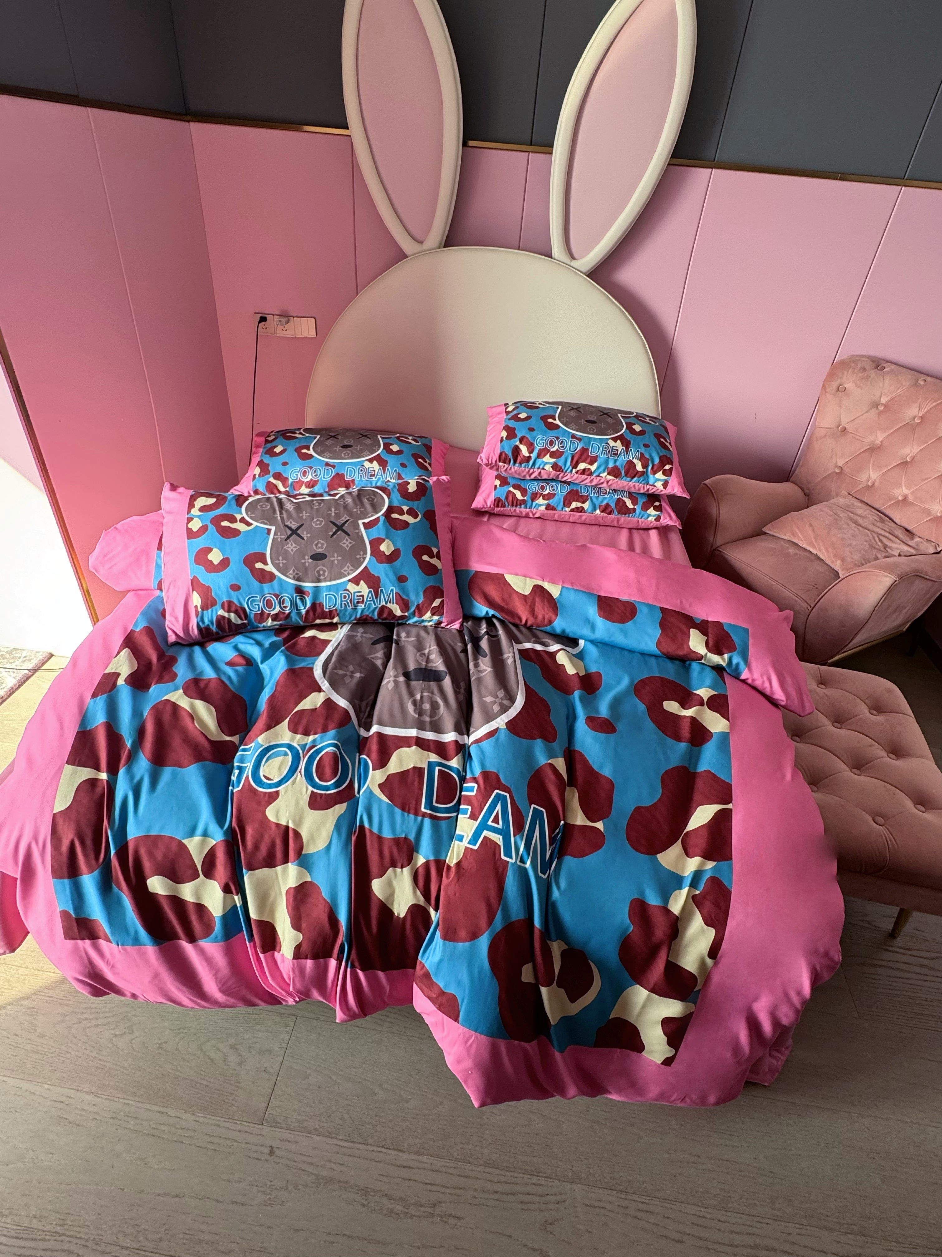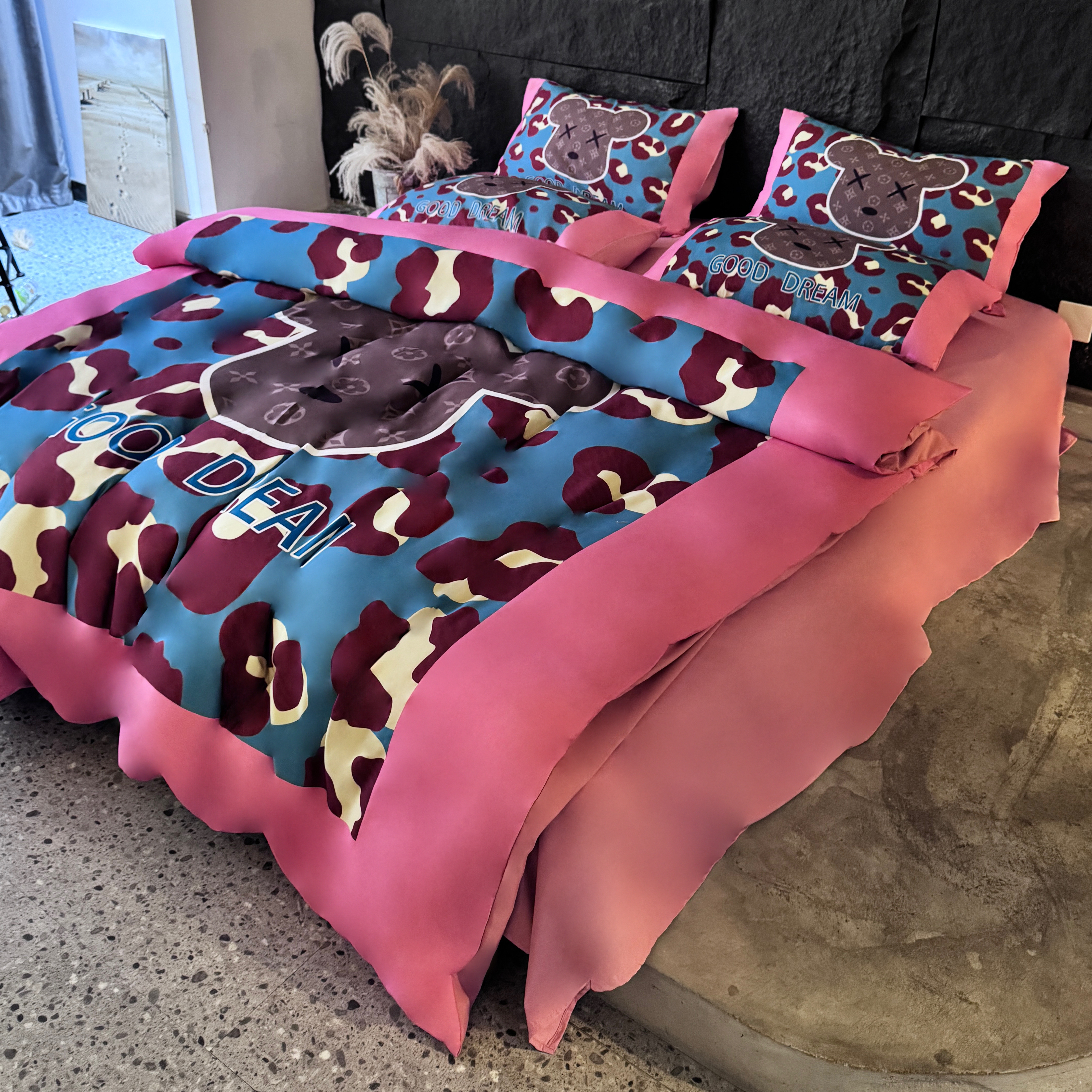 (总)丽斐纺织 2025新款水洗冰丝数码印花四件套,绿野,森林,巴宝,白山茶,彩蝶,格调,黑粉熊,黑色礼物,黑山茶,黑香,红玫瑰,灰丝豹,橘子洲,蓝熊,绿野仙踪,墨碟,寻彩熊,油画熊