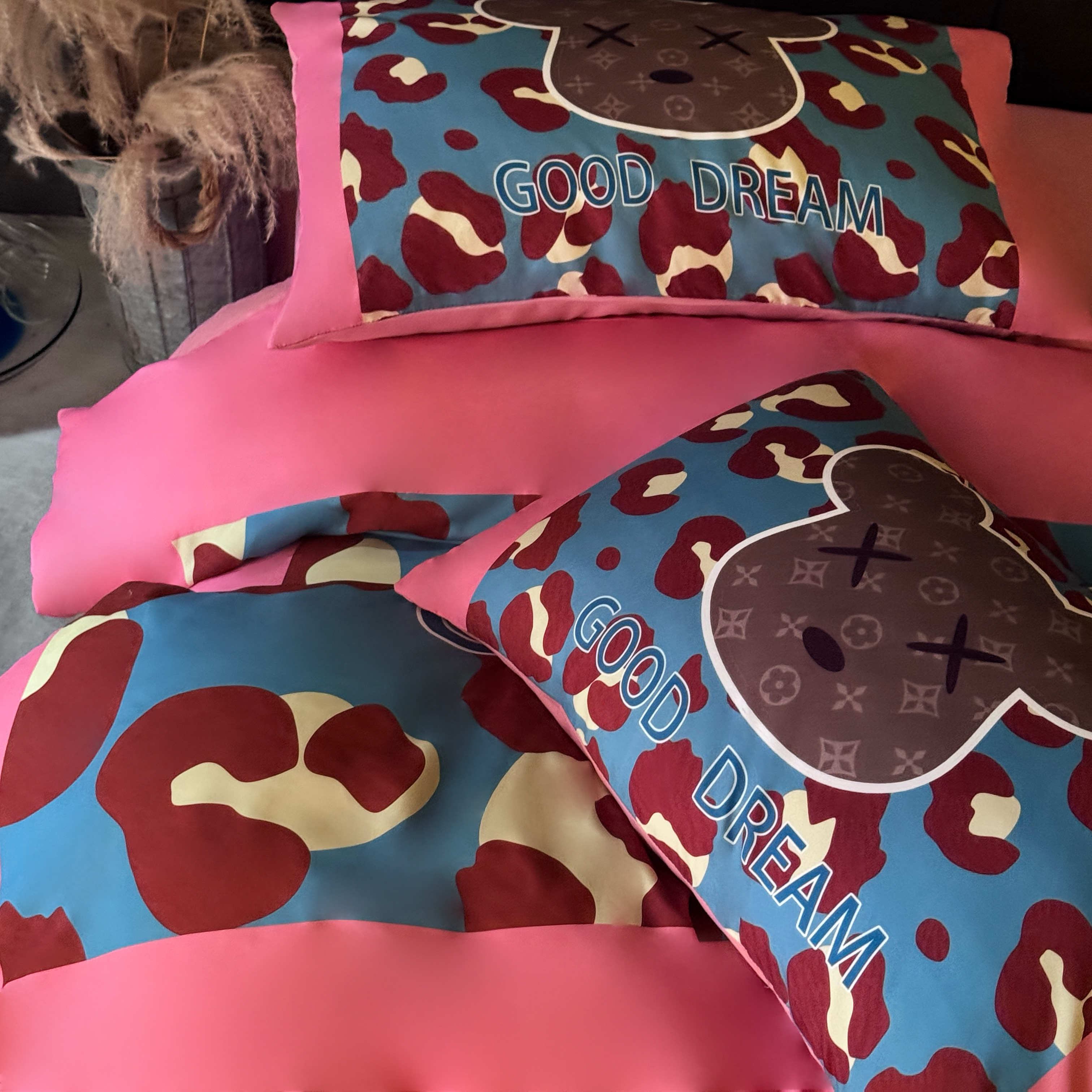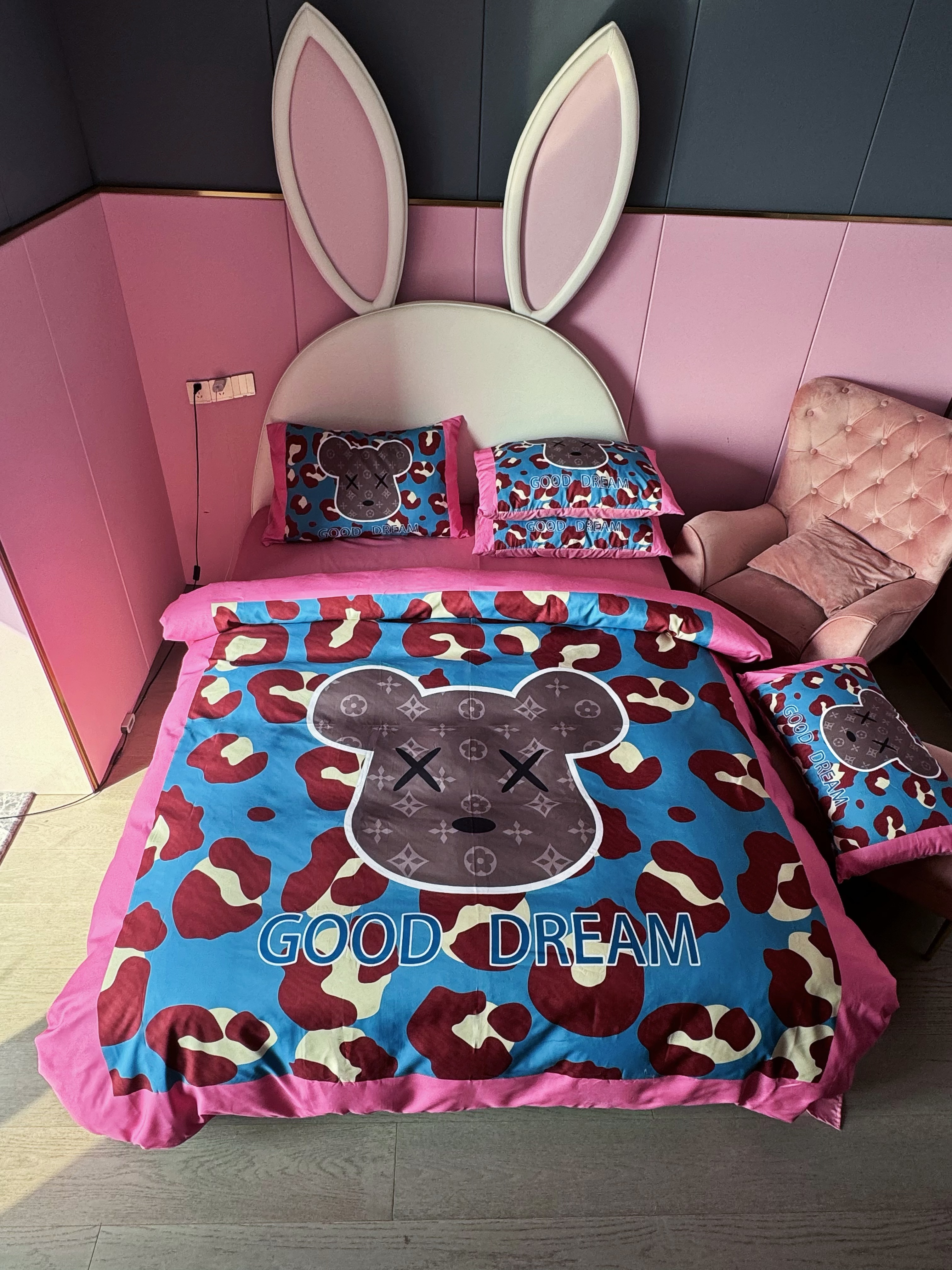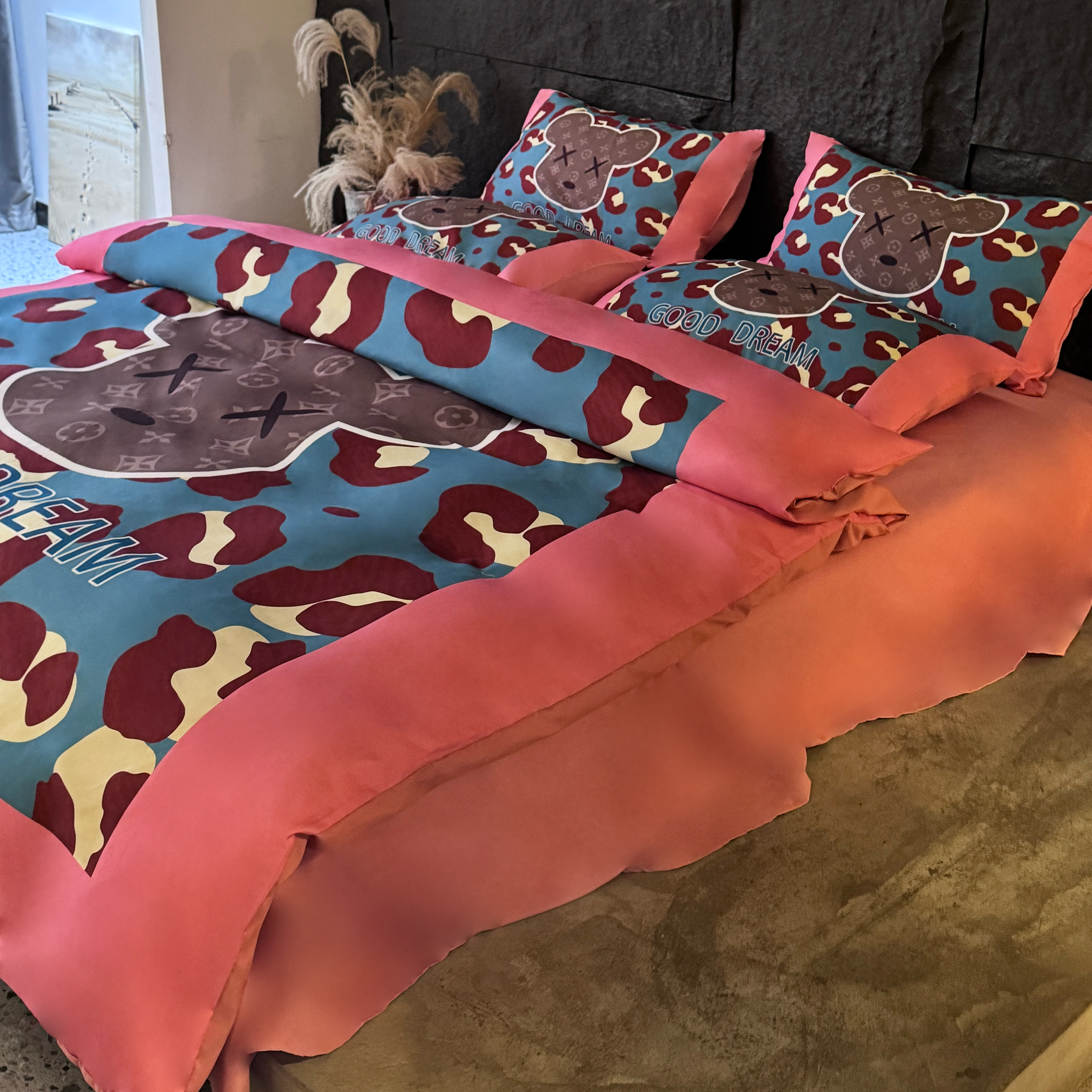 (总)丽斐纺织 2025新款水洗冰丝数码印花四件套,绿野,森林,巴宝,白山茶,彩蝶,格调,黑粉熊,黑色礼物,黑山茶,黑香,红玫瑰,灰丝豹,橘子洲,蓝熊,绿野仙踪,墨碟,寻彩熊,油画熊