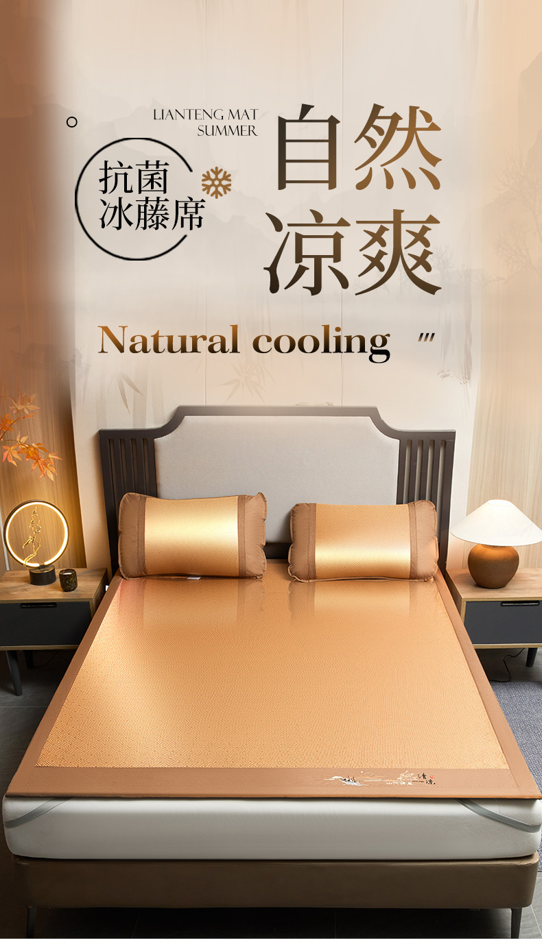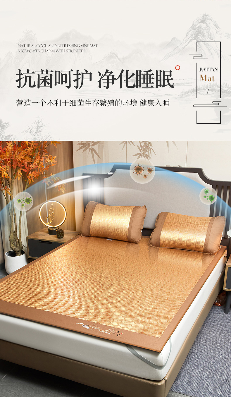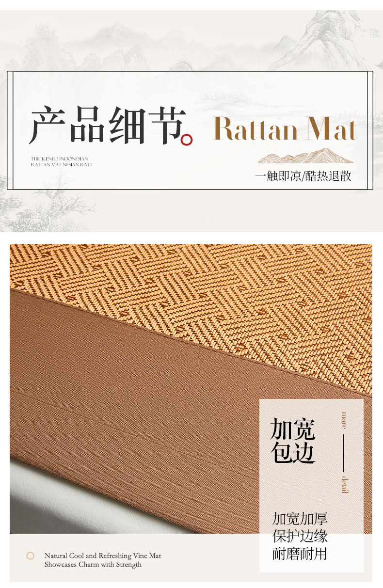 (总)航途席业 2025新款包边抗菌冰藤席冰藤凉席,冰藤格纹,冰藤繁华 ,冰藤简意