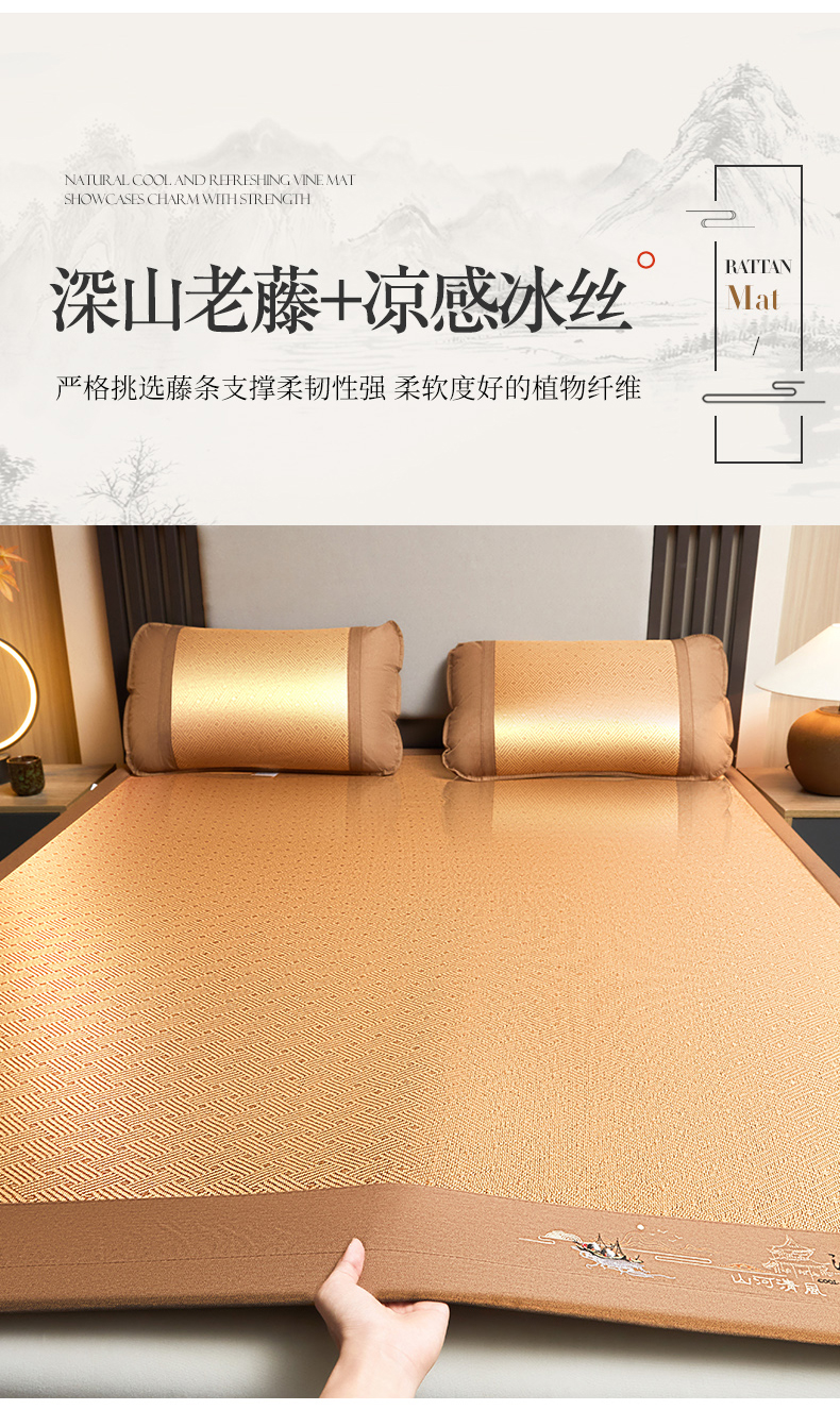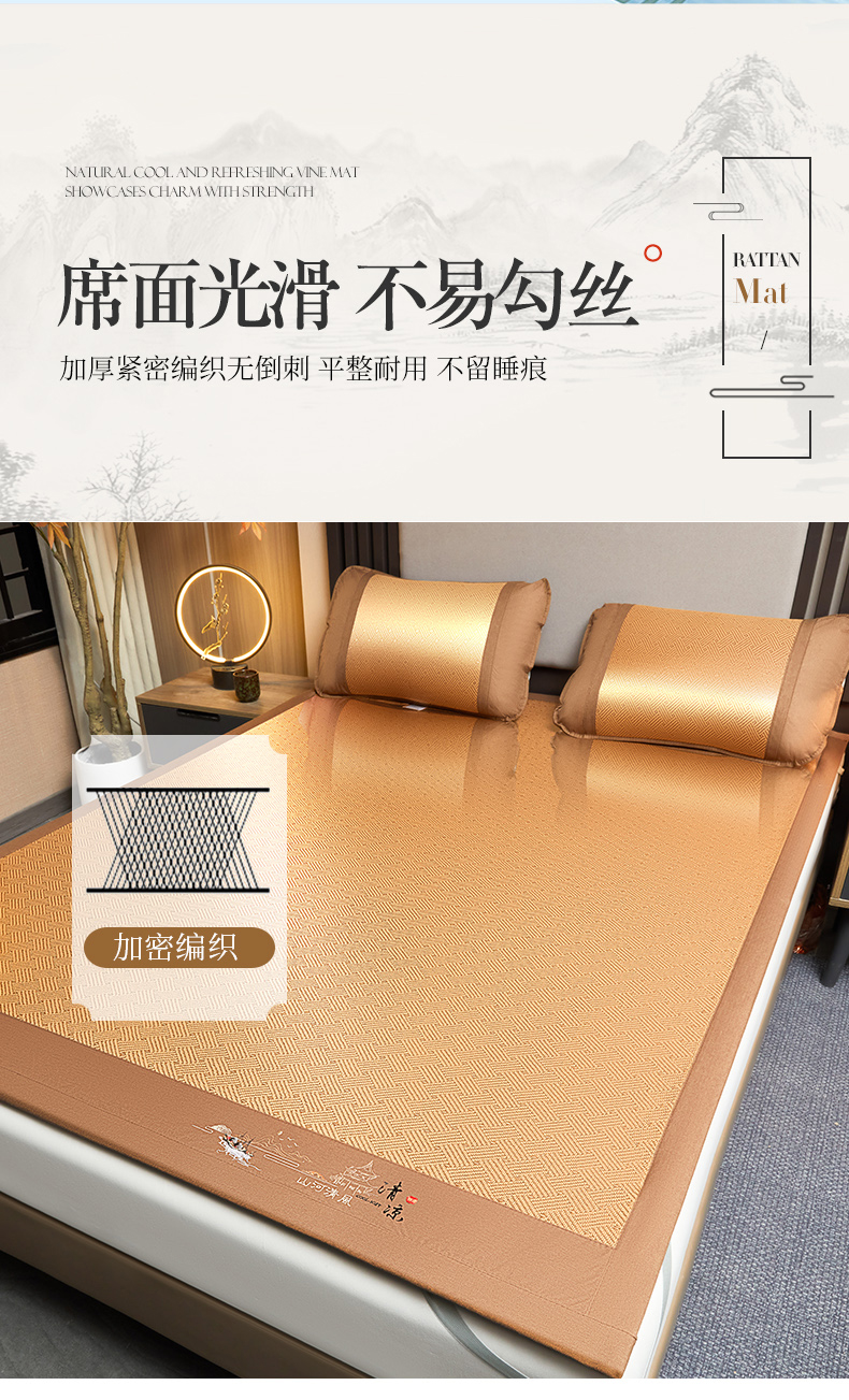 (总)航途席业 2025新款山河清风冰藤席三明治款,清风古典 三明治,清风古典 无纺布,清风深棕 三明治,清风花禧 三明治,清风花禧 无纺布,清风深棕-无纺布