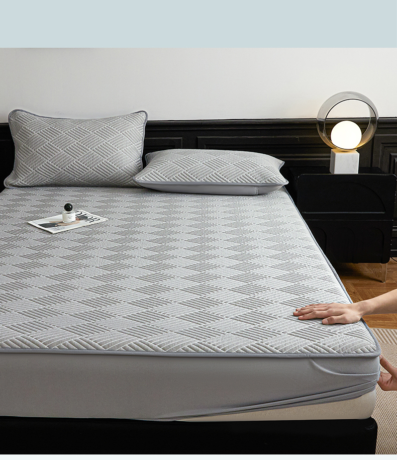 (总)欧邦 2025新款提花暖阳绒单床笠,苍穹蓝,初雪白,海棠粉,慕斯灰,青瓷绿,檀木咖