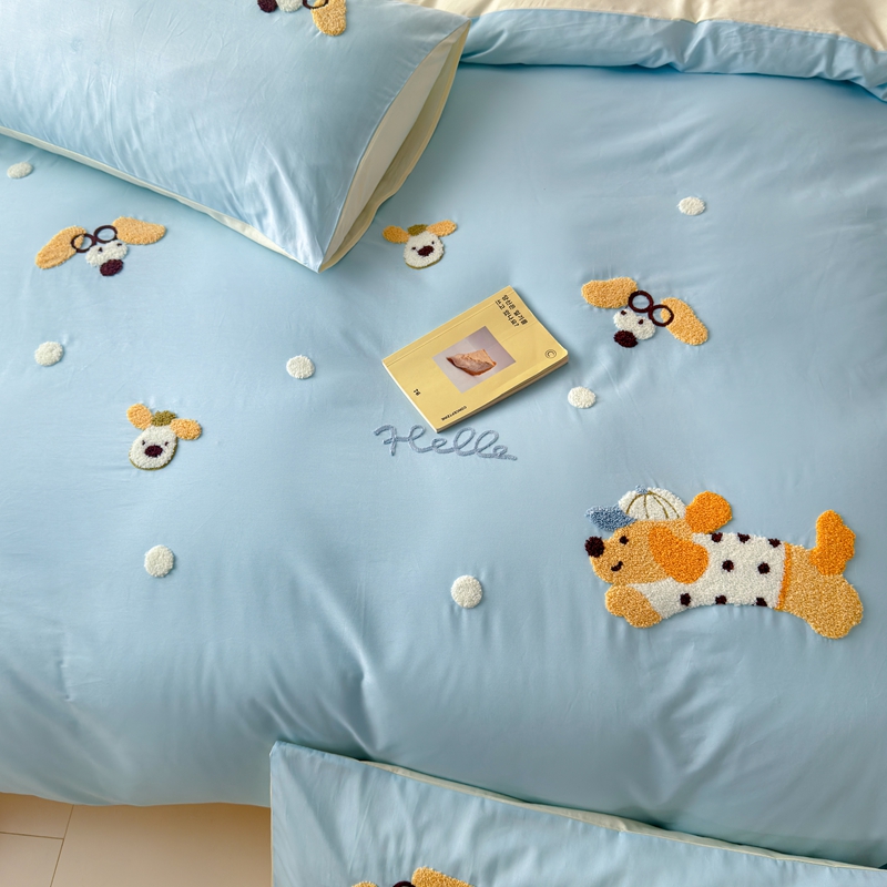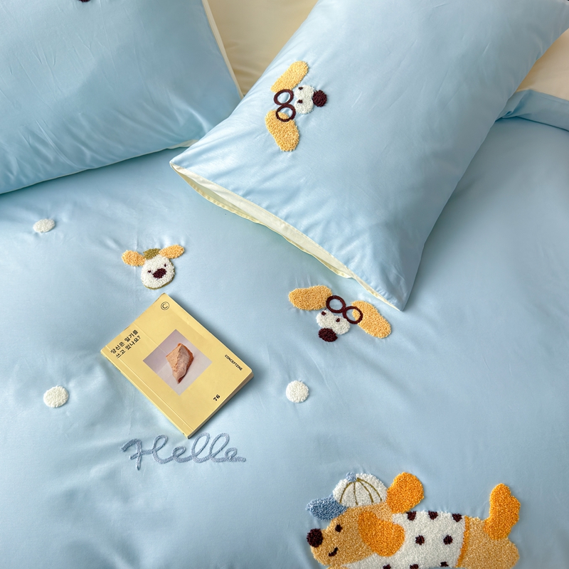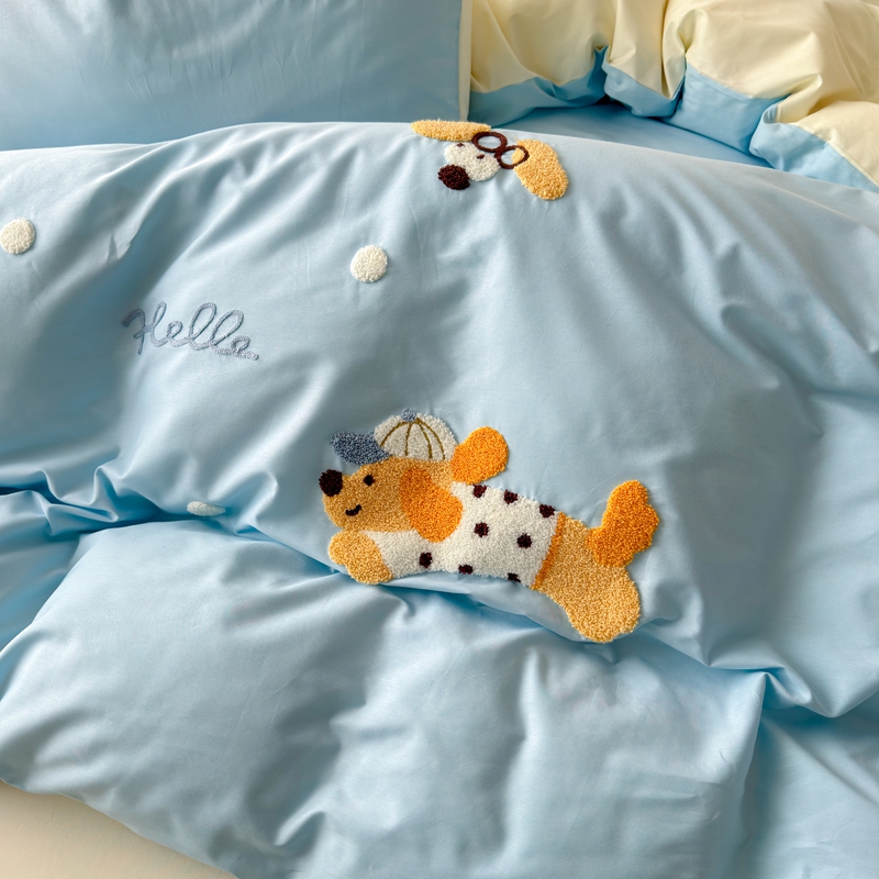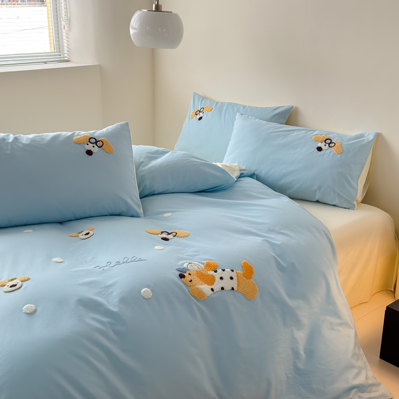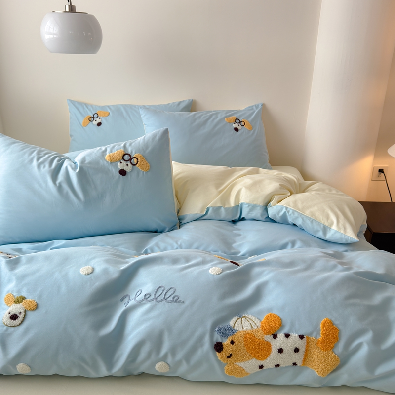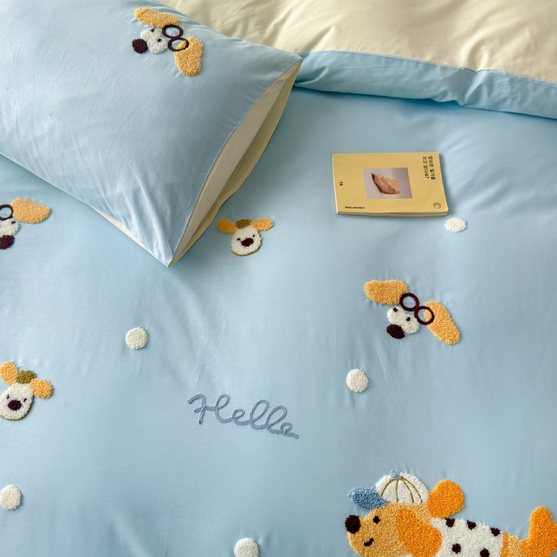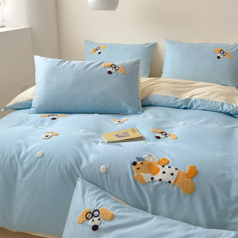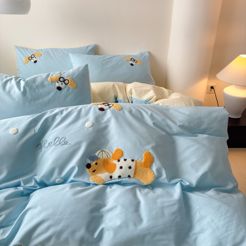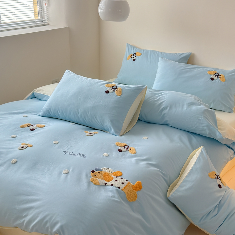 (总)锦觅家纺 2025新款卡通小清新毛巾绣全棉纯棉四件套(大版定位花型)