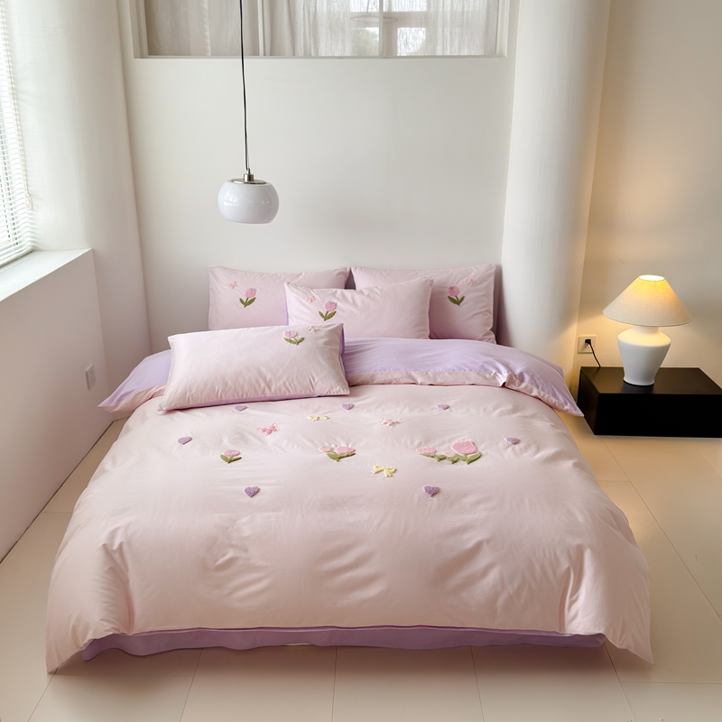 (总)锦觅 2025秋冬新款A类纯色小清新全棉磨毛绣花保暖四件套-第二批,可爱小兔,繁花似锦(米粉),可爱女孩(粉白)