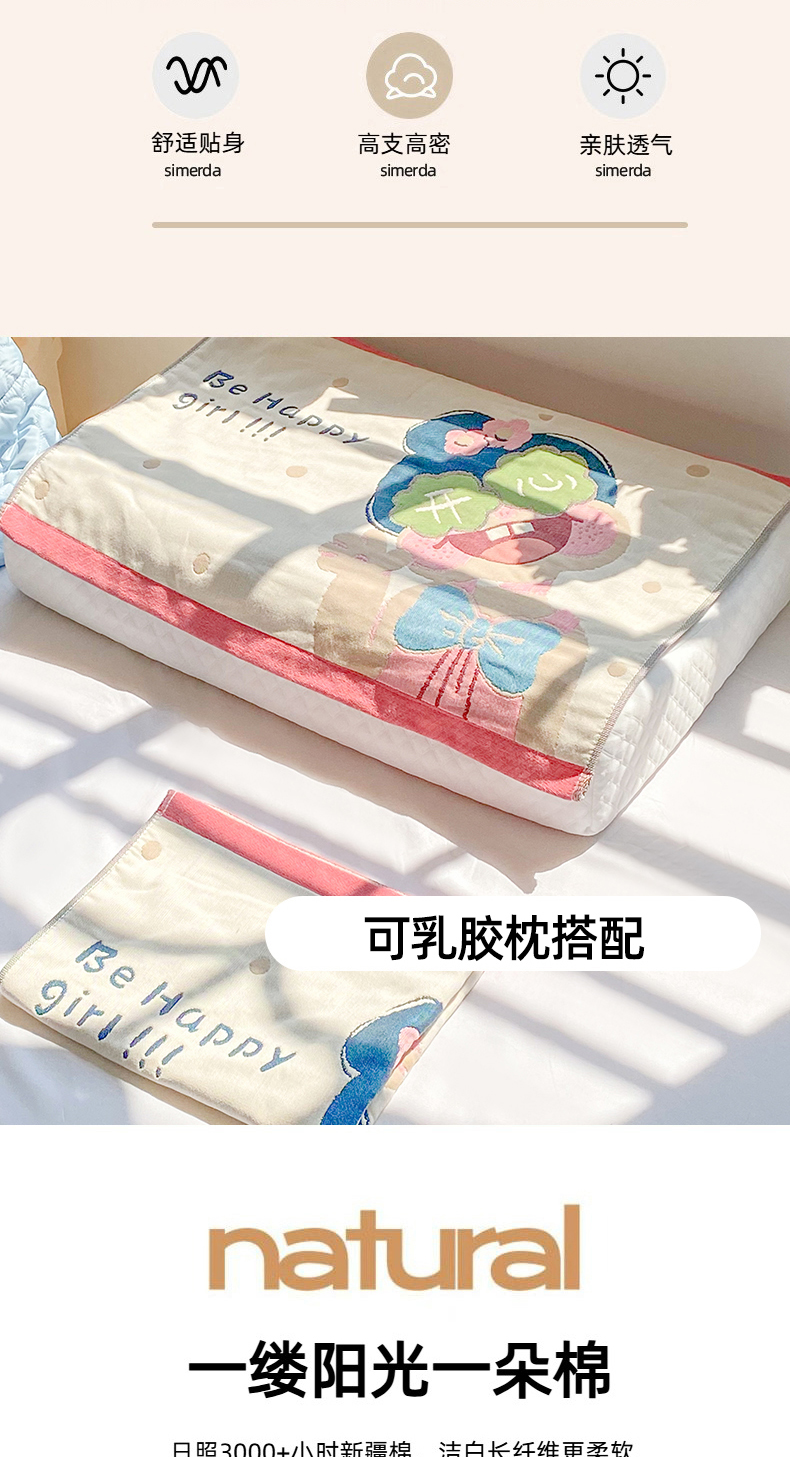 商品名称:美宜家 2025新款40*60儿童纯棉A类纱布枕巾乳胶专用高档枕巾 快乐 一只