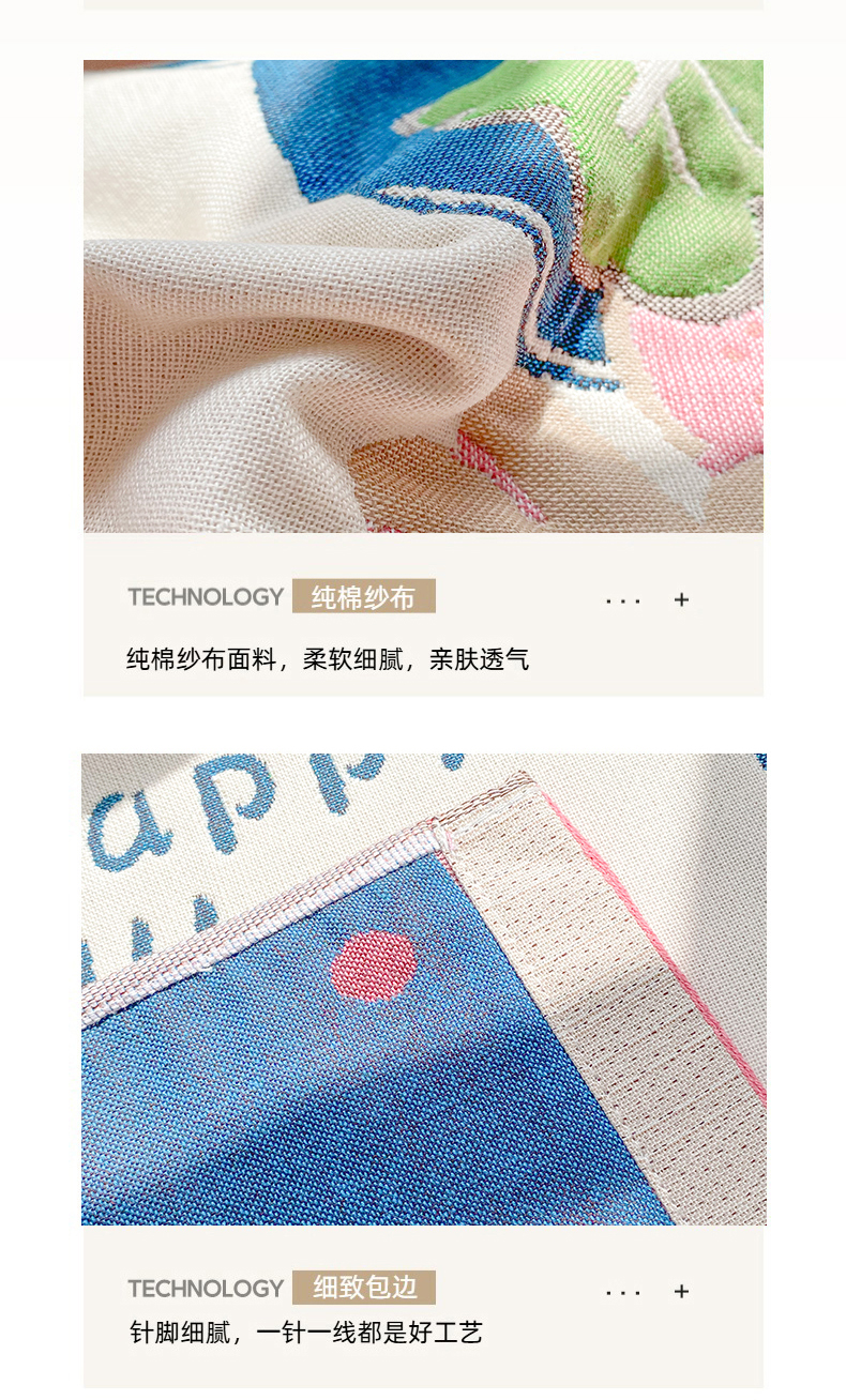 美宜家 2025新款40*60儿童纯棉A类纱布枕巾乳胶专用高档枕巾 快乐 一只