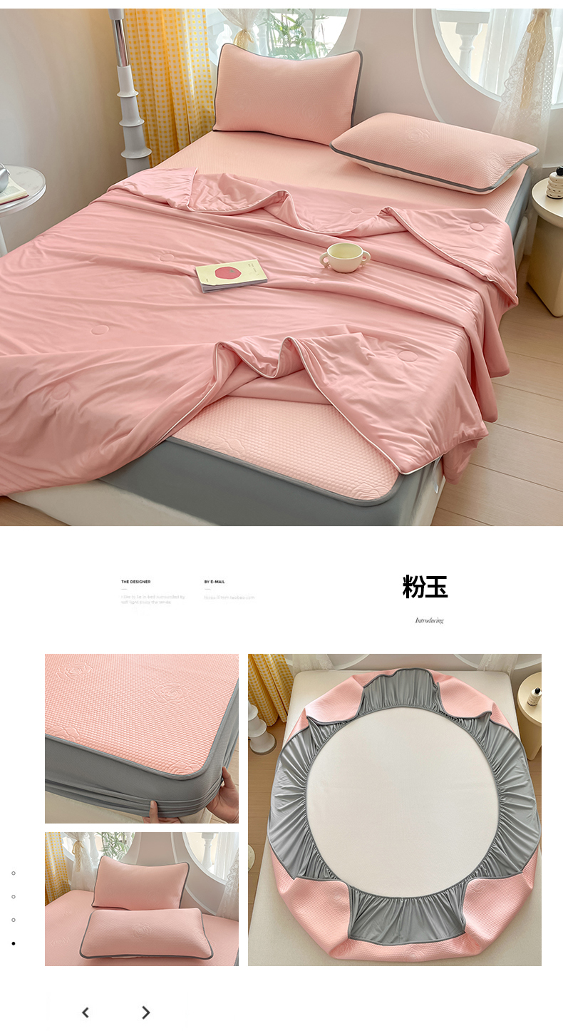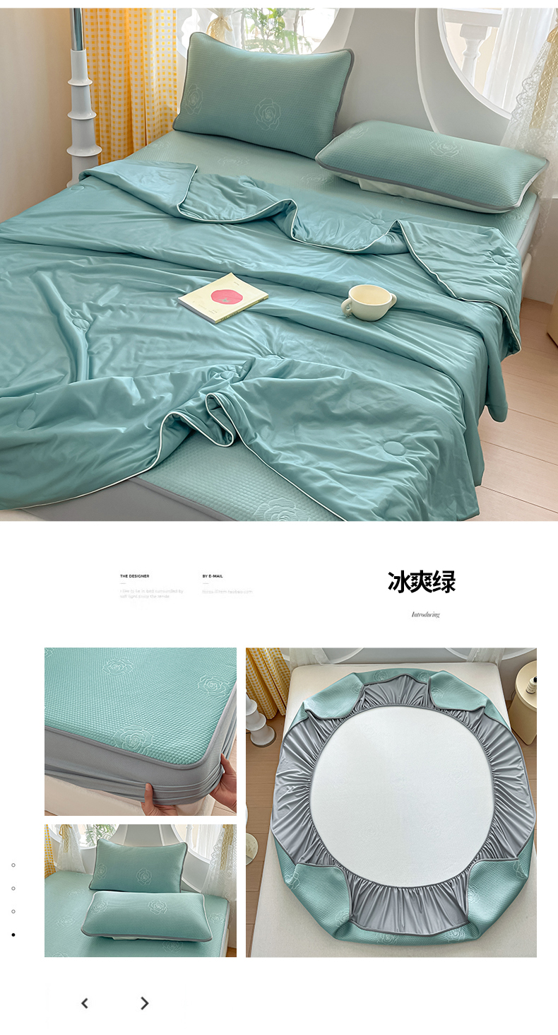 当前位置: 91家纺网 > 商品网购 > 被子 > 夏被 > 欧邦 2025春夏新款提花冰豆豆床笠款夏被夏凉被空调被四件套-牡丹花系列 冰爽绿