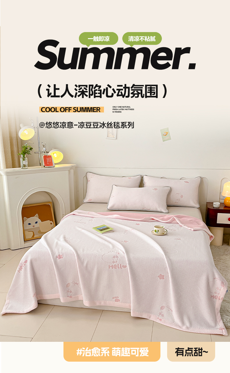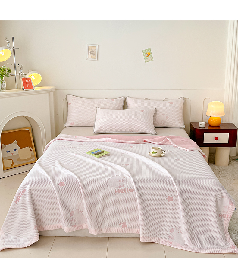 卡伦家纺2025凉豆豆冰丝毯系列 卡皮巴拉——粉