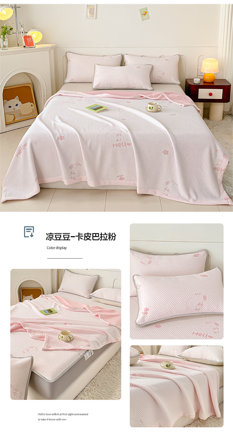 商品名称:卡伦家纺2025凉豆豆冰丝毯系列 卡皮巴拉——粉