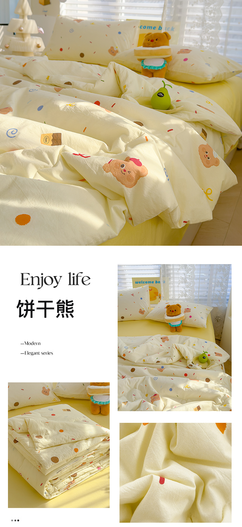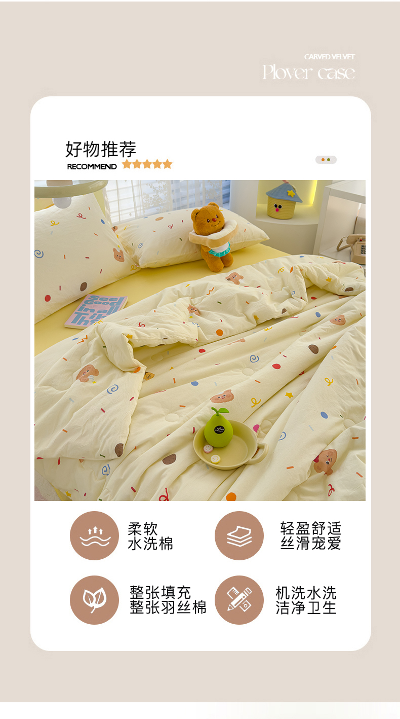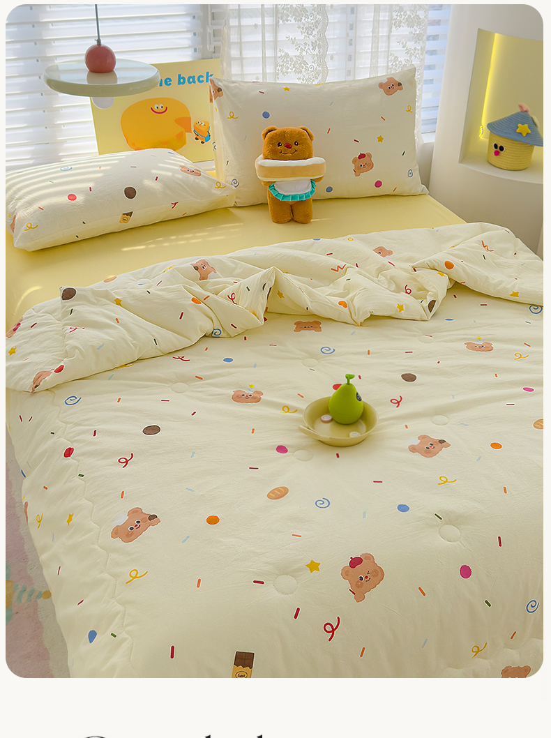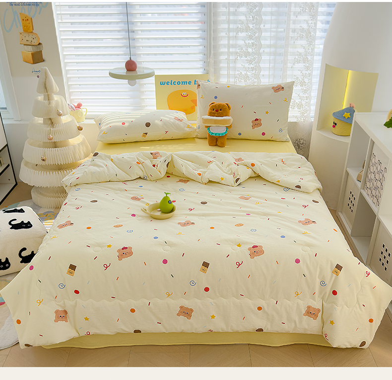 当前位置: 91家纺网 > 商品网购 > 床品套件 > 四件套 > 夏被四件套 > 颜选 2025新款印花棉柔水洗棉夏被四件套 饼干熊