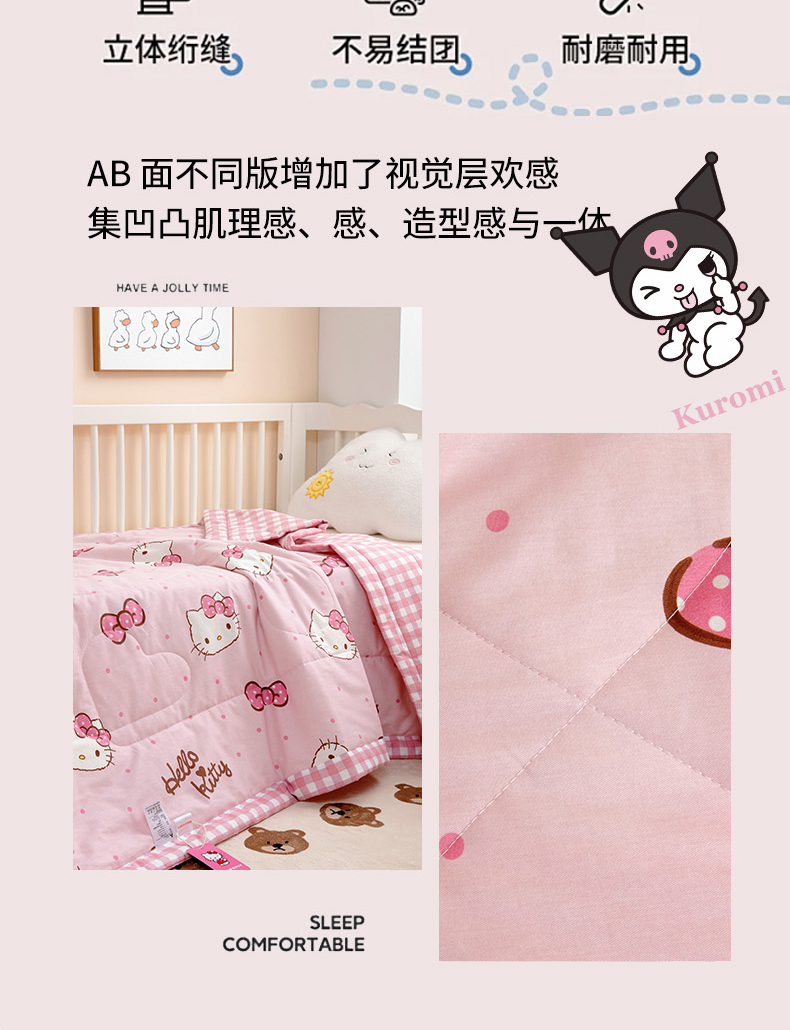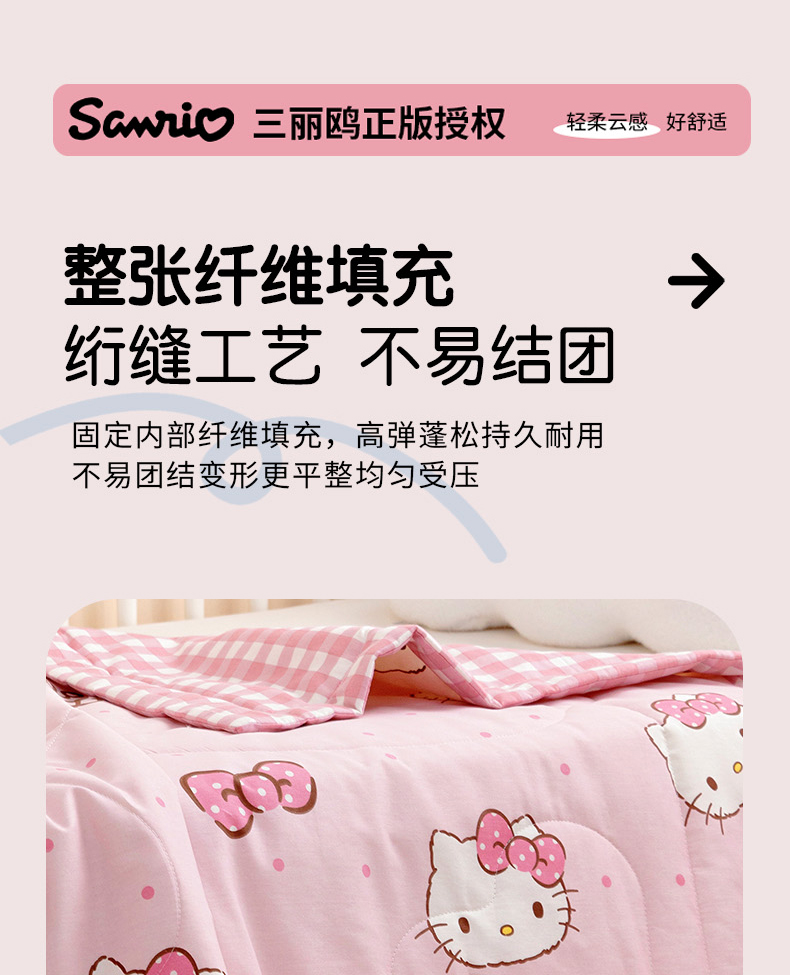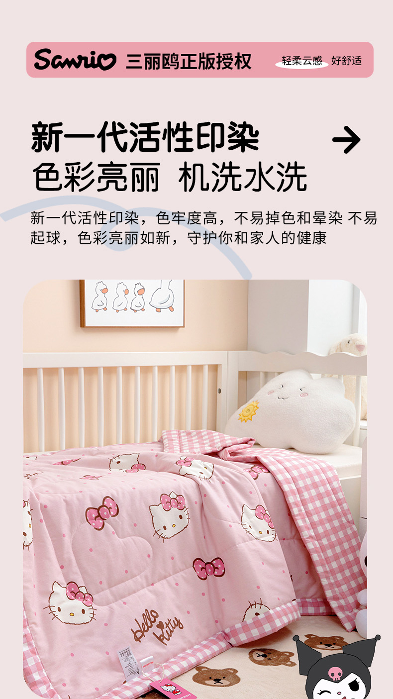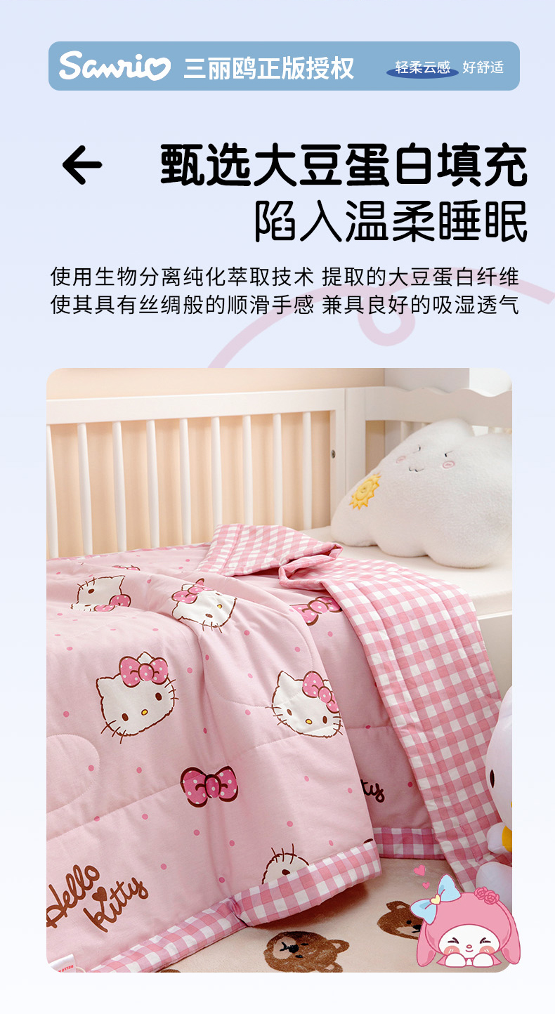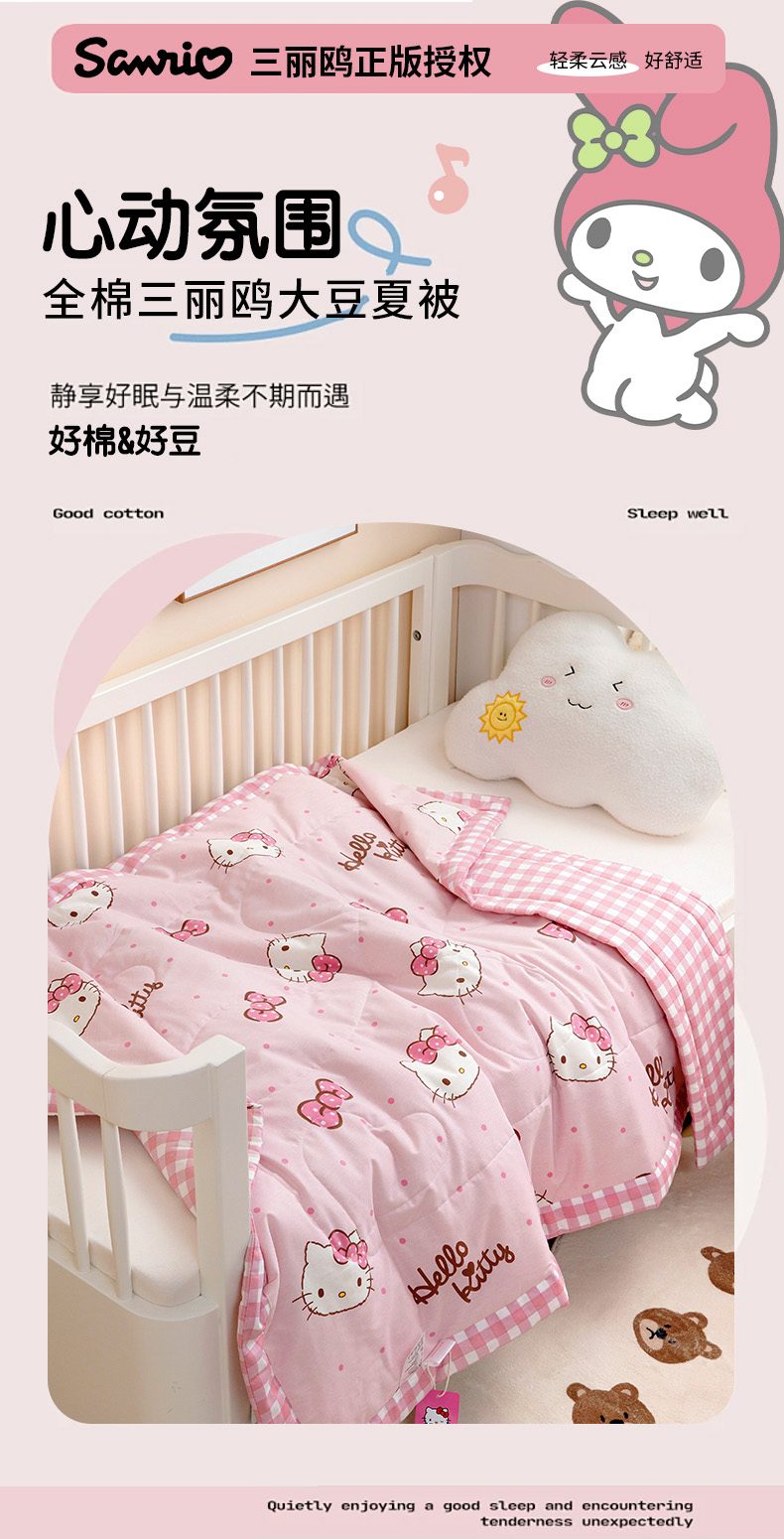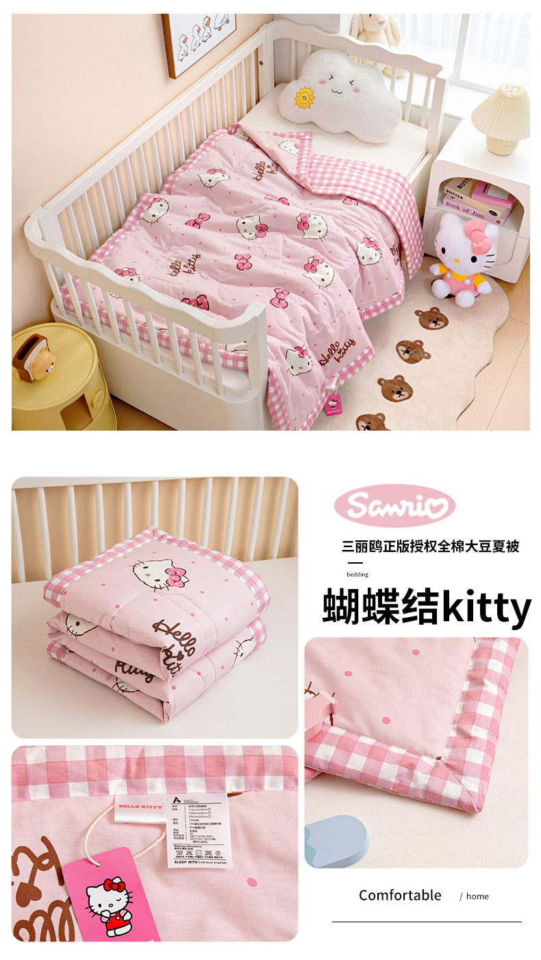 商品名称:芭伯妮 2025新款全棉三丽鸥大豆夏被 纯棉儿童夏被夏凉被空调被 蝴蝶结kitty