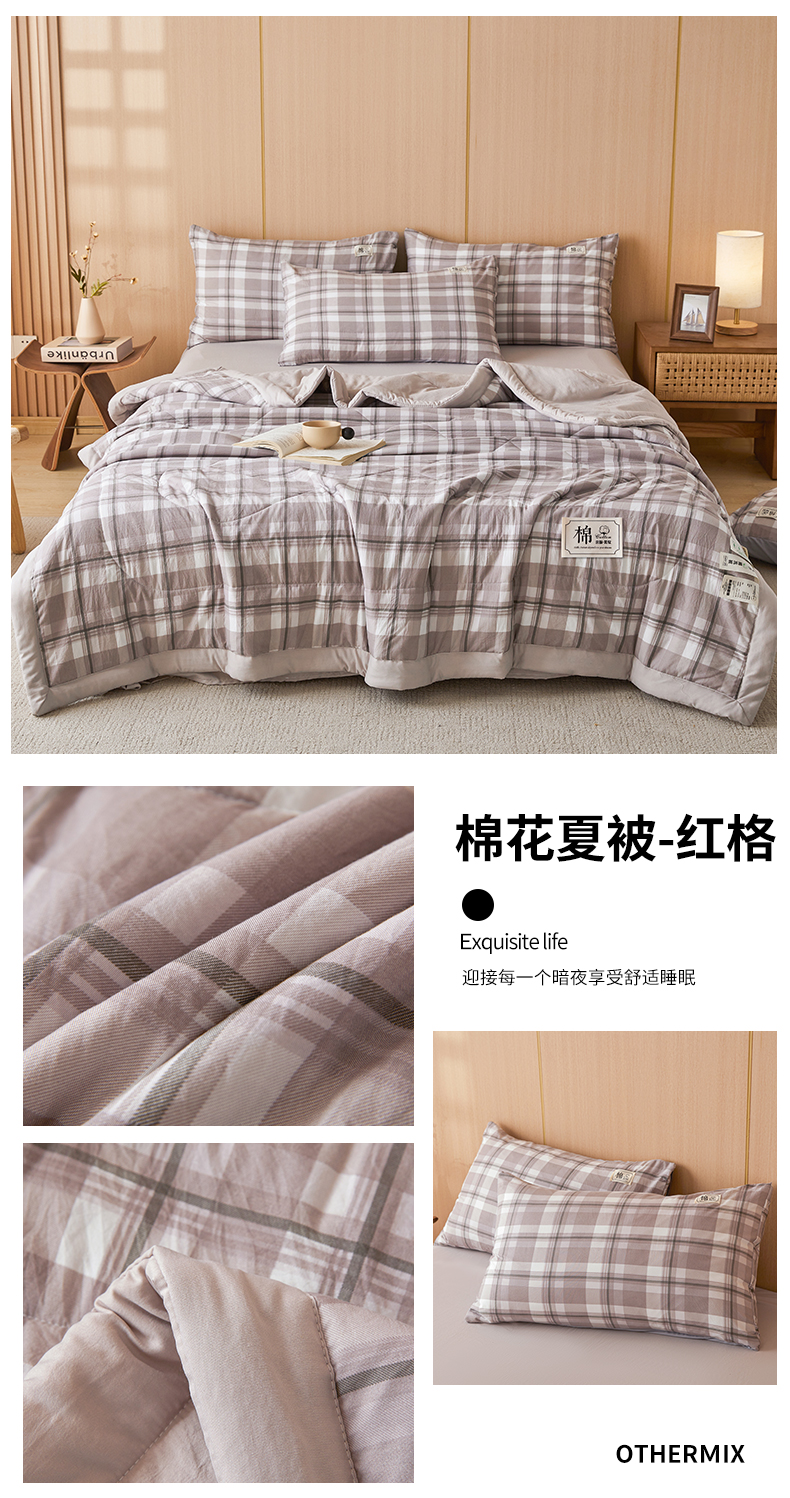 • 91家纺网 家纺一手货源 找家纺 悦织语 2025新款A类色织水洗棉夏被新疆棉花被空调被四件套 棉花夏被-红格