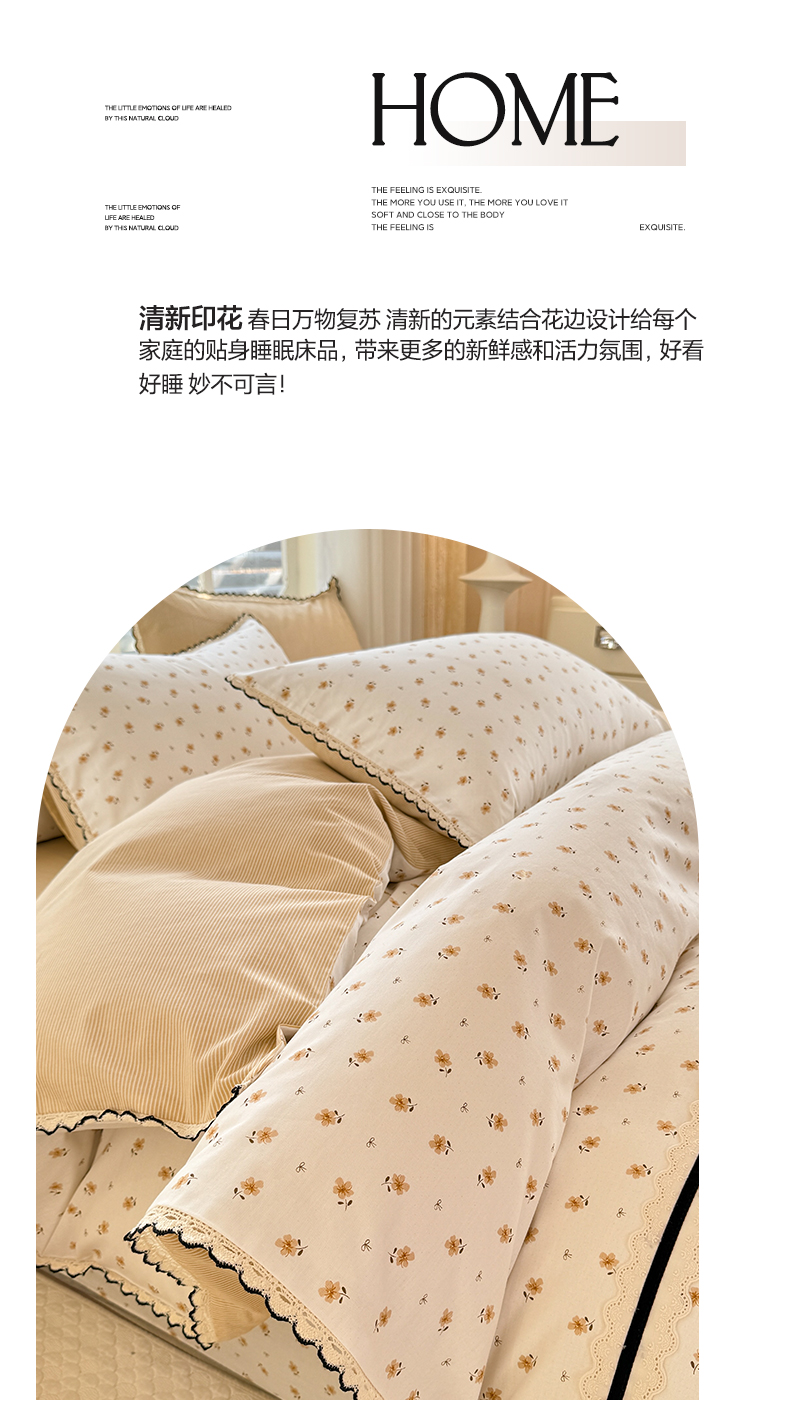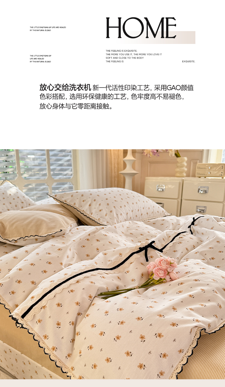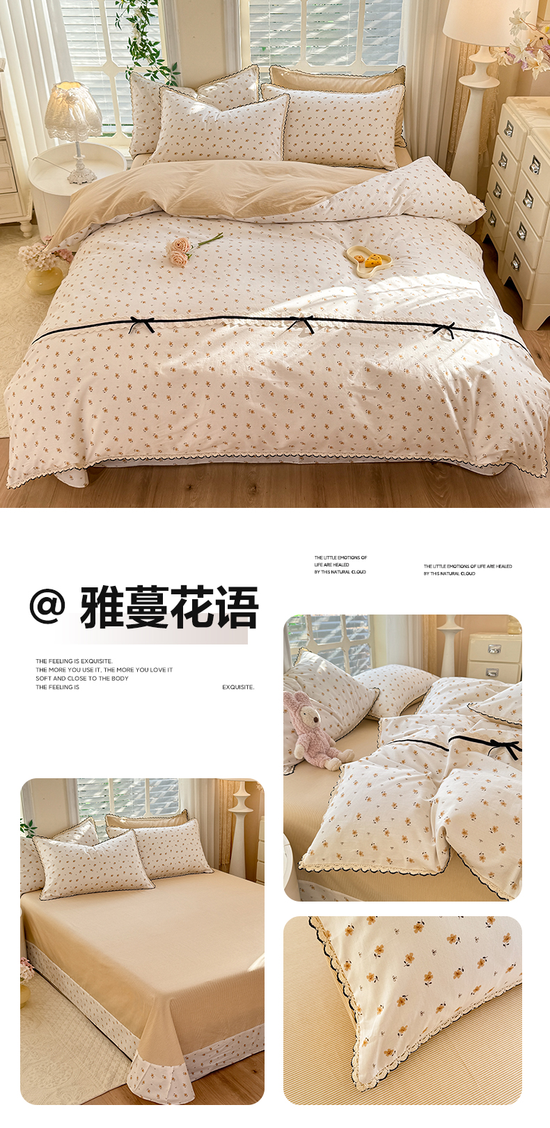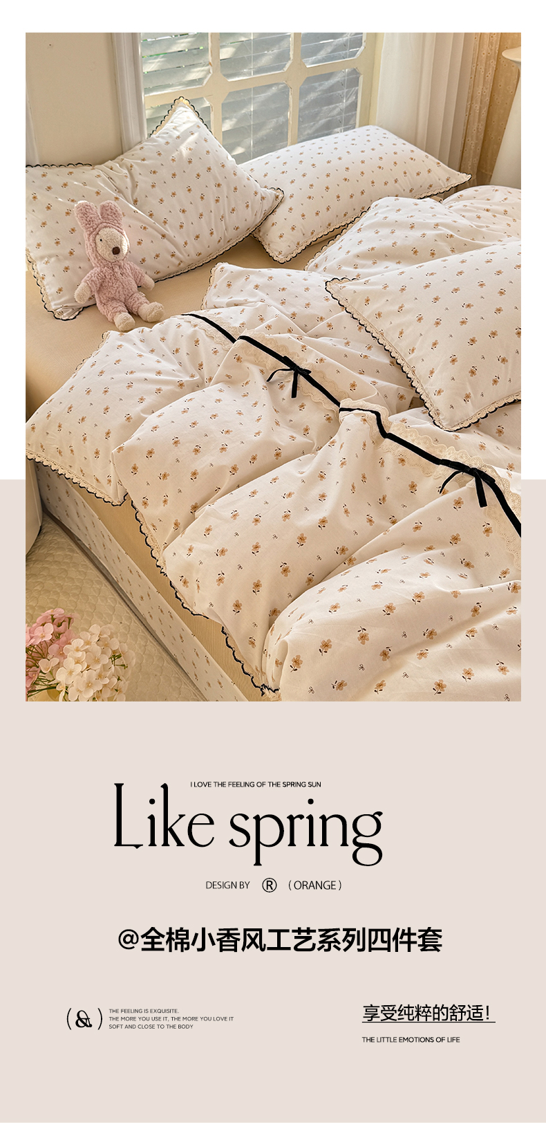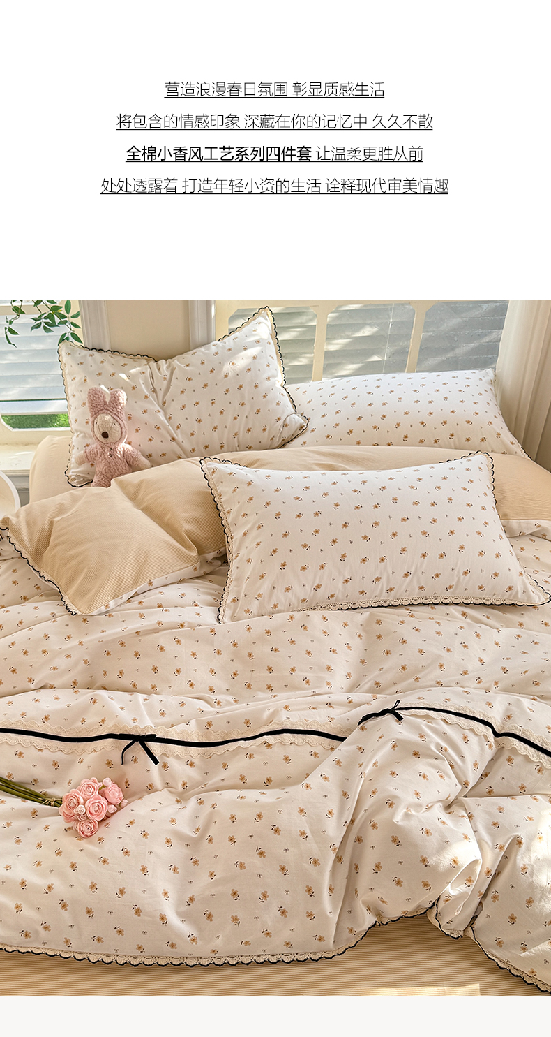 商品名称:艾唯希2025新款全棉小香风工艺四件套纯棉小花边碎花被套韩式公主风 雅蔓花语