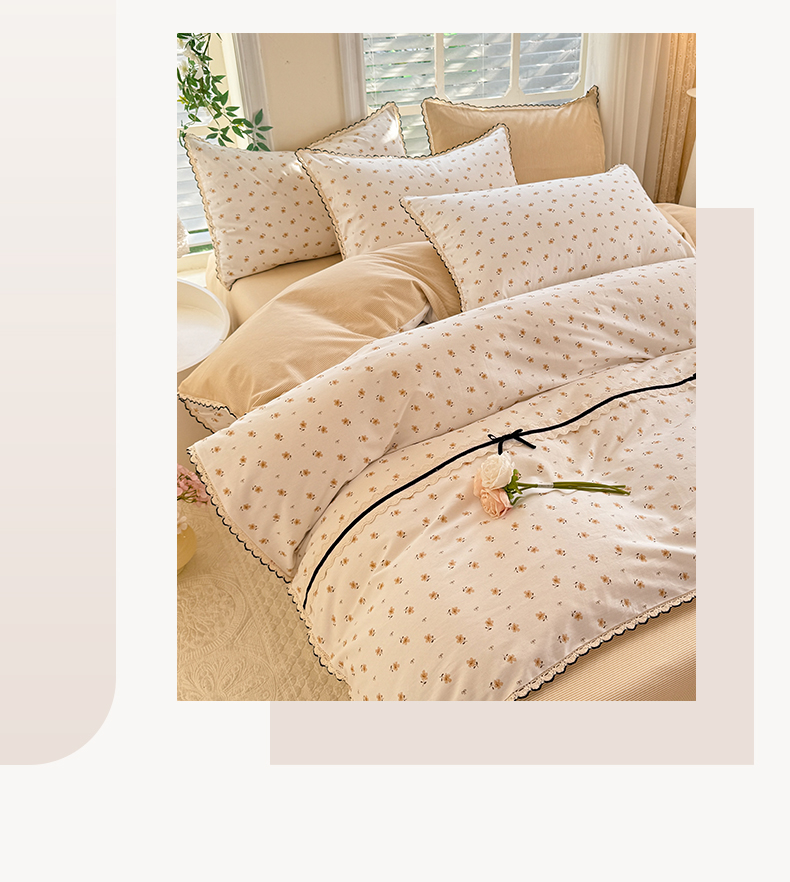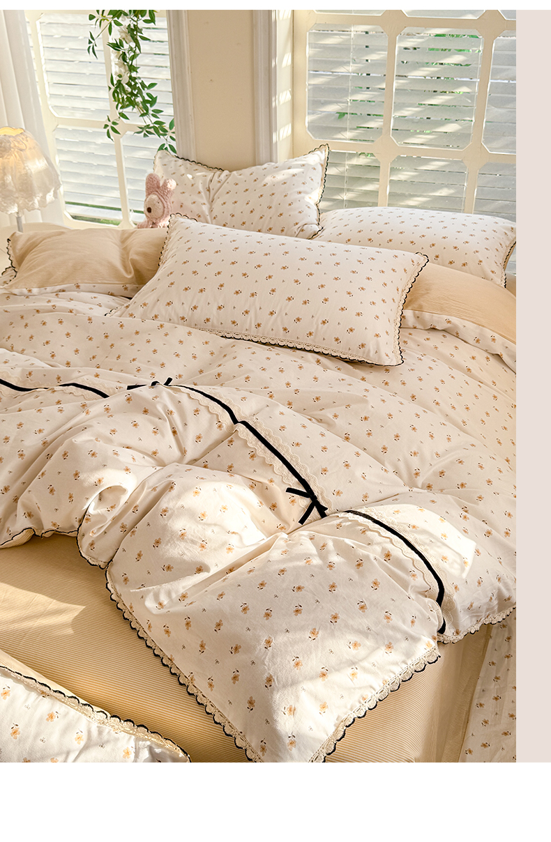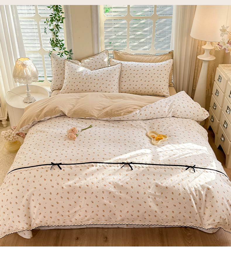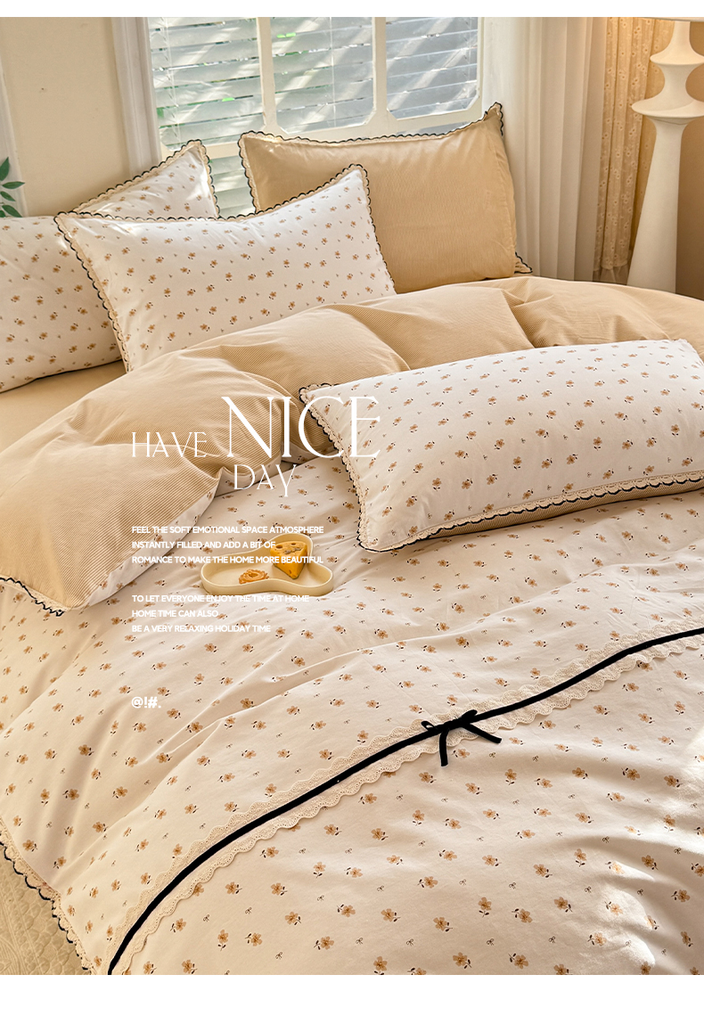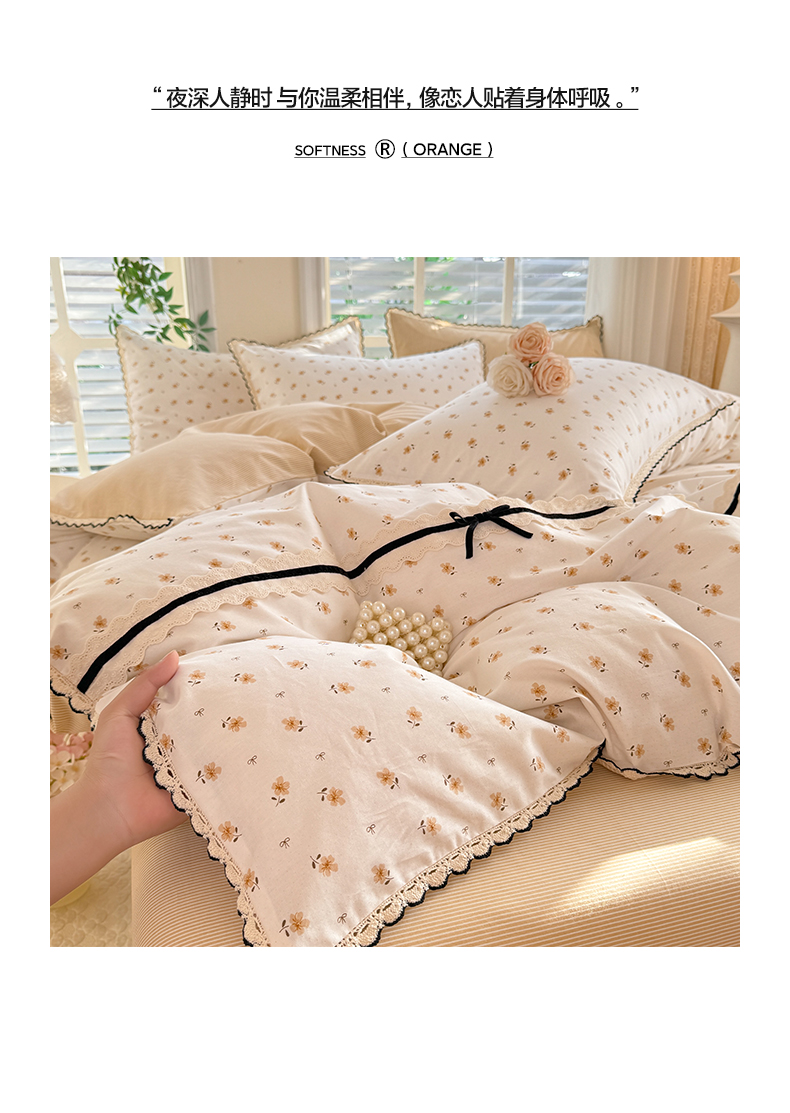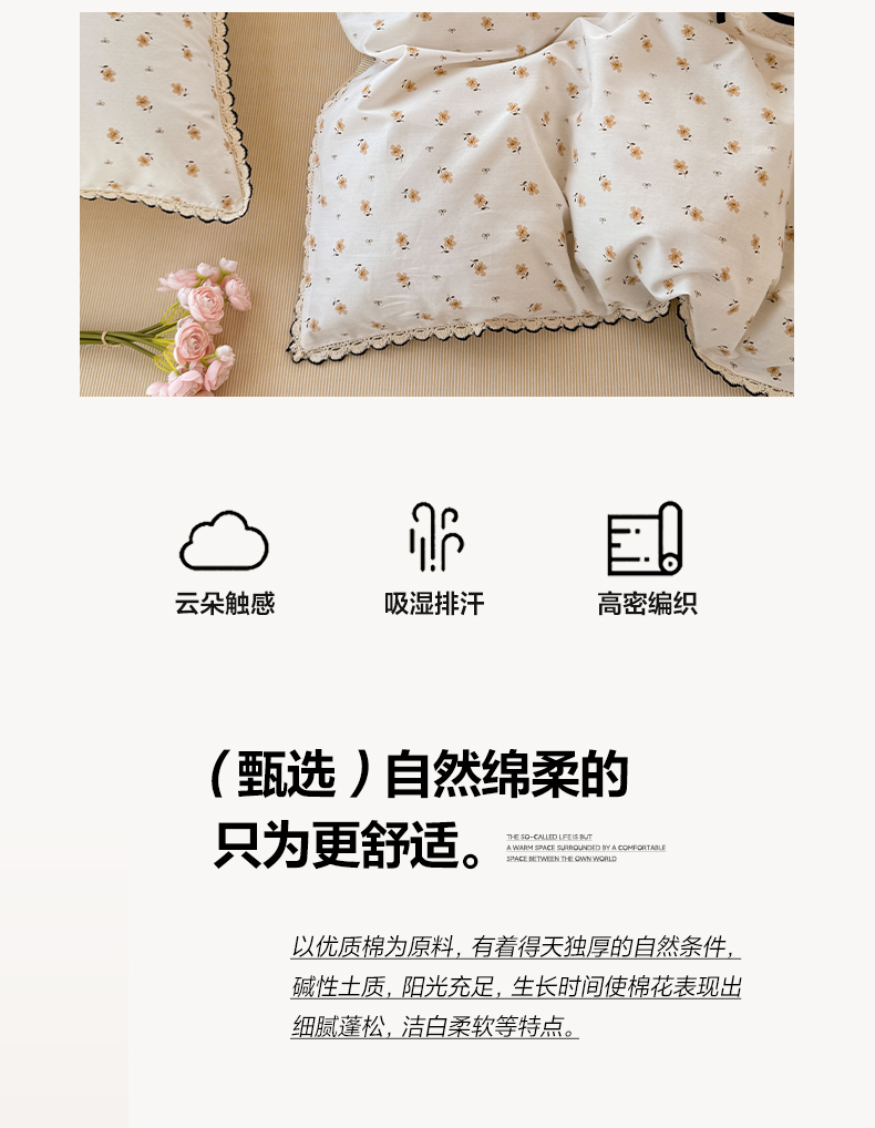 商品名称:艾唯希2025新款全棉小香风工艺四件套纯棉小花边碎花被套韩式公主风 雅蔓花语