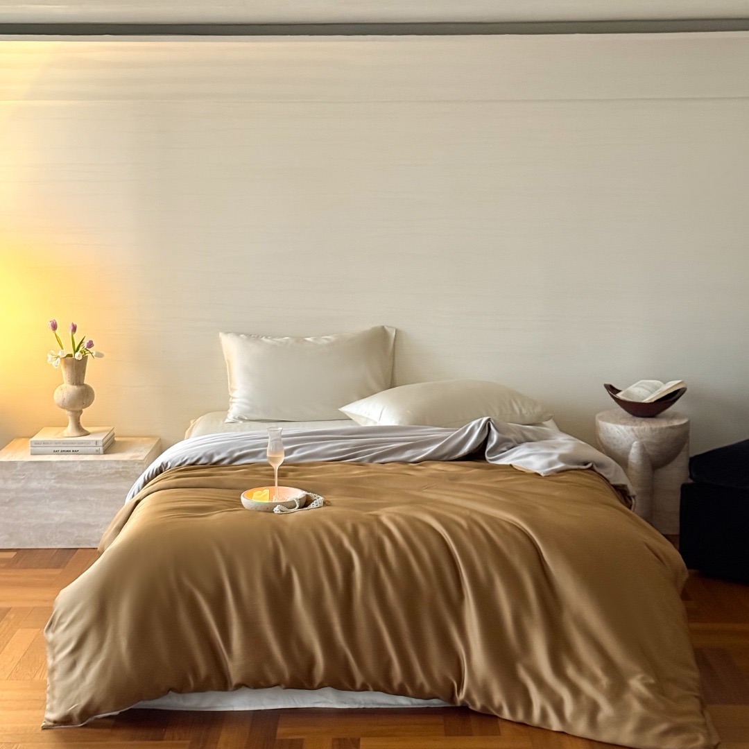 禾时 2025新款纯色双拼兰精天丝单品系列-单被套 被套单件 云纱灰