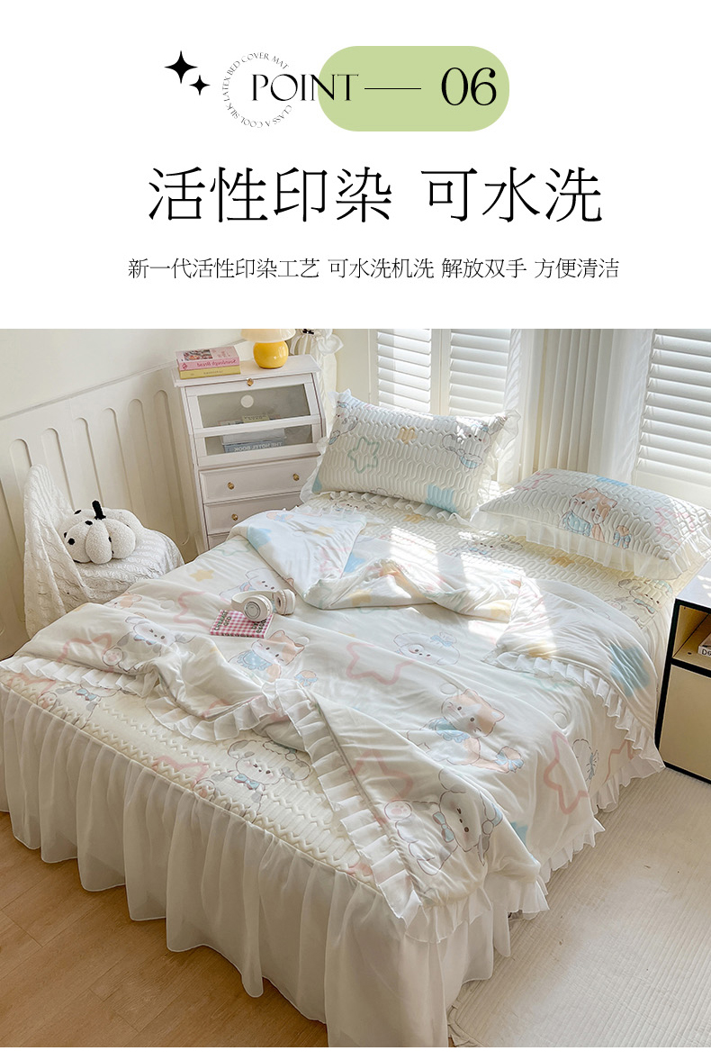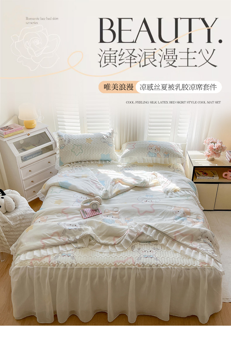 • 91家纺网 家纺一手货源 找家纺 慕澄2025新款小版印花床裙款乳胶凉席凉感丝夏被四件套 夏日幸福