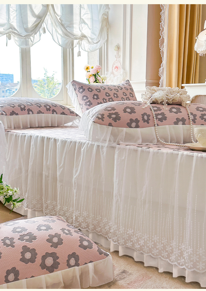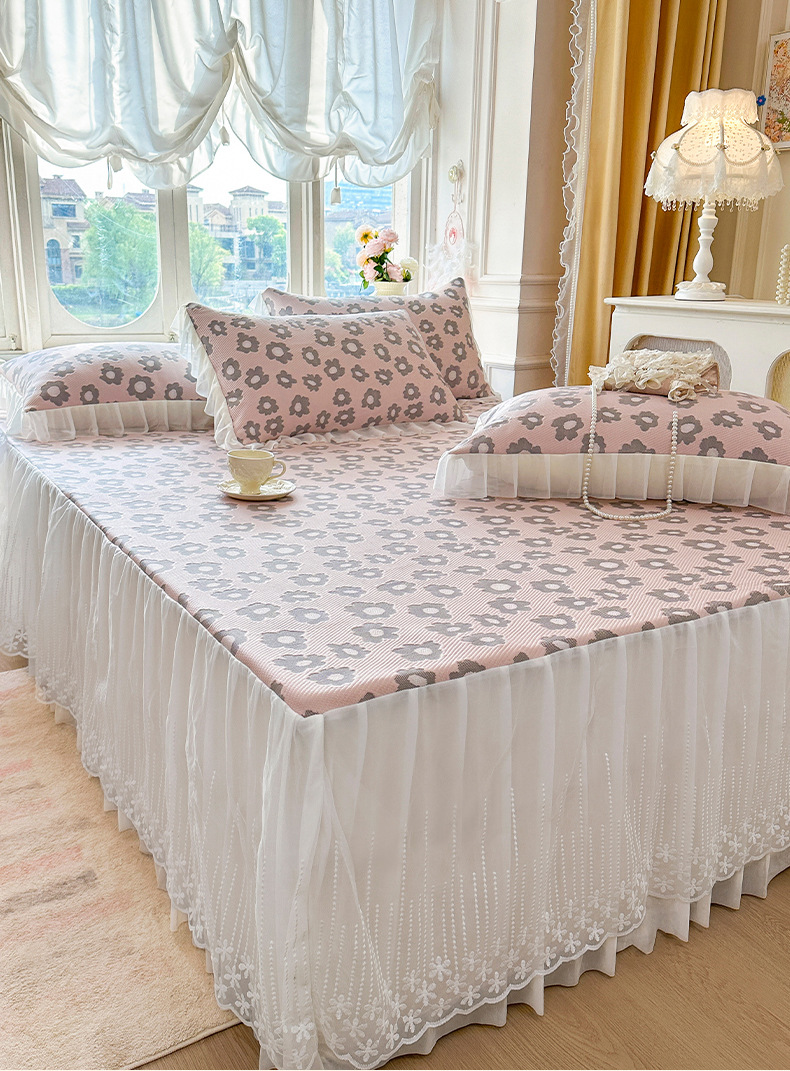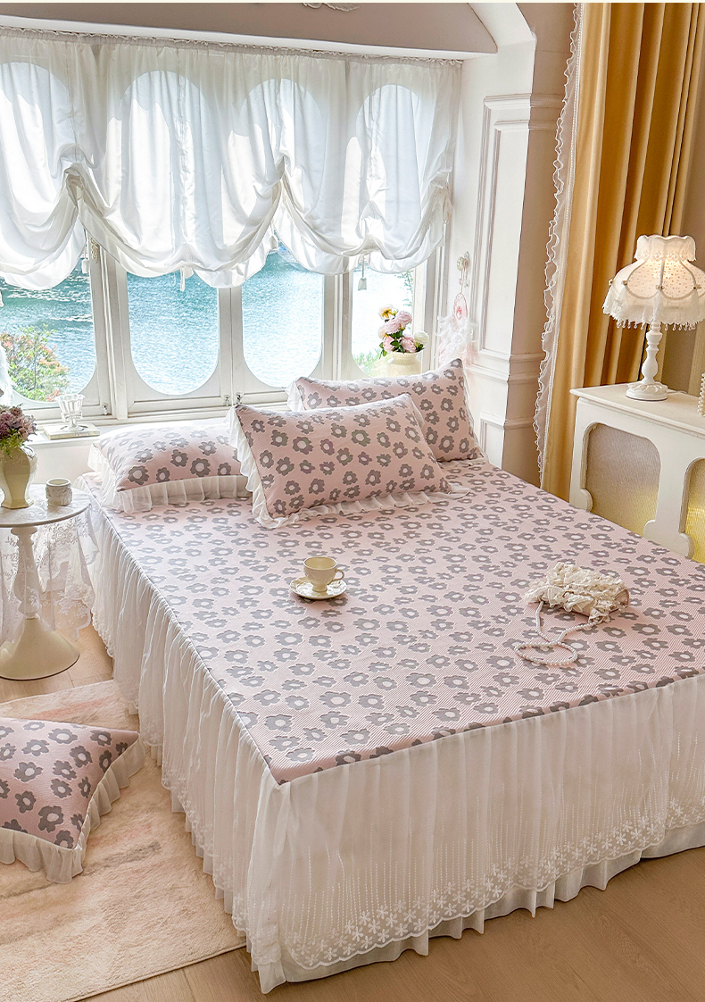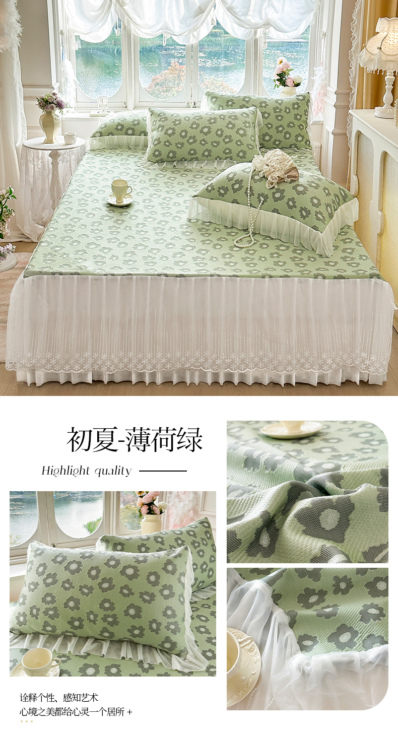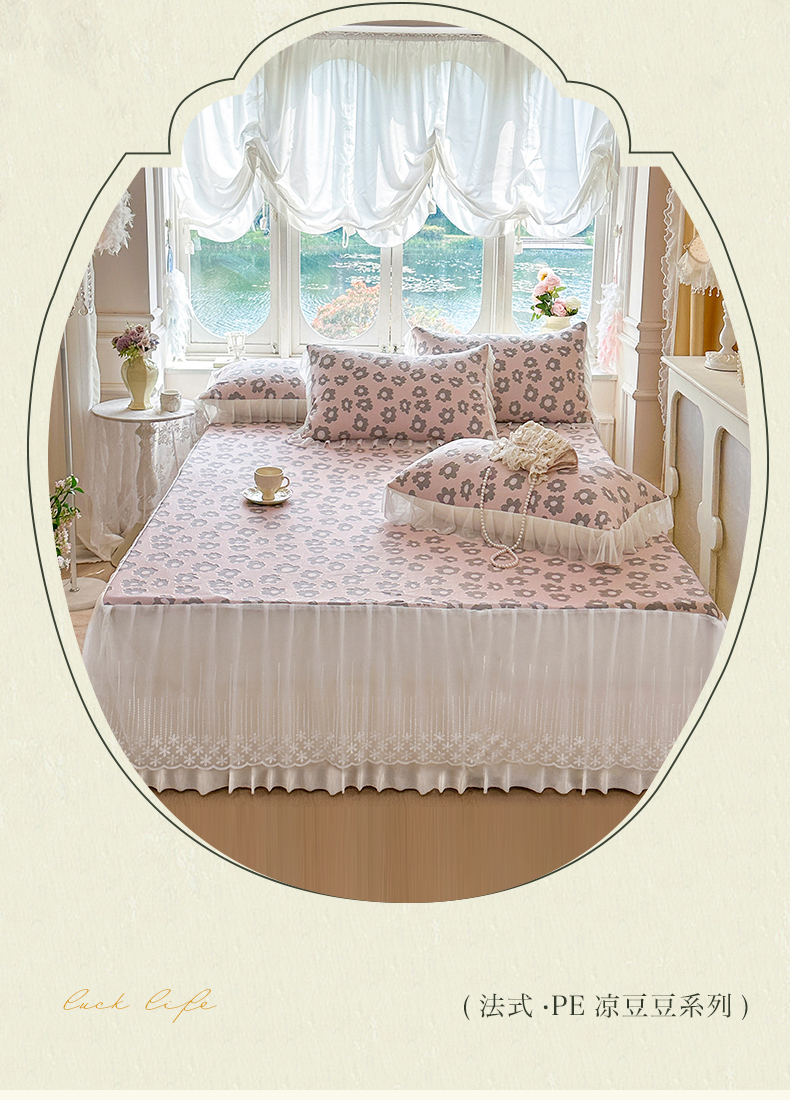 (总)芷卧 2025新款凉豆豆PE凉感刺绣双层花边床裙款冰豆豆凉席三件套(提供买家秀),初夏-蔷薇粉,初夏-鸢尾蓝,初夏-薄荷绿,初夏-暮色灰