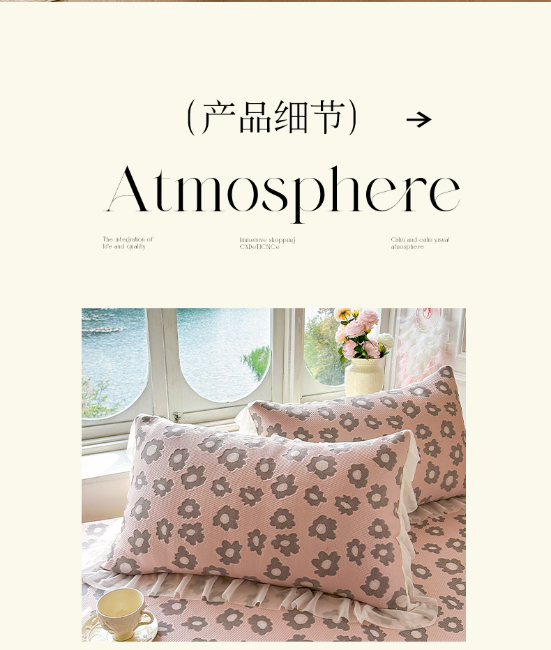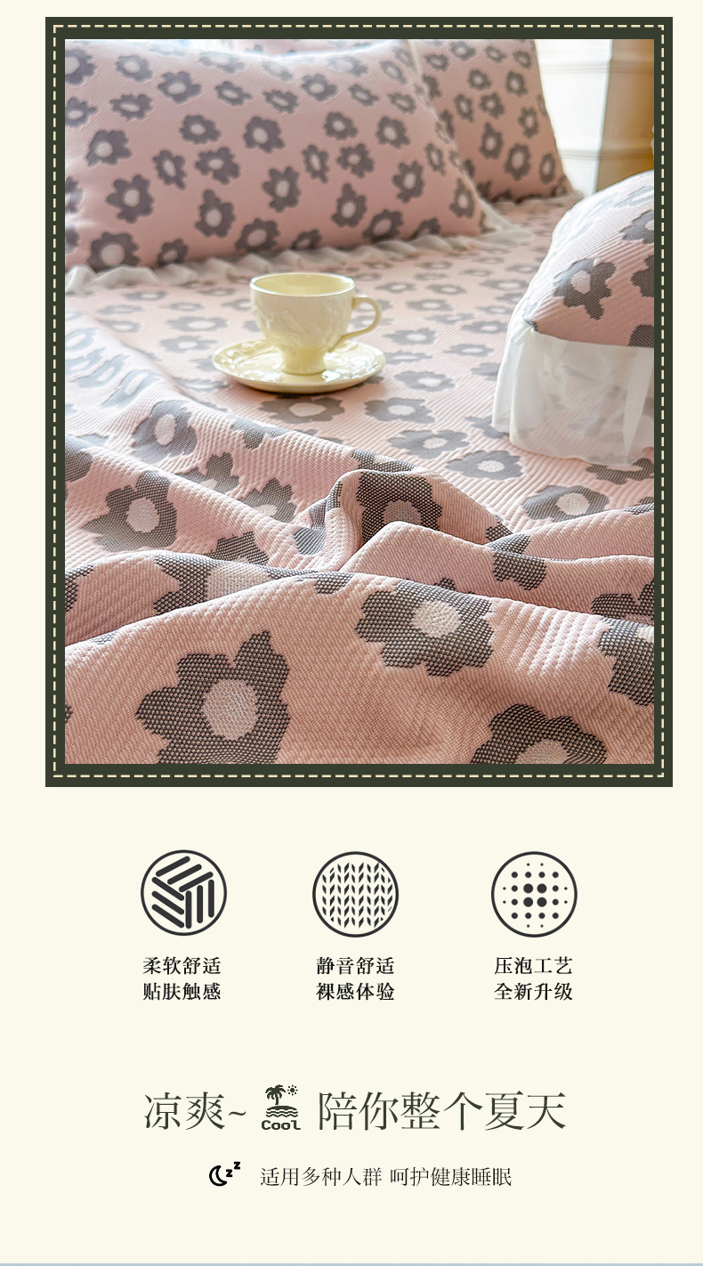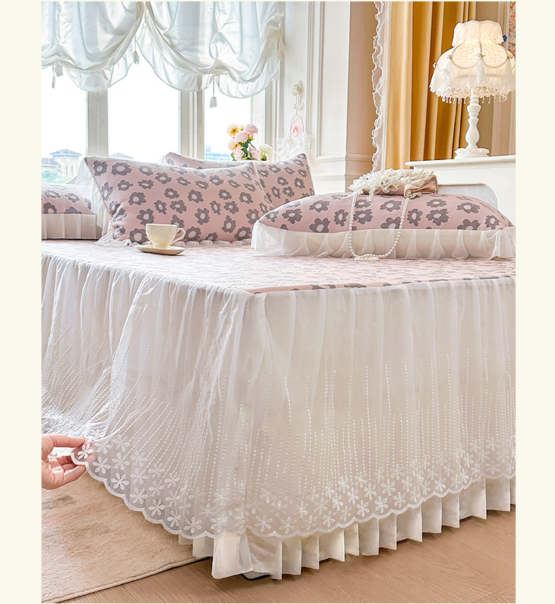 商品名称:芷卧 2025新款凉豆豆PE凉感刺绣双层花边床裙款冰豆豆凉席三件套(提供买家秀) 初夏-暮色灰