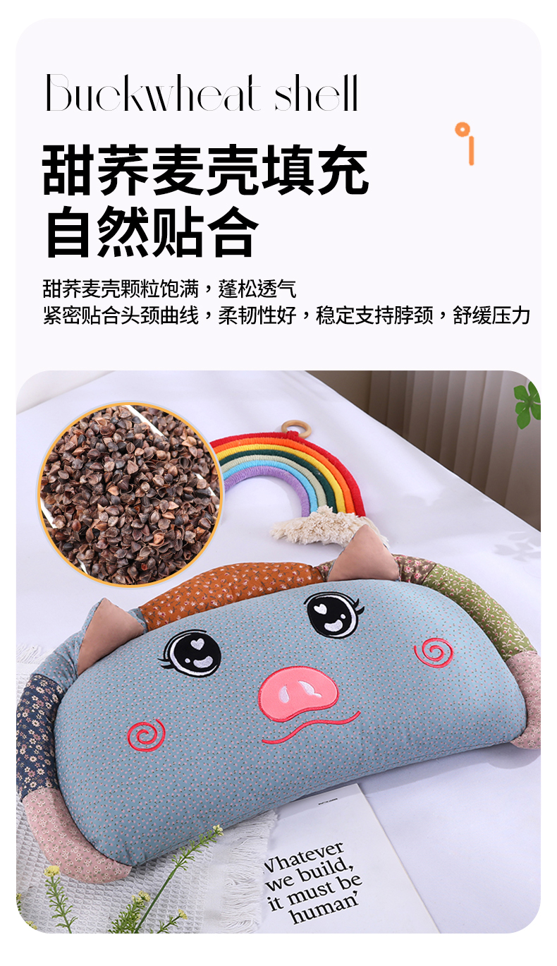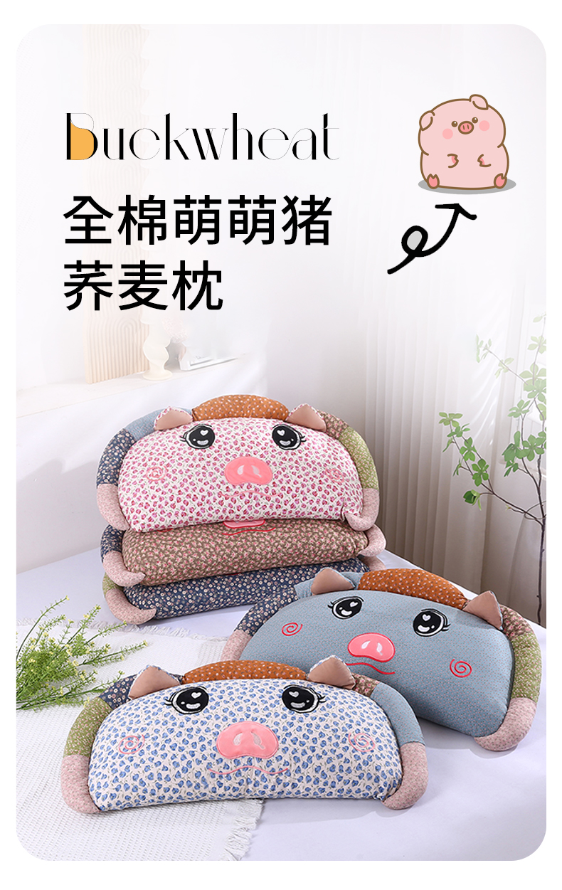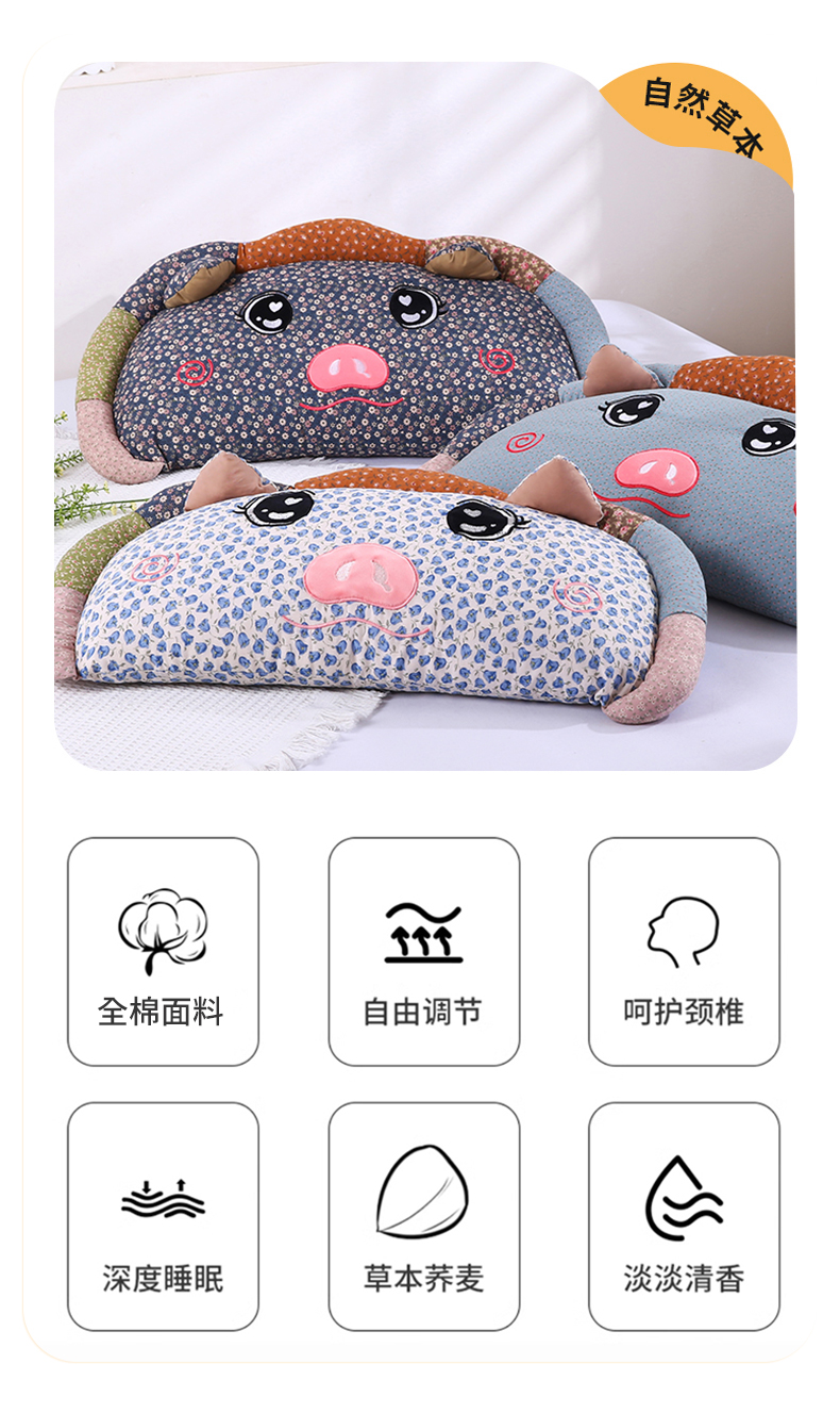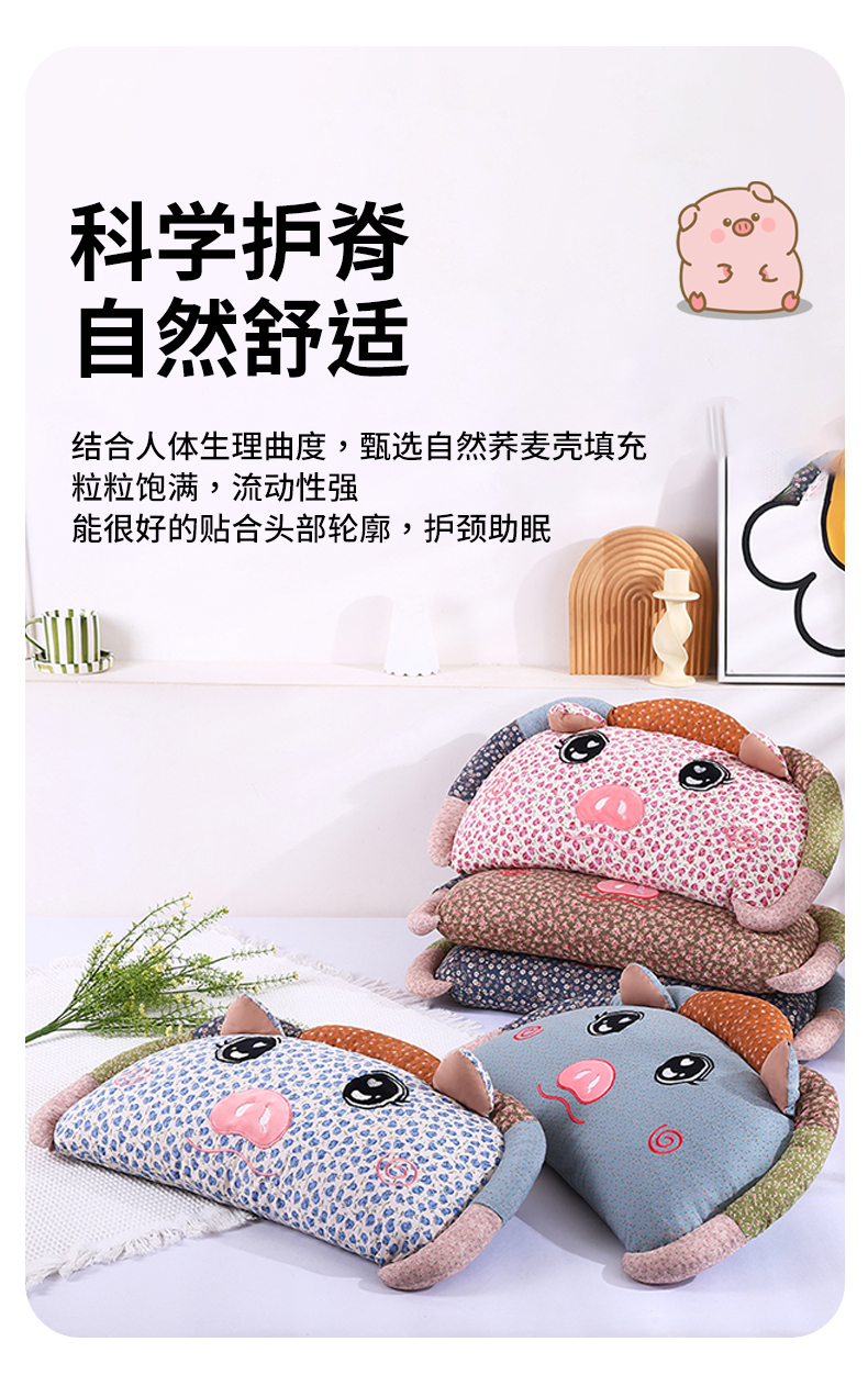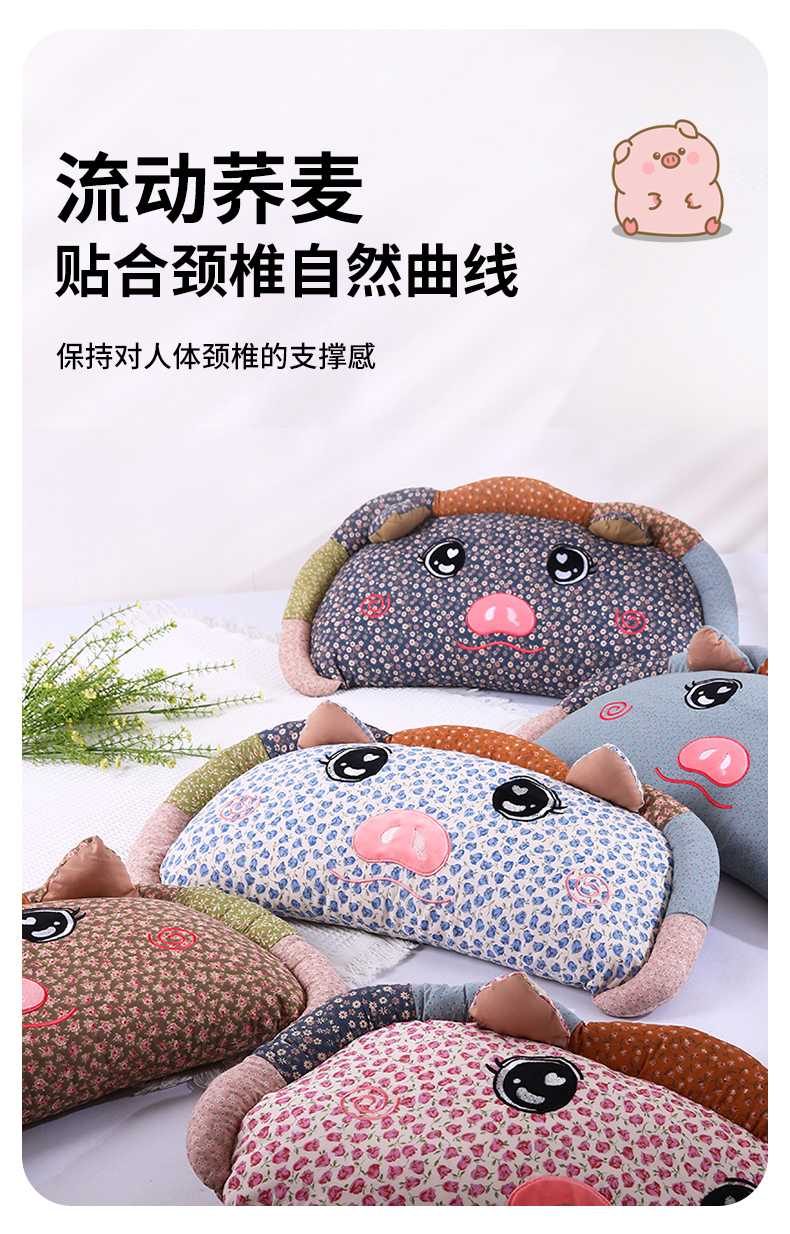 商品名称:(总)蔻眠 2025新款全棉卡通荞麦枕芯儿童学生成人护颈枕萌萌猪