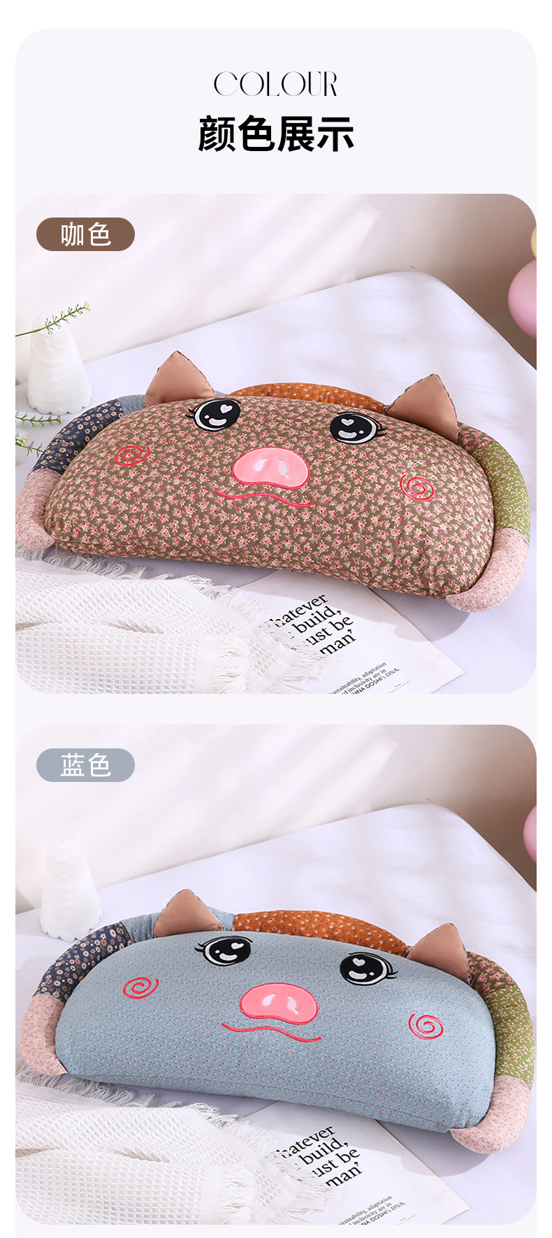(总)蔻眠 2024新款毛毛虫全棉卡通儿童荞麦枕头成人枕芯,粉色+天蓝30x60cm,咖色+深蓝30x60cm,水绿+橘色30x60cm,水绿+浅灰30x60cm,水绿+深绿30x60cm