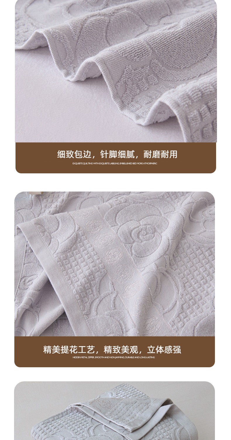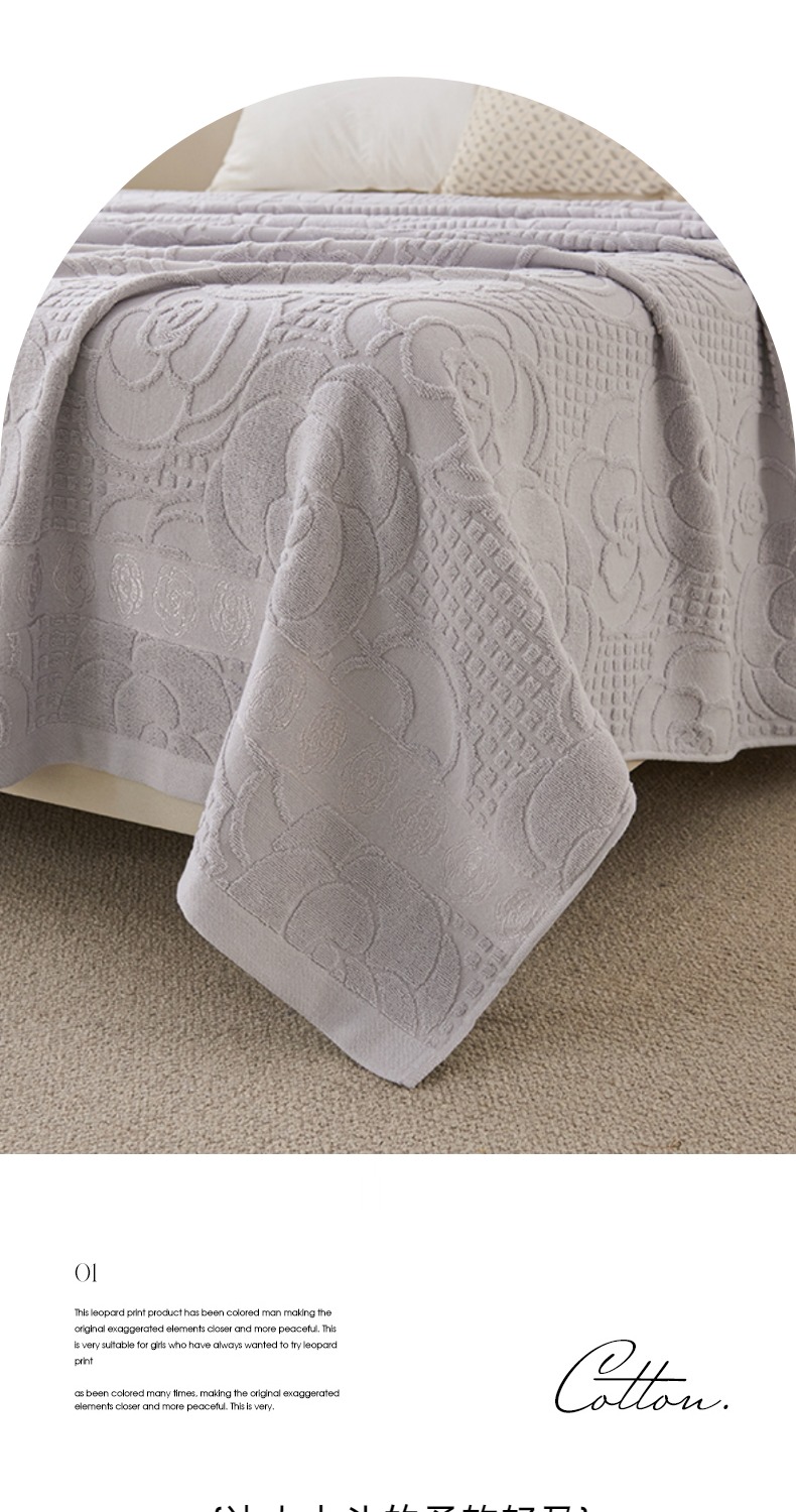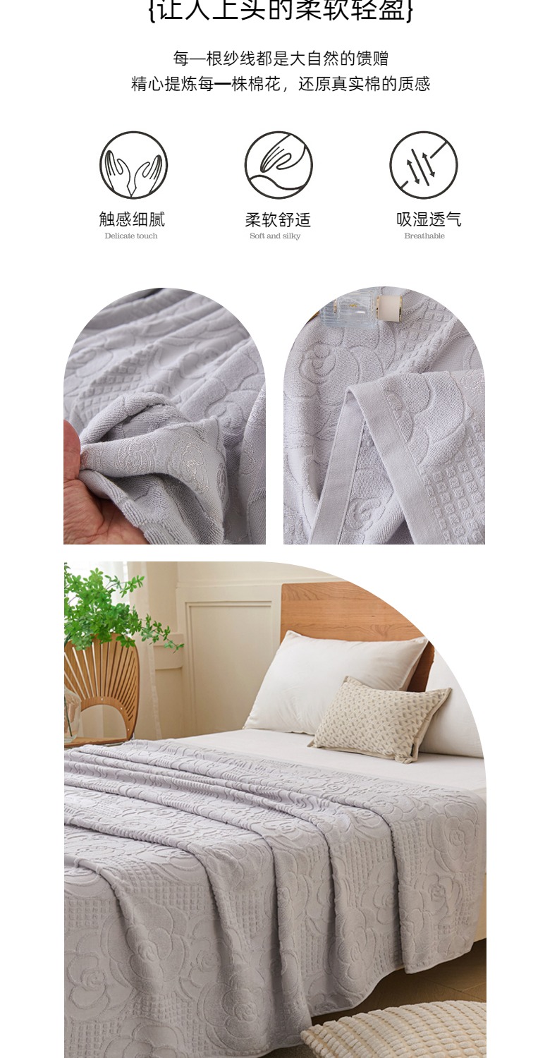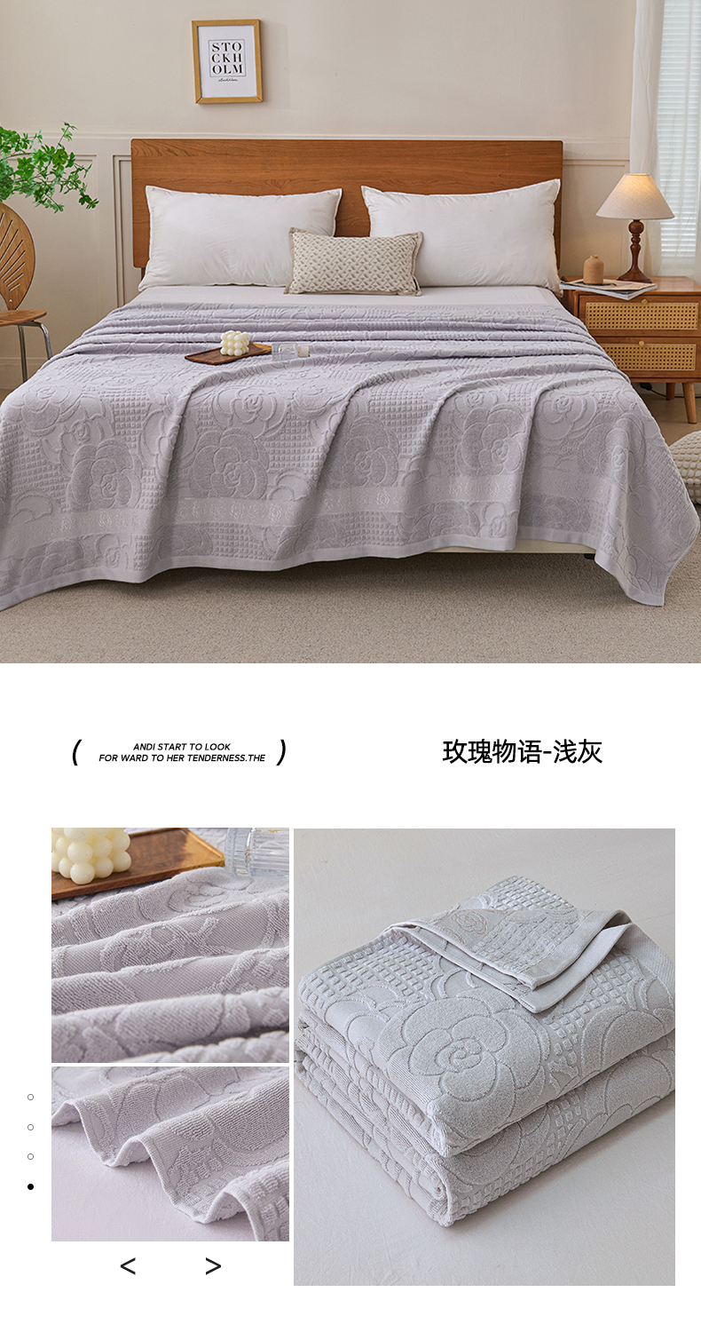 商品名称:悦然毛巾被 2025新款经典纯棉毛巾毯 玫瑰物语浅灰