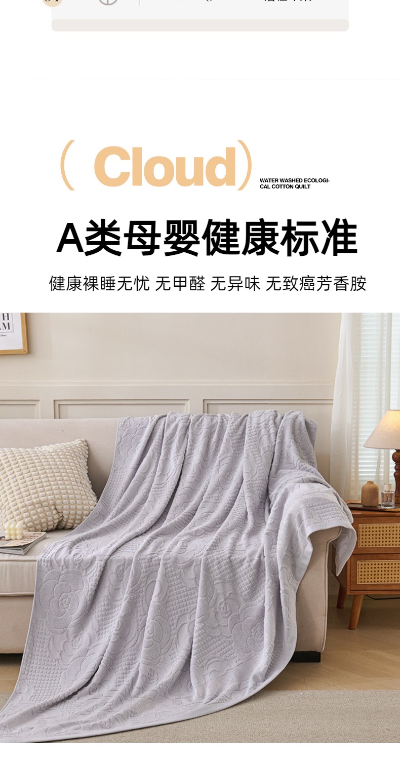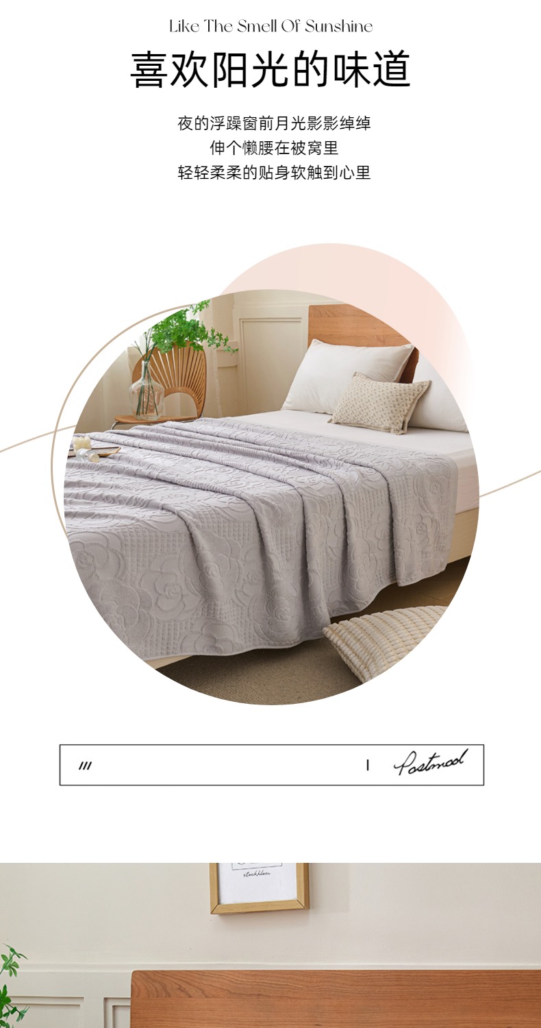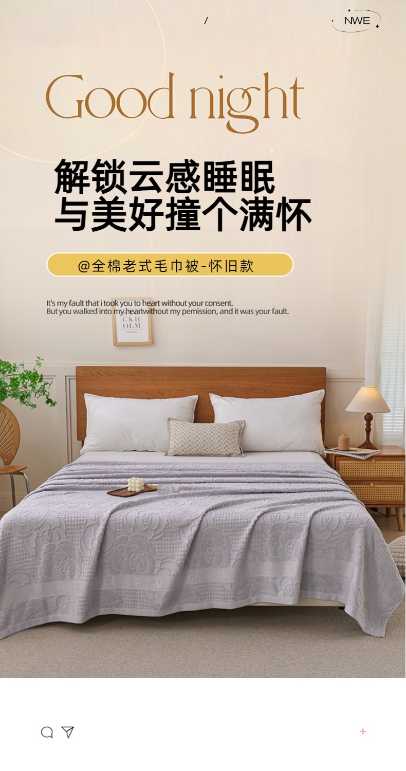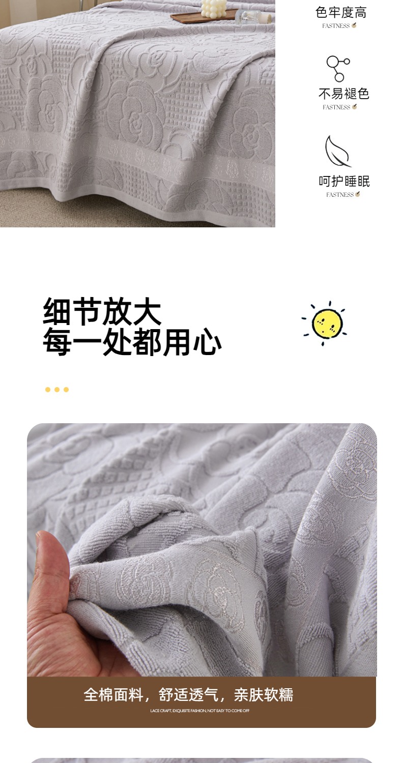 商品名称:悦然毛巾被 2025新款经典纯棉毛巾毯 玫瑰物语浅灰