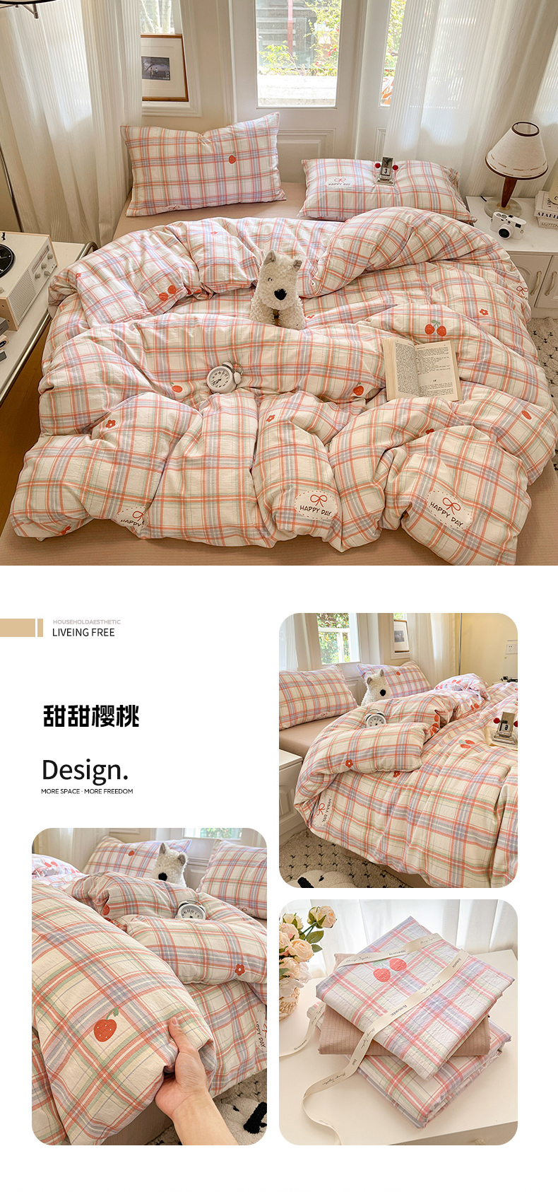 当前位置: 91家纺网 > 商品网购 > 床品套件 > 四件套 > 双层纱四件套 > 海岛哥哥 2025新款高克重木棉提花双层纱四件套-风格一 简絮