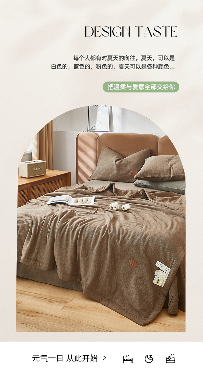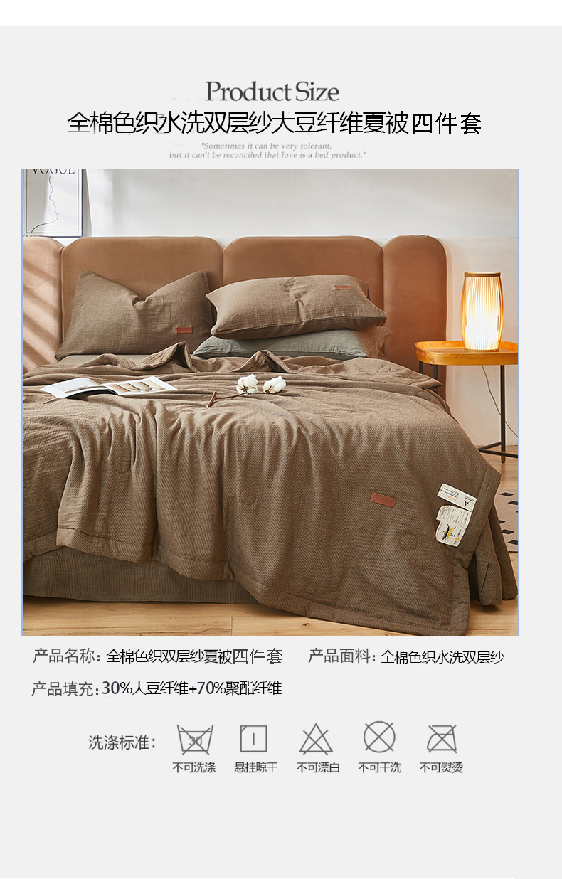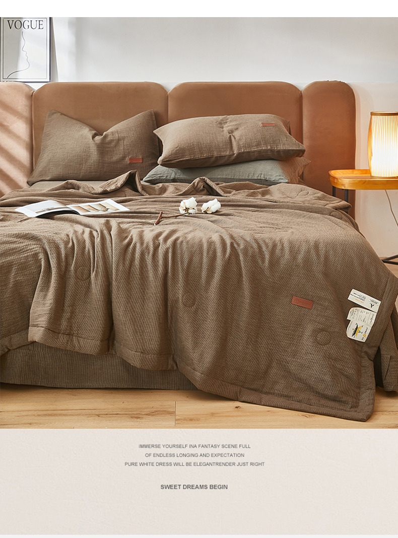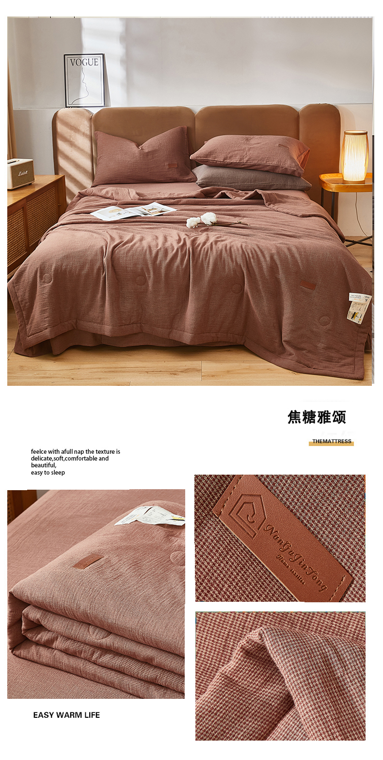商品名称:全美家居 2025新款全棉水洗色织双层纱大豆纤维被夏凉被空调被夏被 棕褐香缇