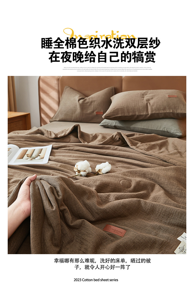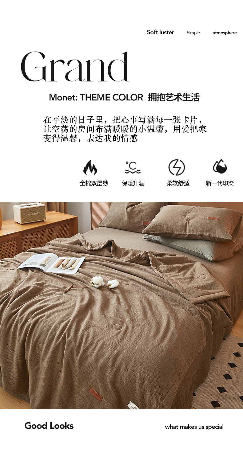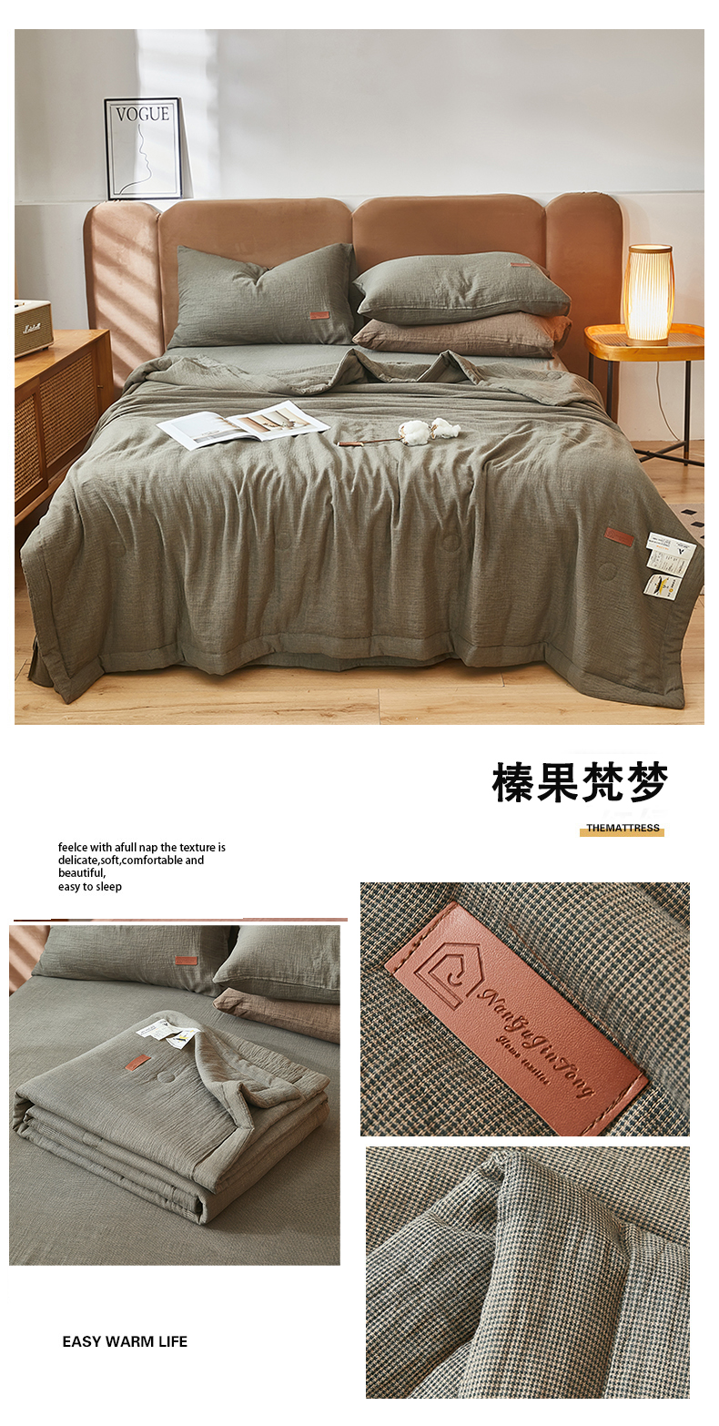 商品名称:全美家居 2025新款全棉水洗色织双层纱大豆纤维被夏凉被空调被夏被 棕褐香缇