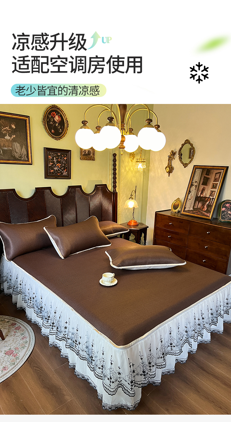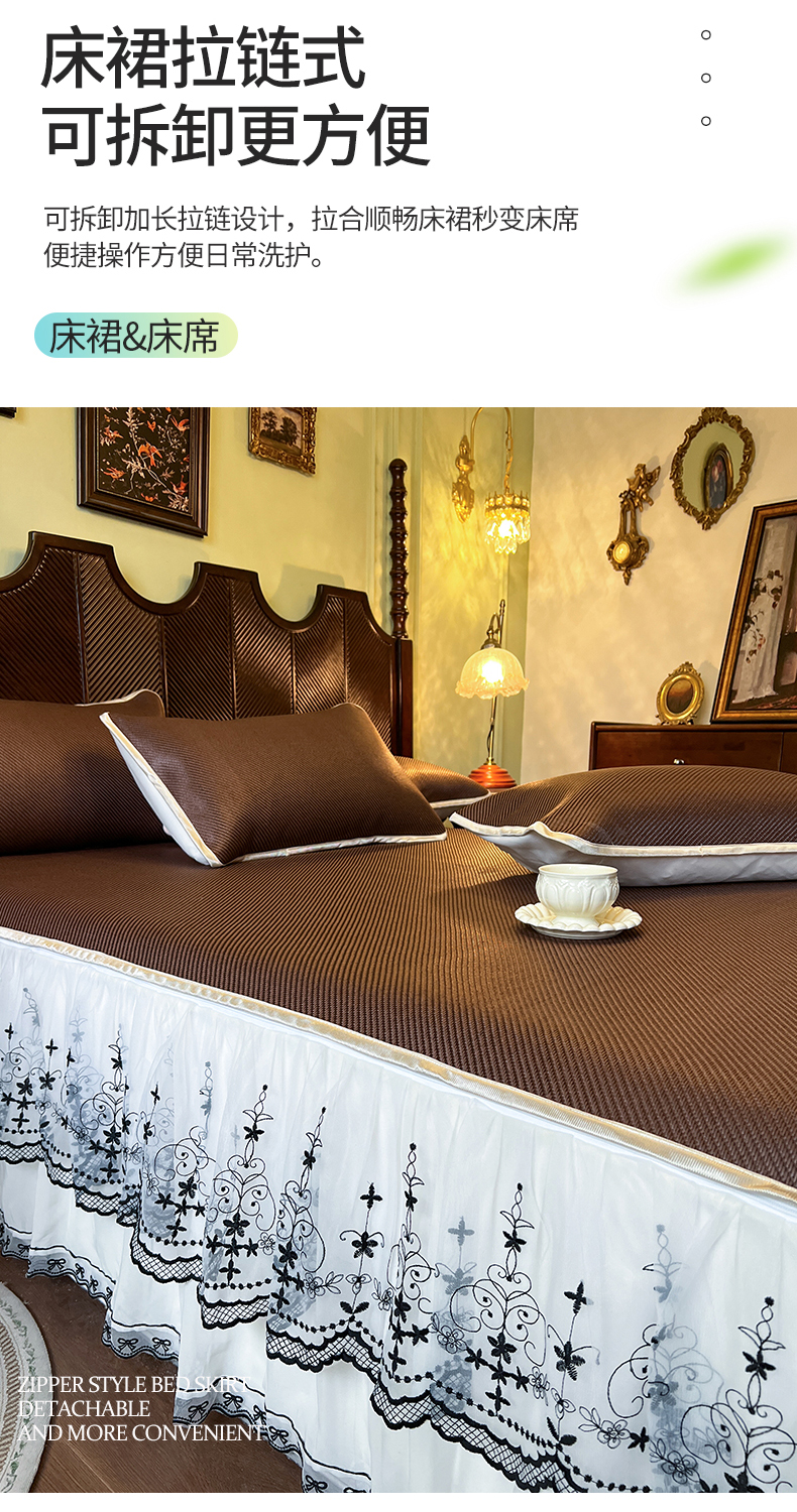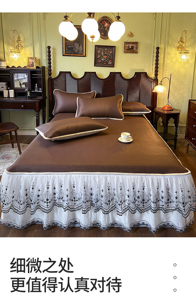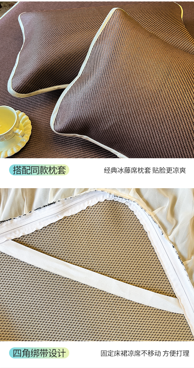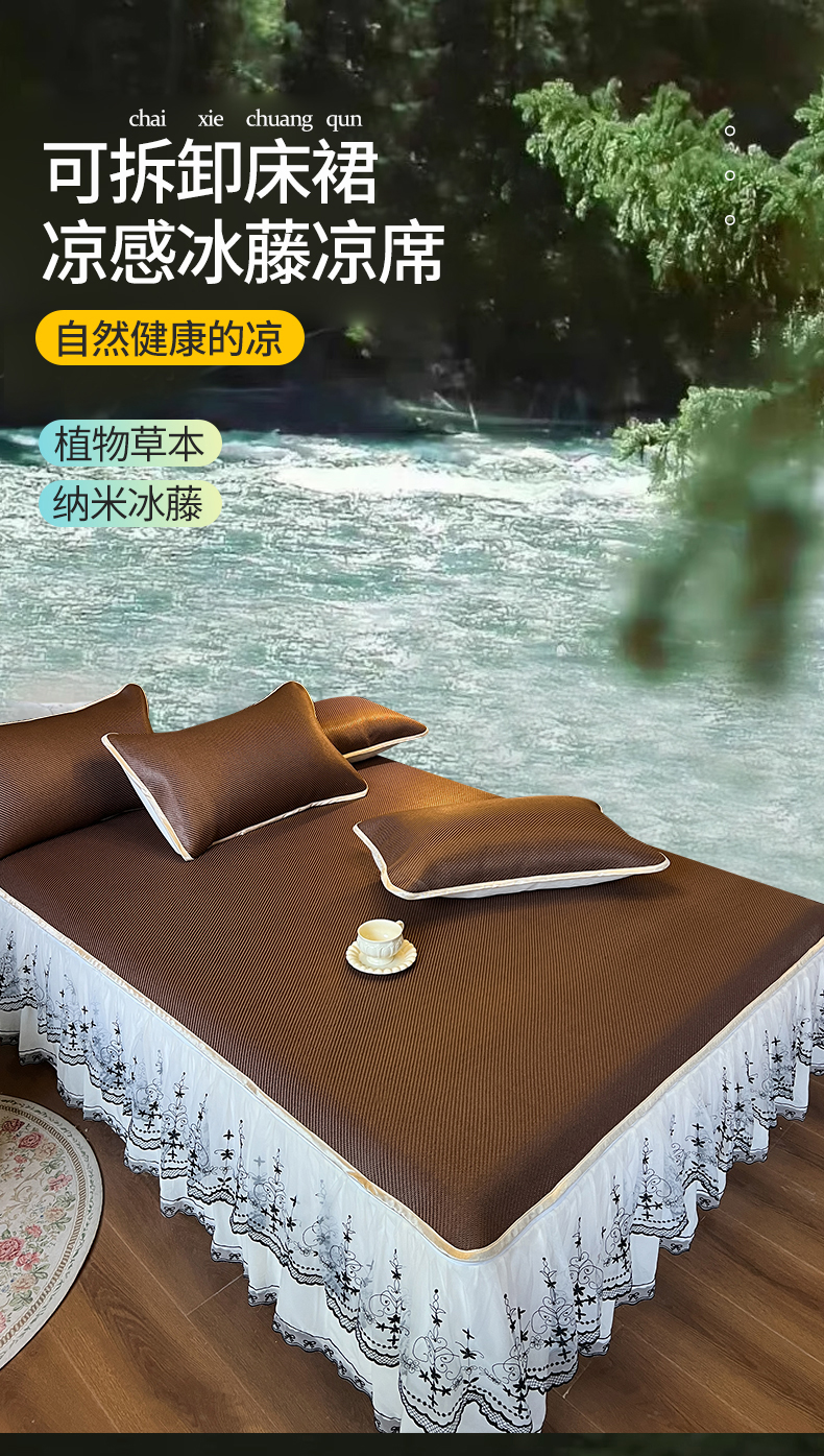 商品名称:网红馆(ck家纺) 2025新款可脱卸床裙款冰藤席-盛夏繁星 深咖