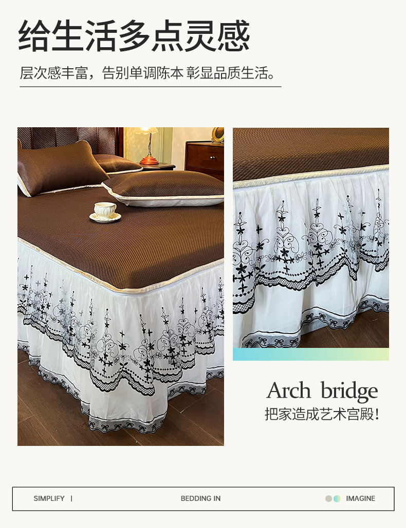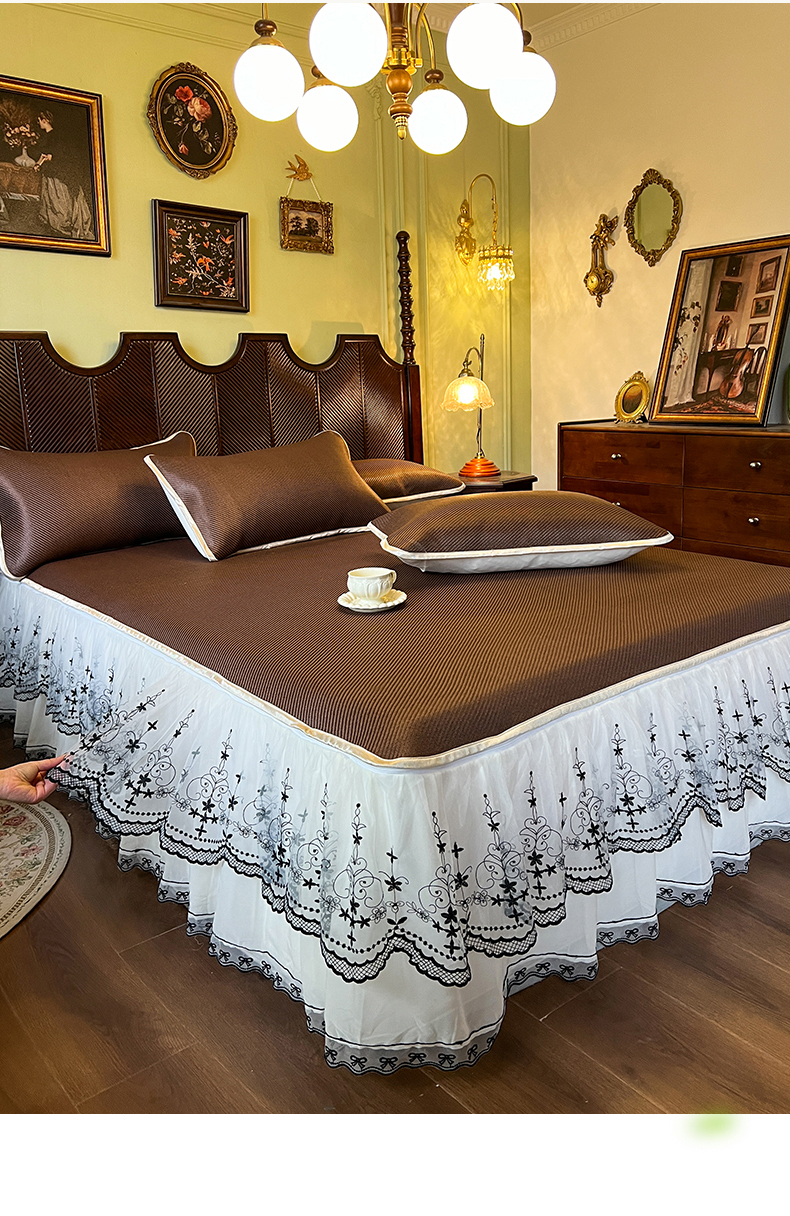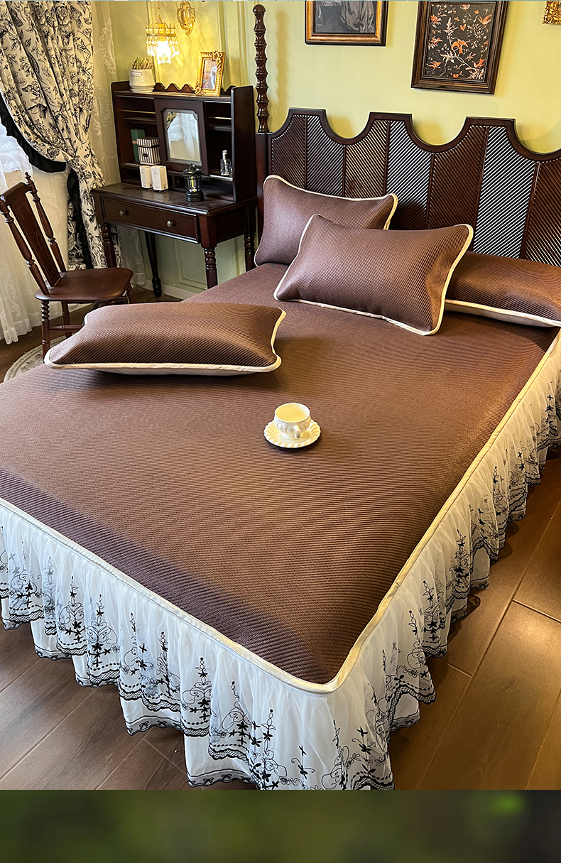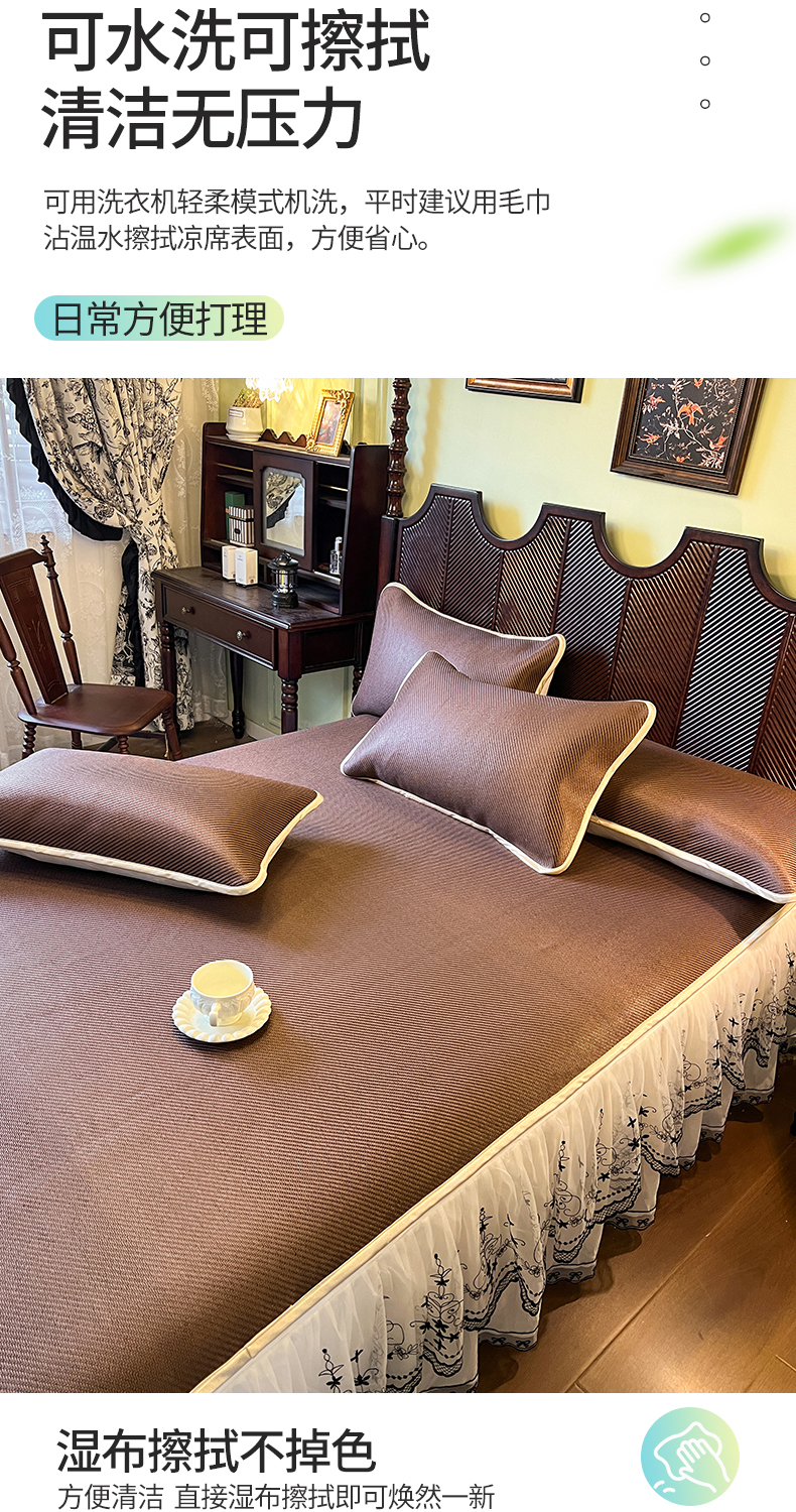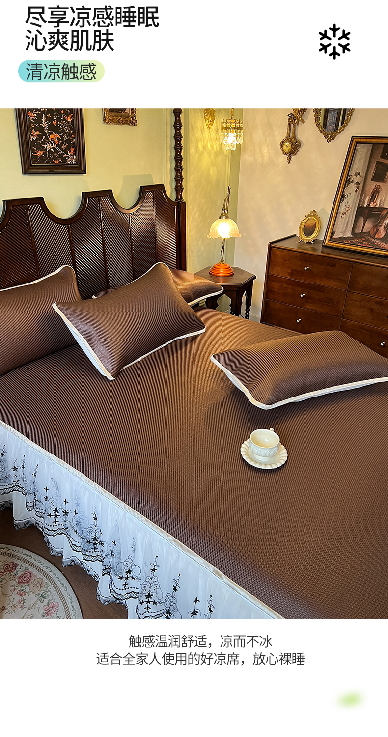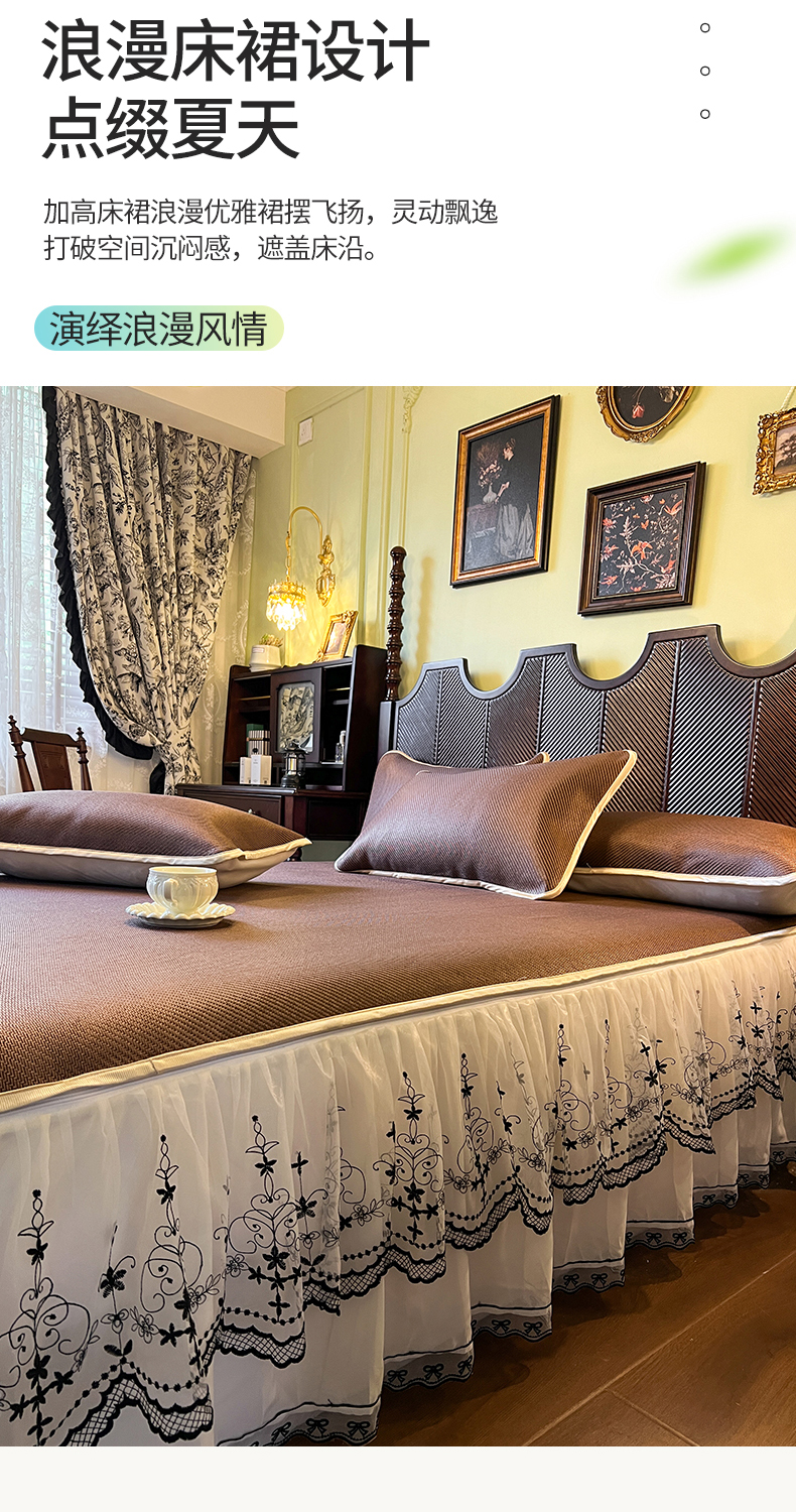 商品名称:网红馆(ck家纺) 2025新款可脱卸床裙款冰藤席-盛夏繁星 深咖