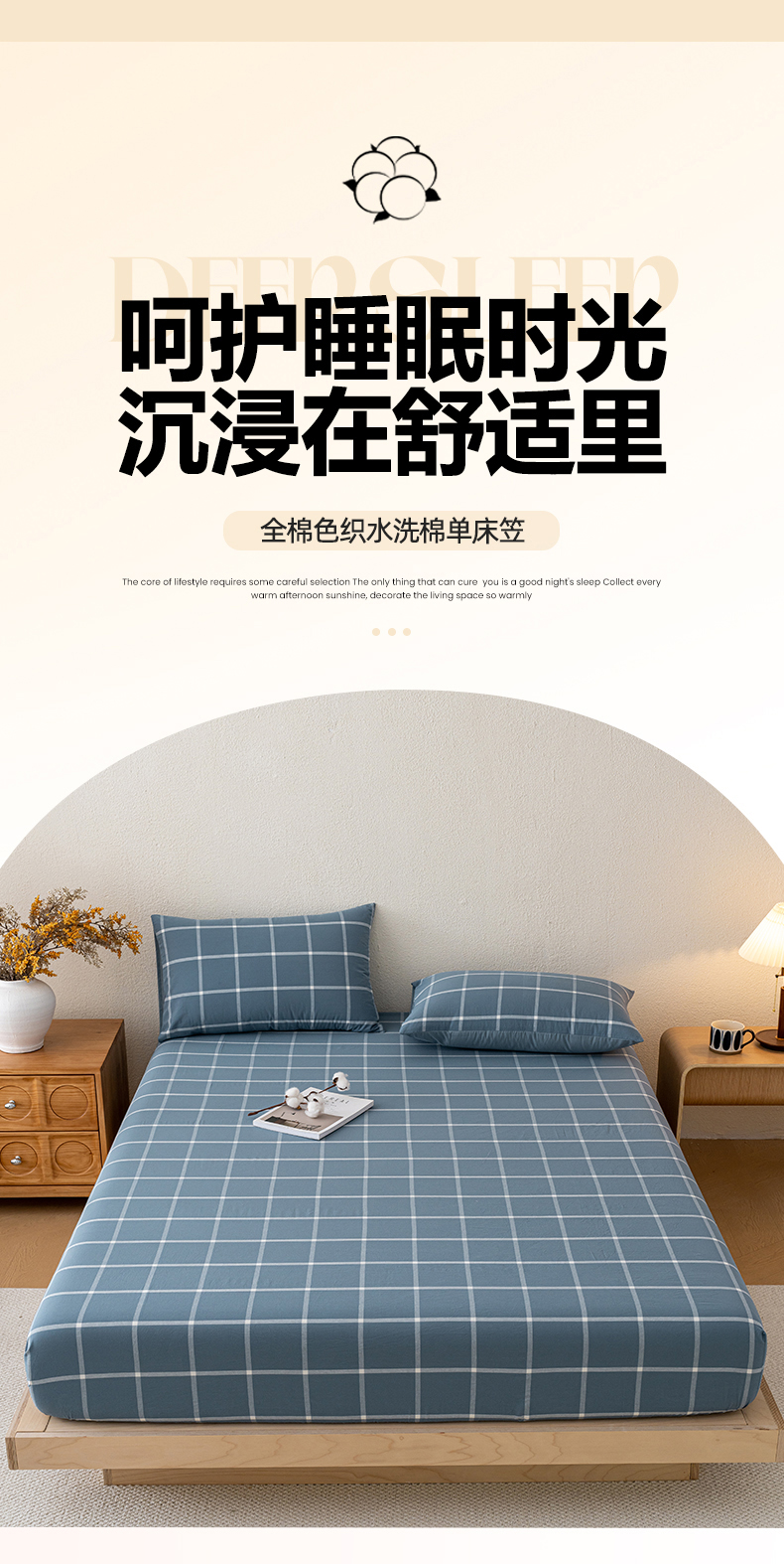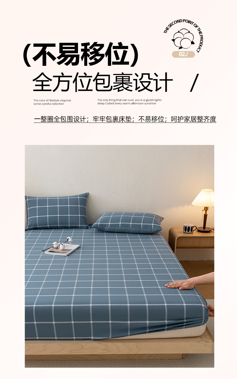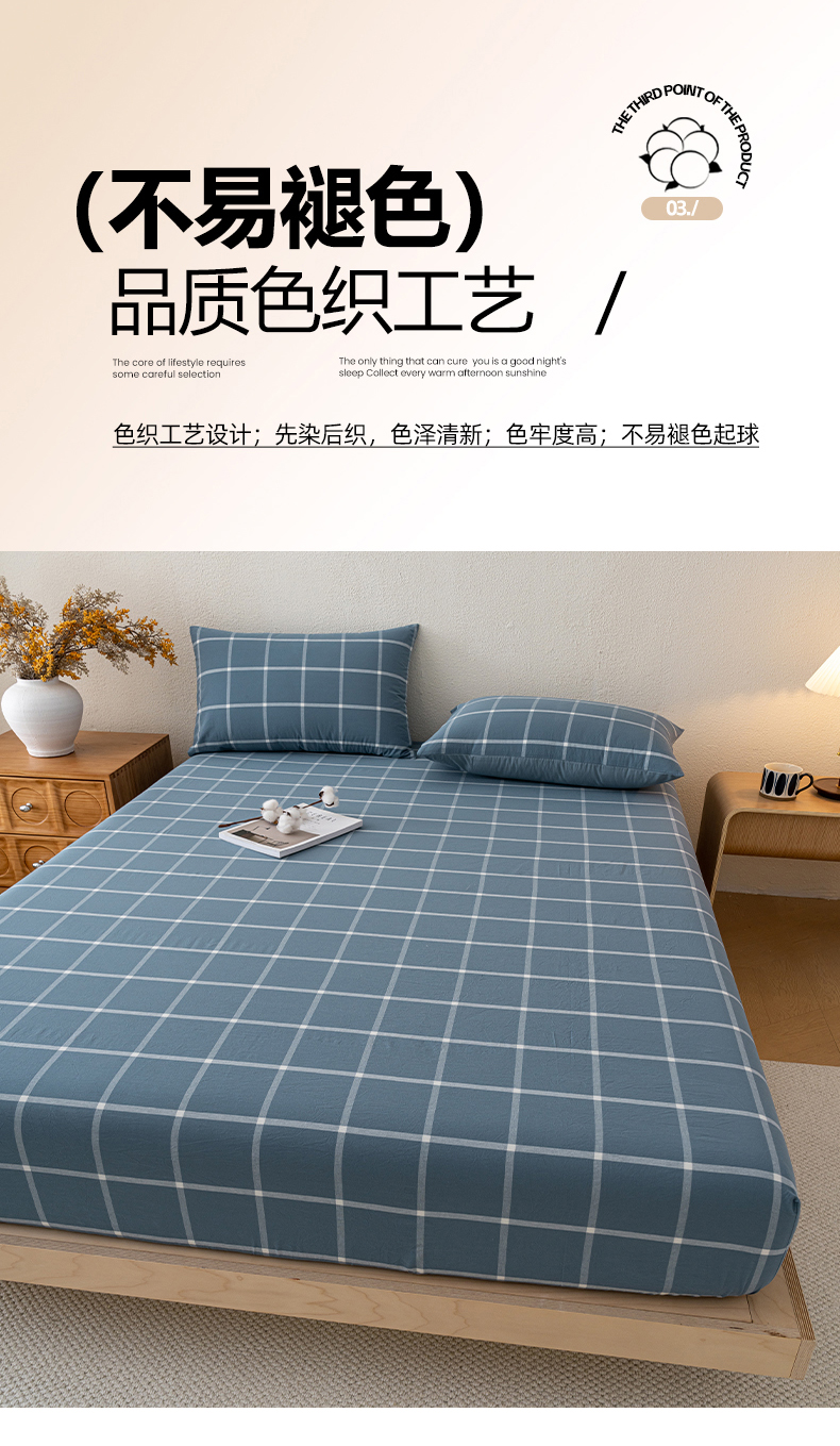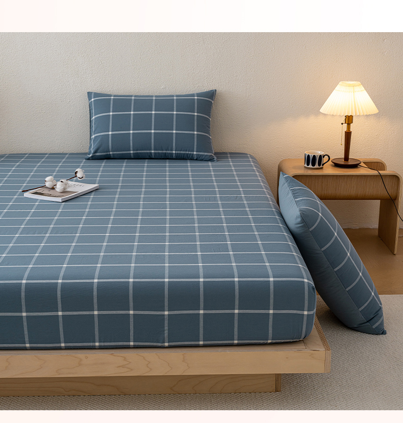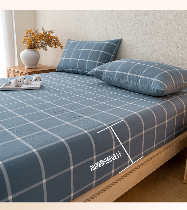 吉象家纺 2025新款全棉色织水洗棉床笠三件套 大蓝格