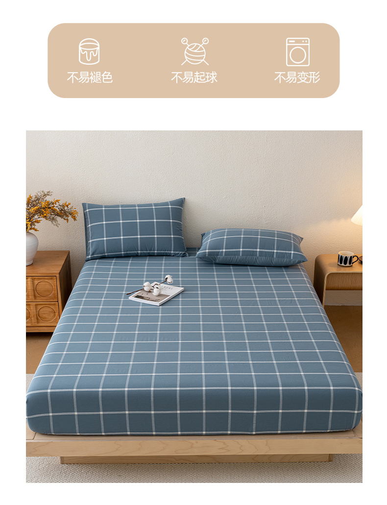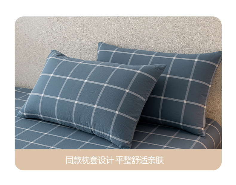 商品名称:吉象家纺 2025新款全棉色织水洗棉床笠三件套 大蓝格