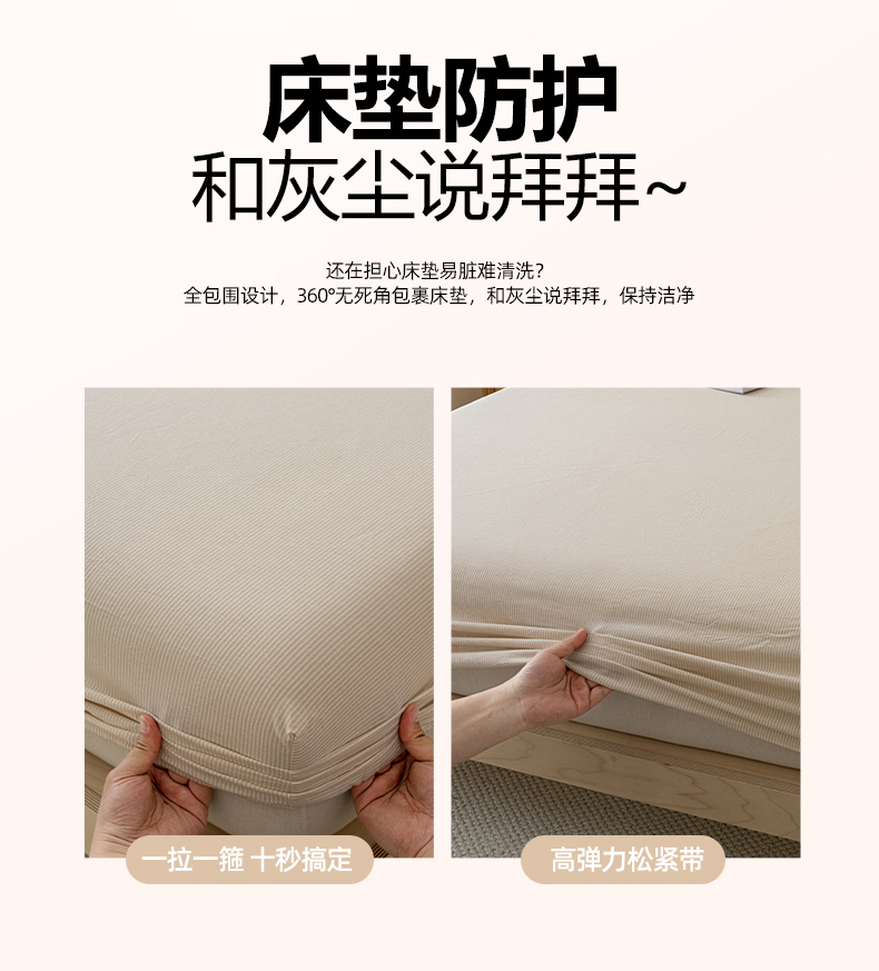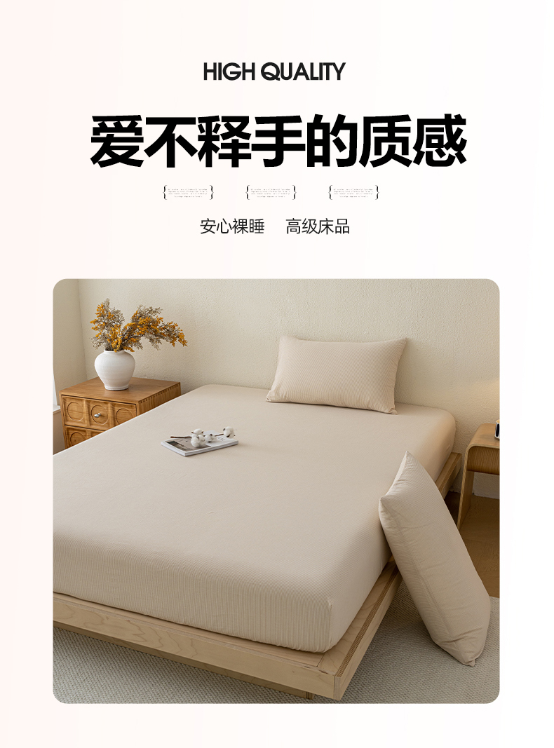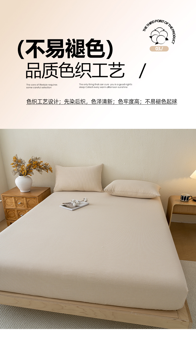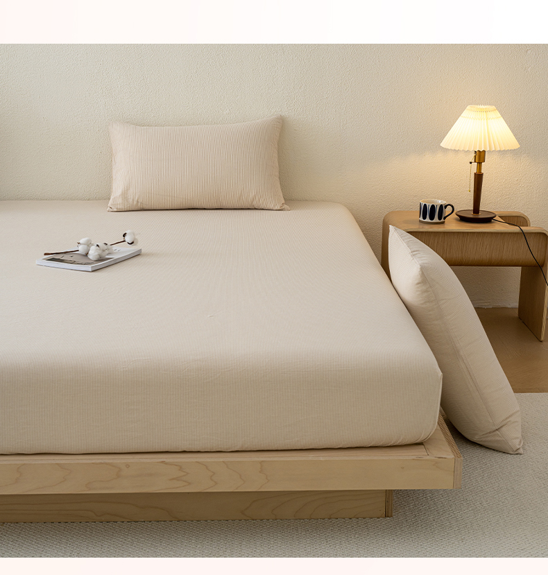 吉象家纺 2025新款全棉色织水洗棉床笠三件套 秘境咖条