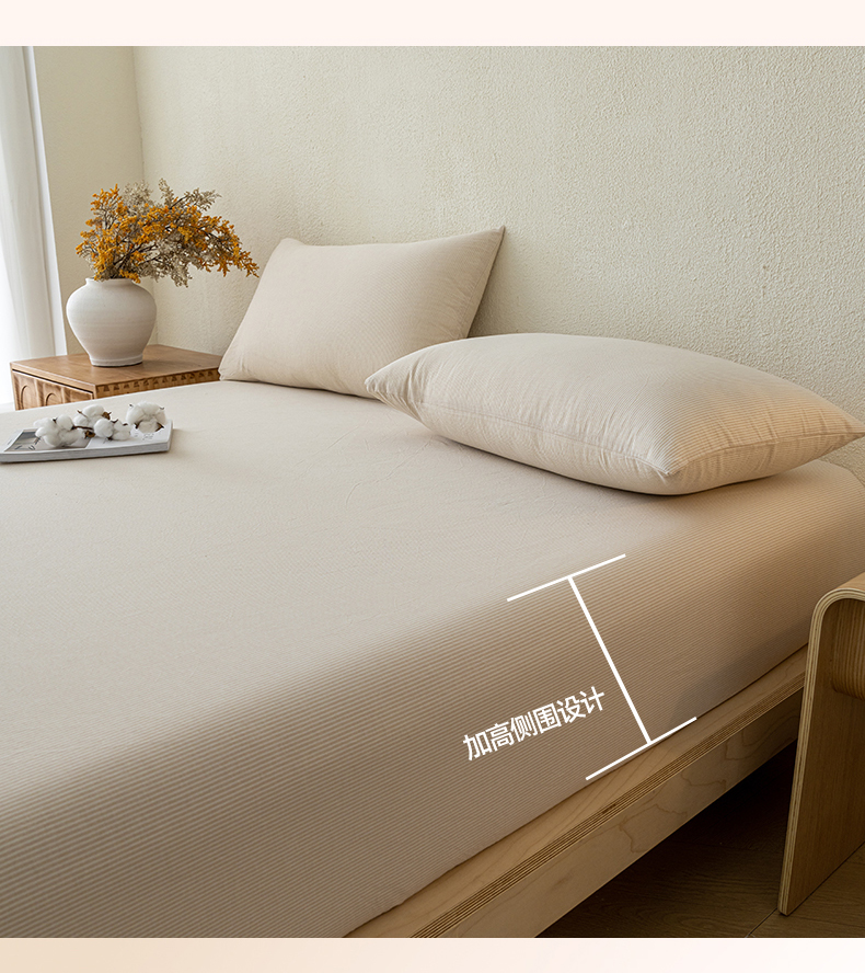 商品名称:吉象家纺 2025新款全棉色织水洗棉床笠三件套 秘境咖条