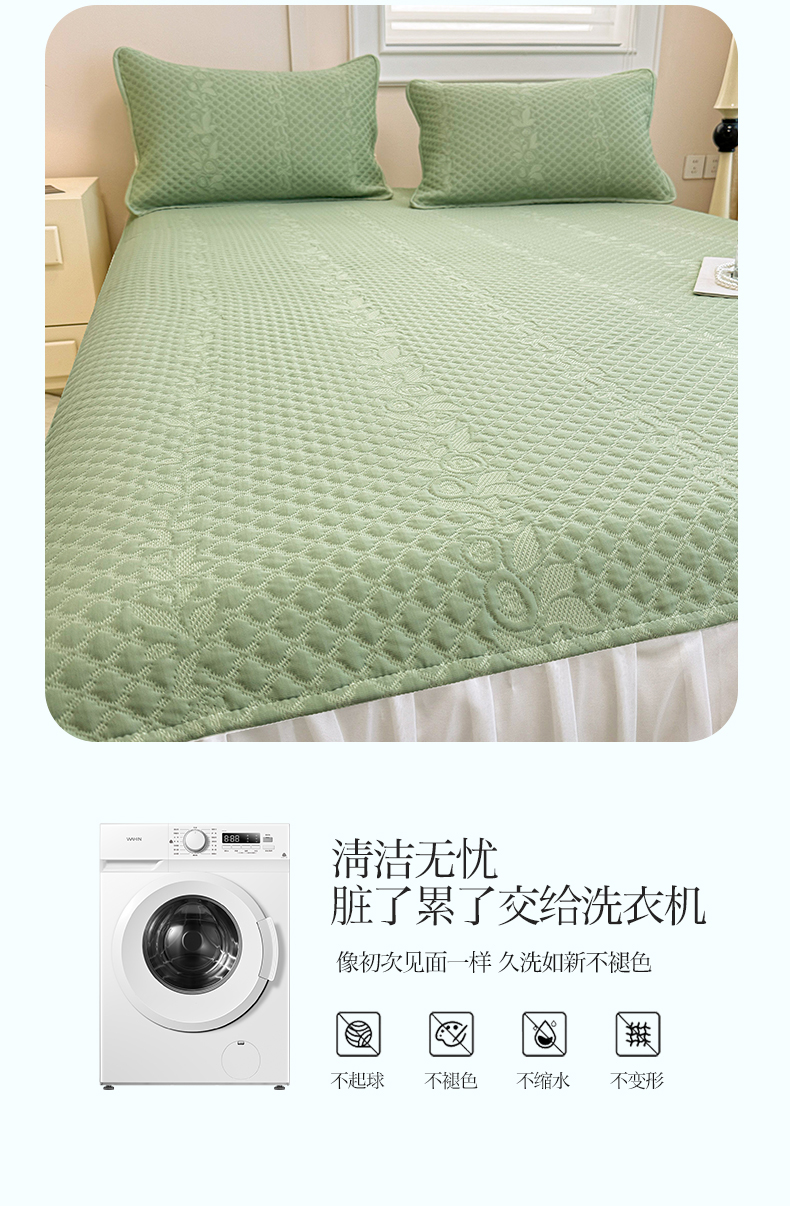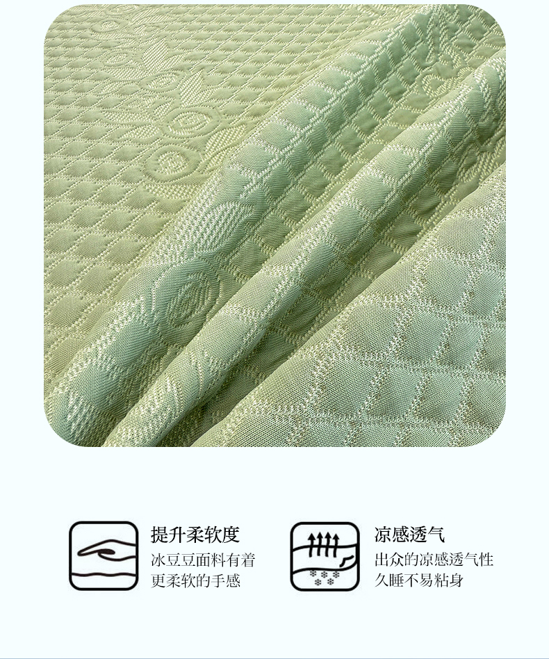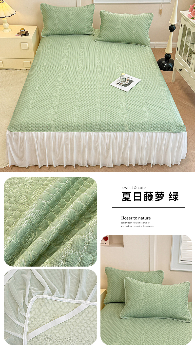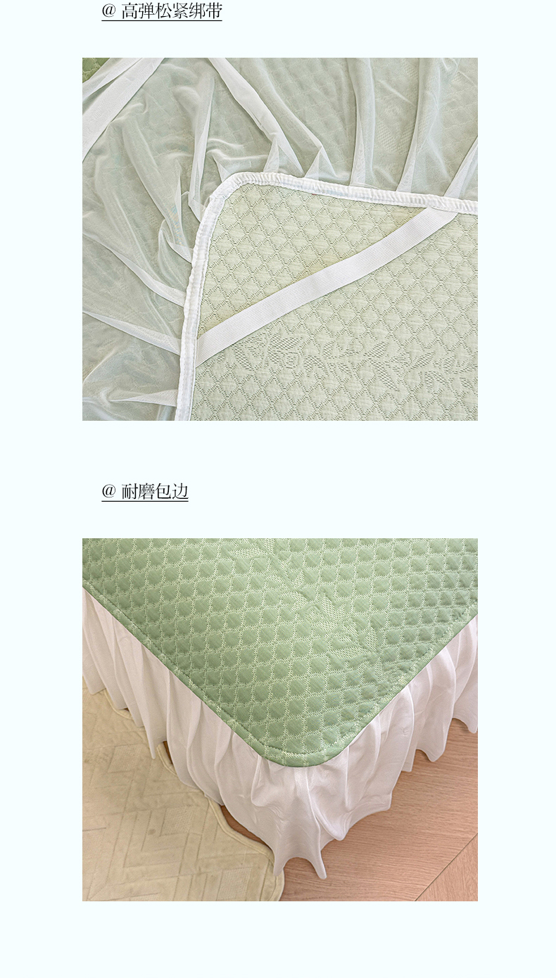 商品名称:布卢姆床垫 2025新款A类PE乙纶冰豆豆凉席床裙款 夏日藤萝 绿