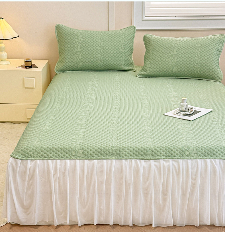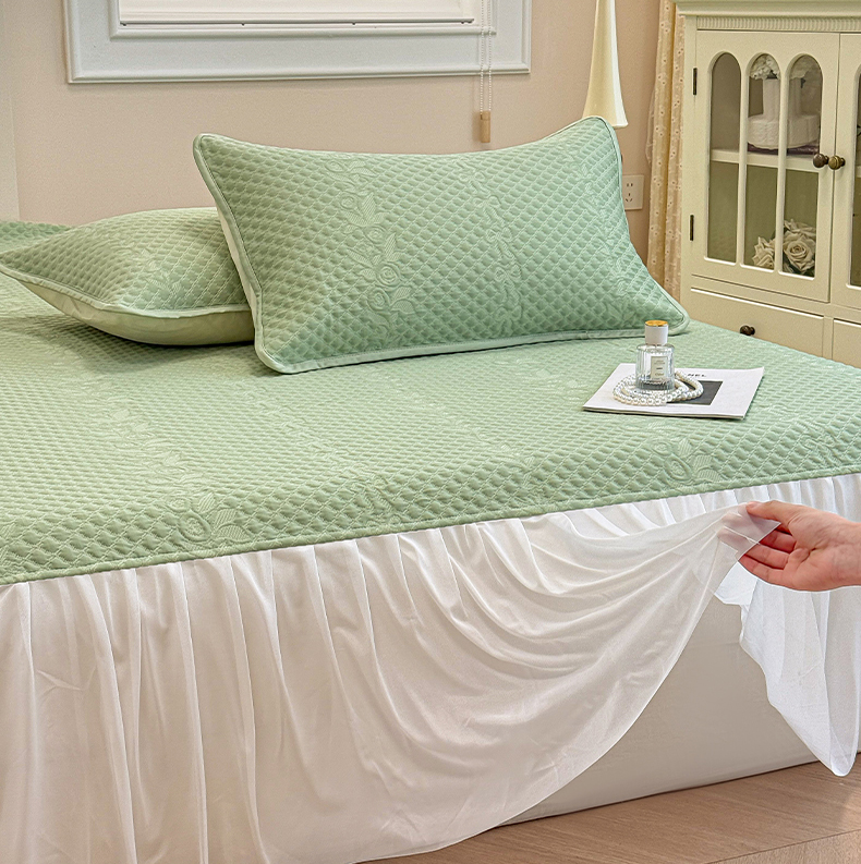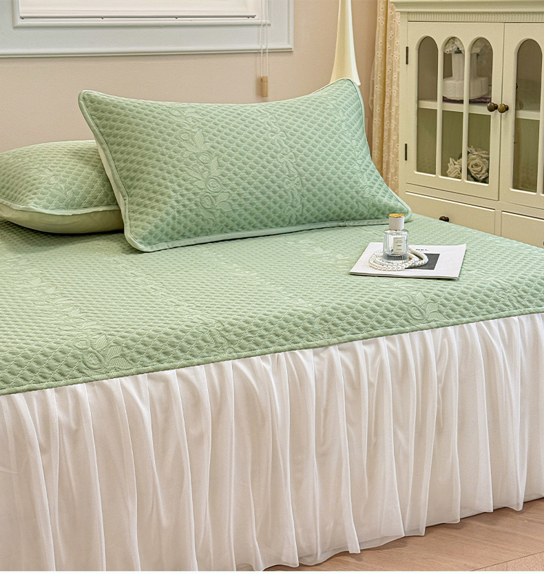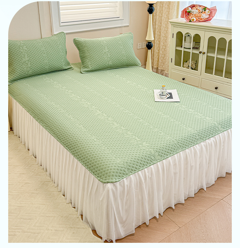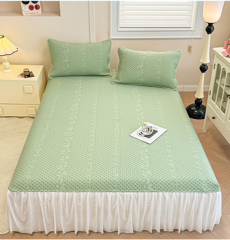商品名称:布卢姆床垫 2025新款A类PE乙纶冰豆豆凉席床裙款 夏日藤萝 绿