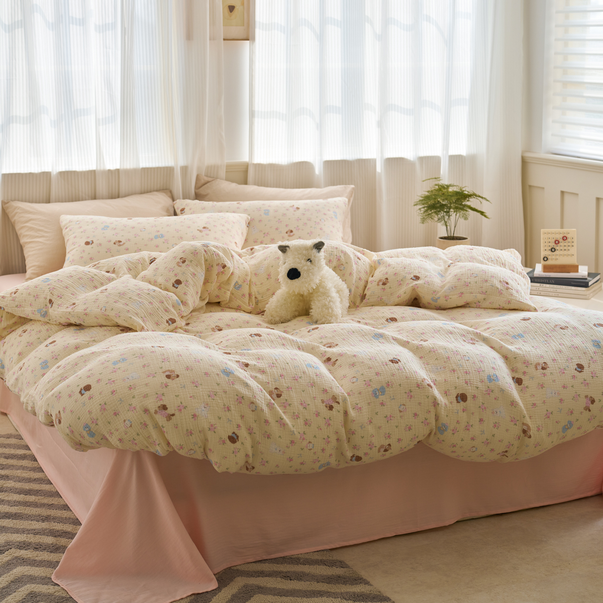 洋铭区(原狠狠爱) 2025新款全棉纯棉皱皱纱四件套 鹅黄小花