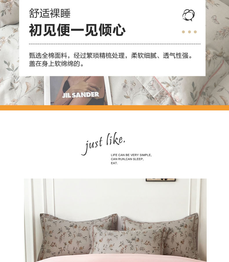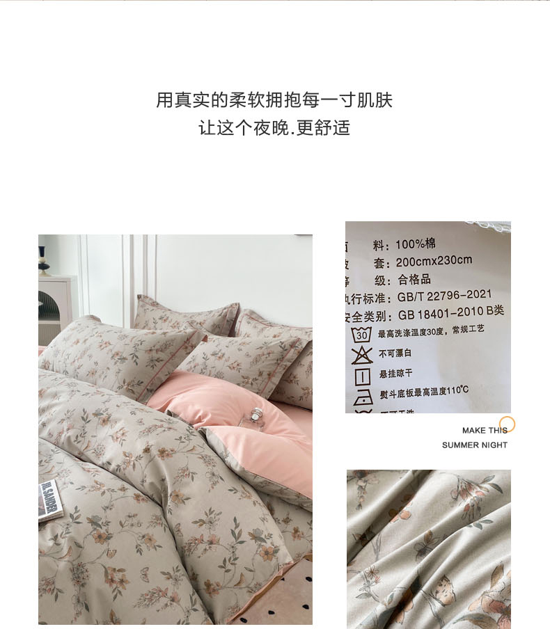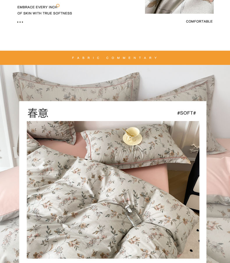 当前位置: 91家纺网 > 商品网购 > 床品套件 > 四件套 > 全棉普通四件套 > 星期三家纺 2025年5月春夏新款铂金全棉13372四件套(加老板微信有会员价) 春意