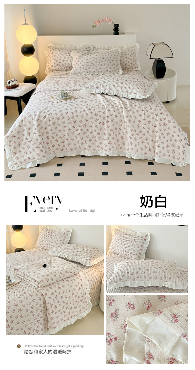 (总)同田家纺 2025新款A类水洗棉夹棉床盖四件套,小蝴蝶结,花香,玫瑰,茉莉奶白,车厘子,玫瑰花茶,小爱心,线条花,波点,繁花