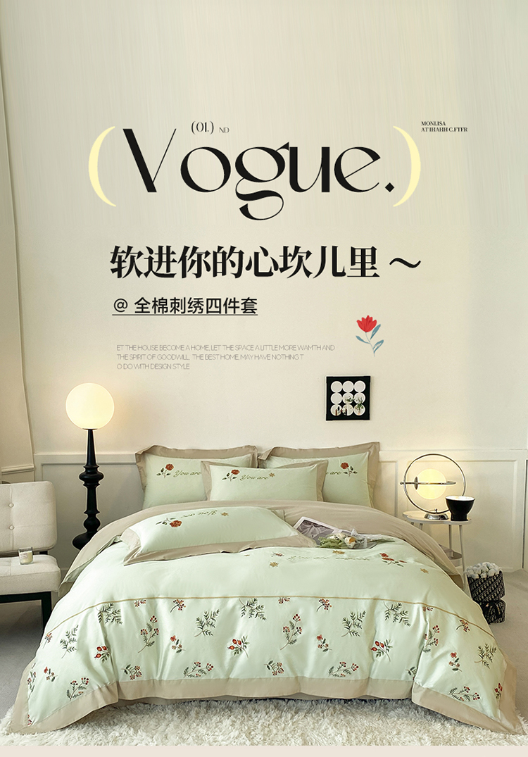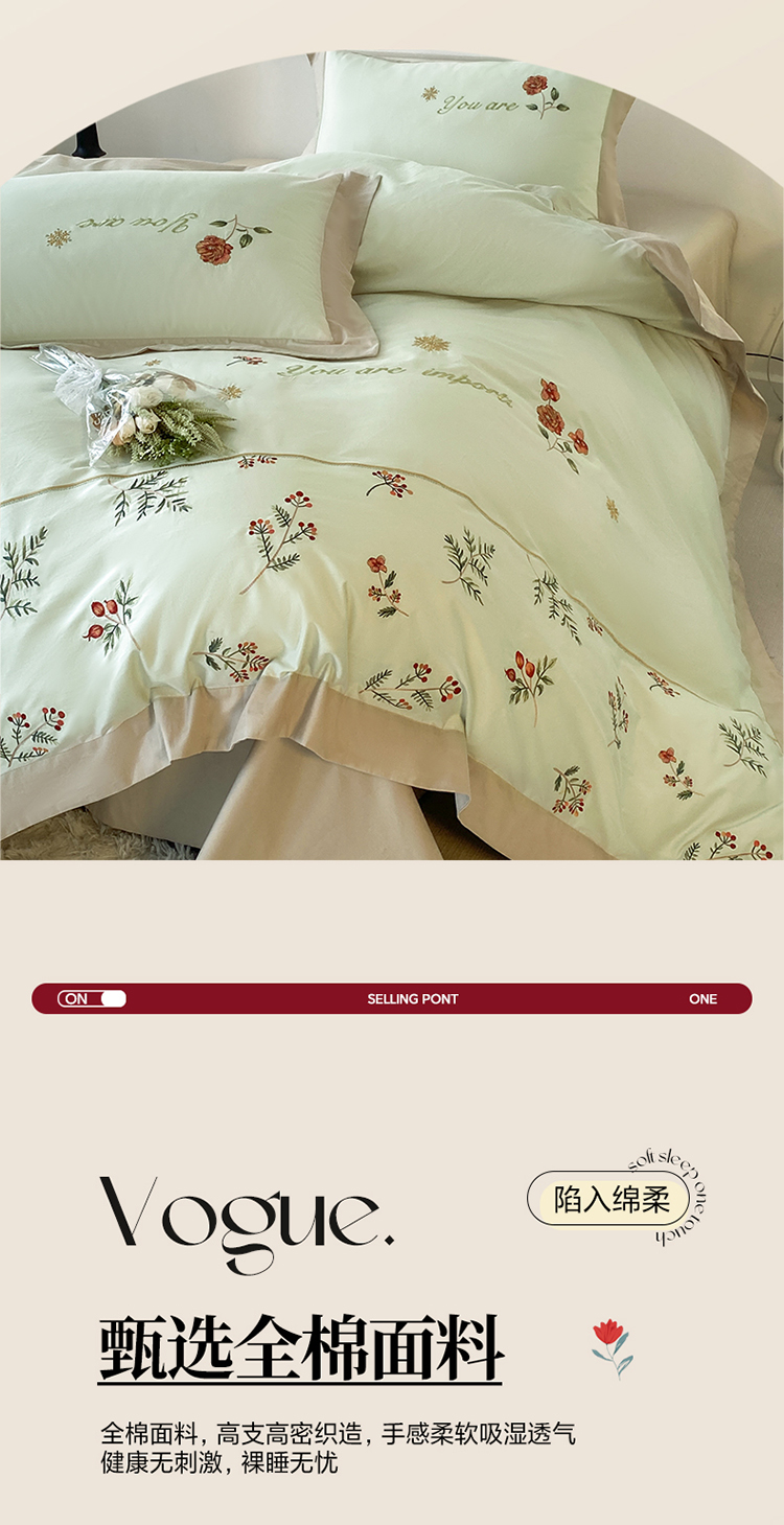 (总)遇见家居生活馆 2025新款亲肤棉刺绣四件套-花田里,花田里-白粉,花田里-冰清绿,花田里-公主粉,花田里-灰粉,花田里-香槟色,花田里-香芋紫,花田里-樱花粉