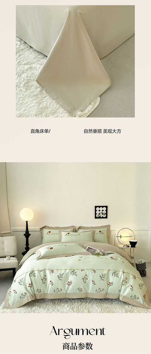商品名称:2025新款小清新全棉纯棉四件套-若溪 麦田绿