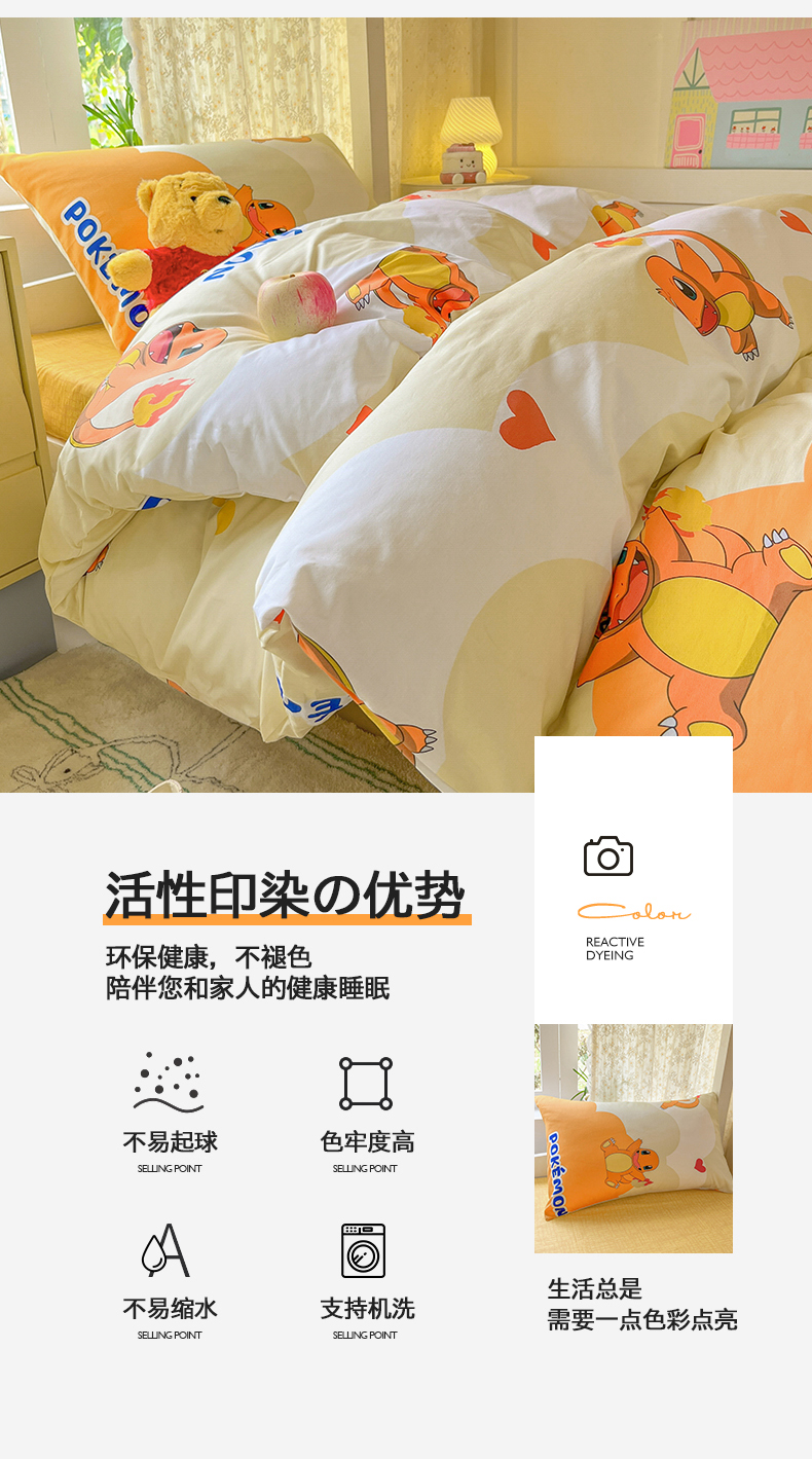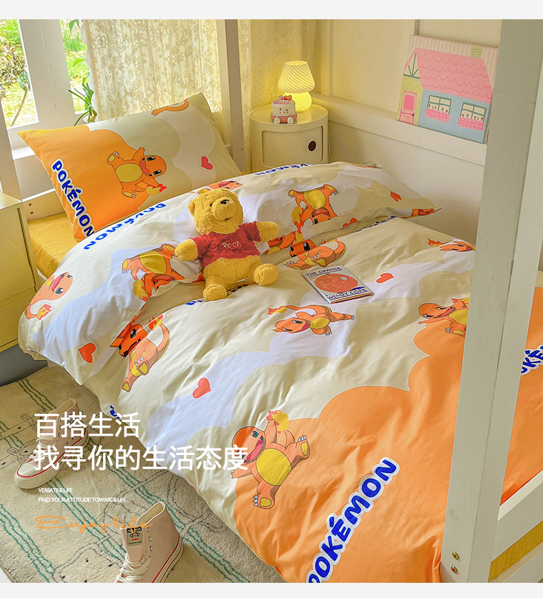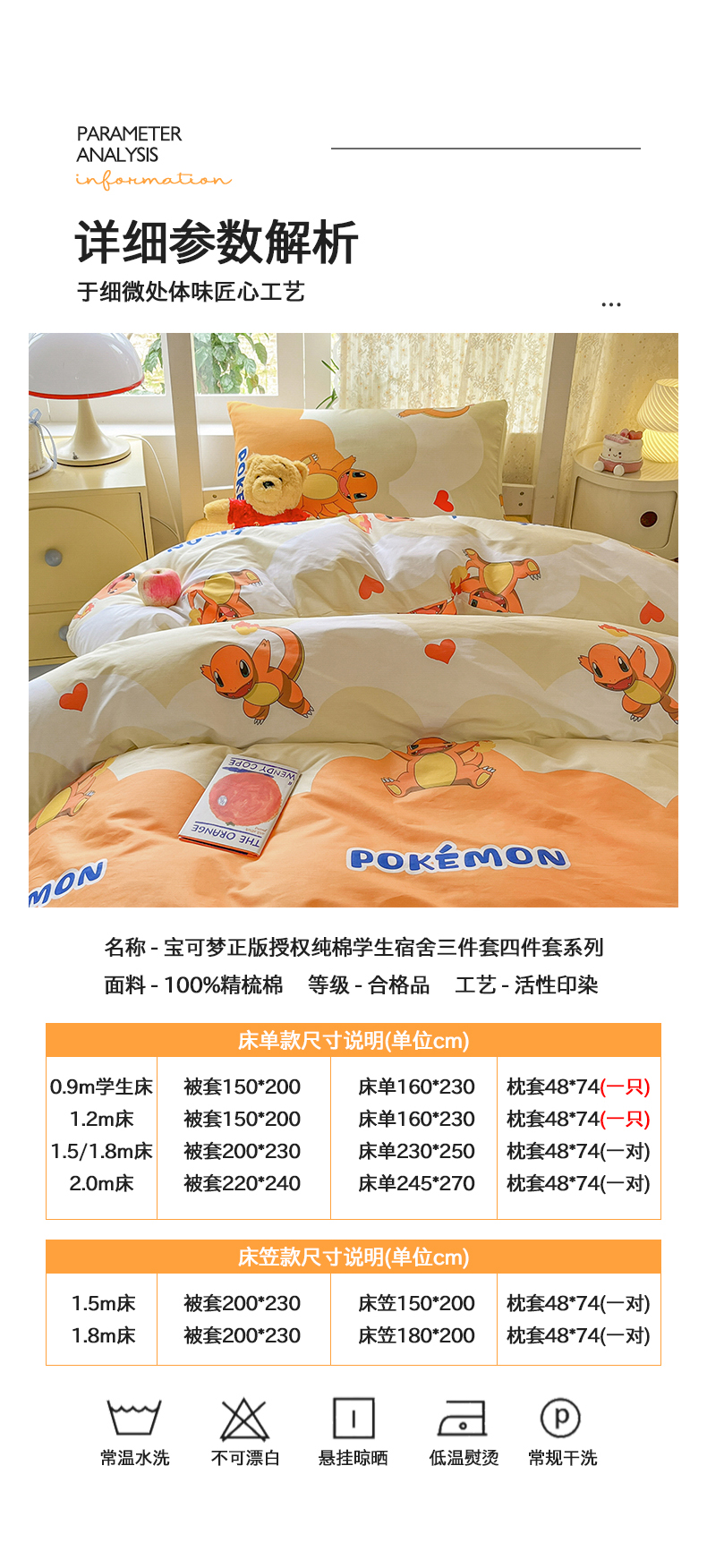 当前位置: 91家纺网 > 商品网购 > 床品套件 > 四件套 > 全棉普通四件套 > 金爱家 2025新款宝可梦正版授权纯棉卡通皮卡丘学生宿舍三件套四件套系列 棉宝可梦-开心喷火龙