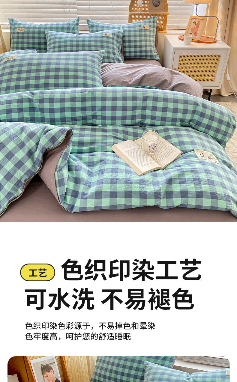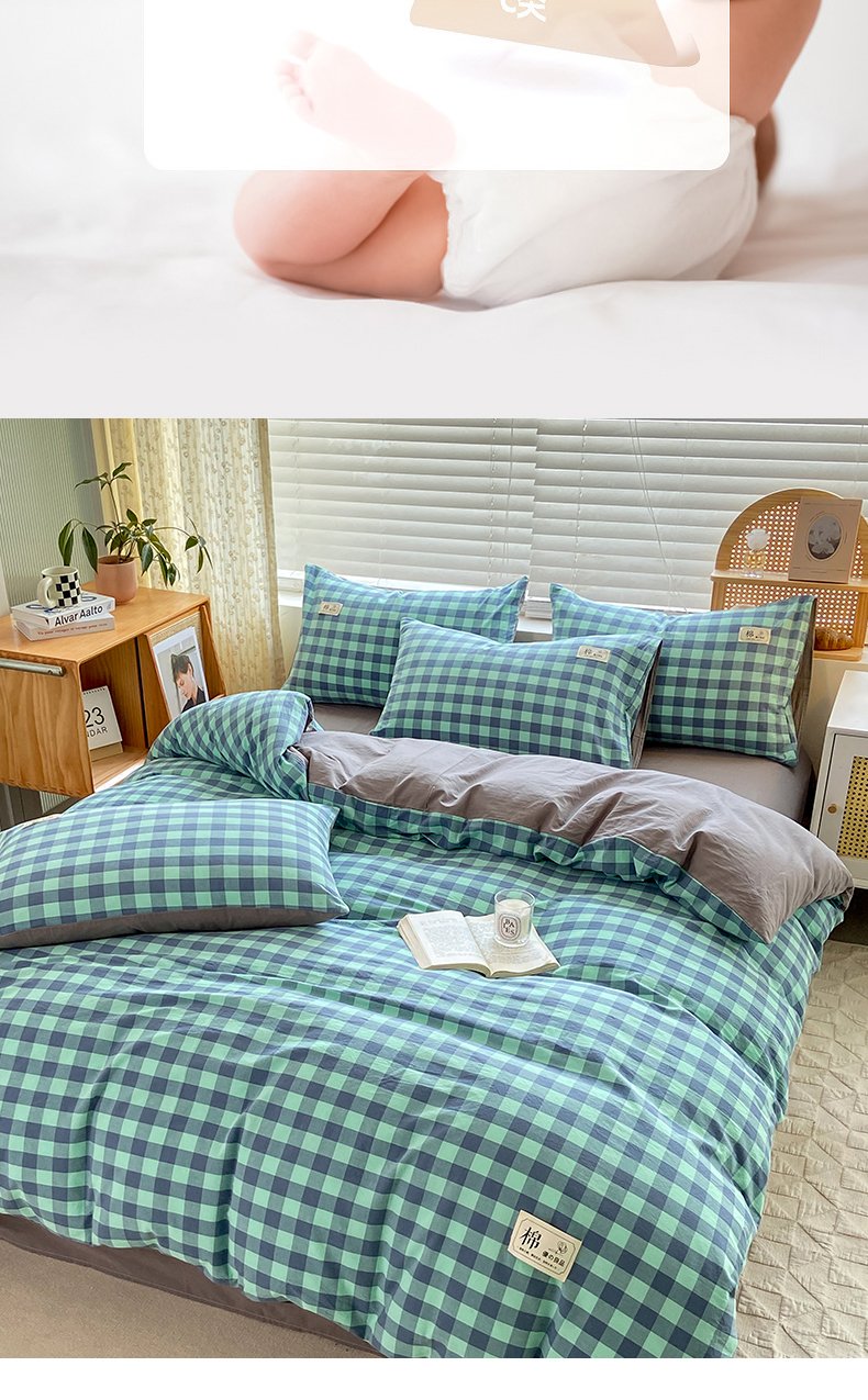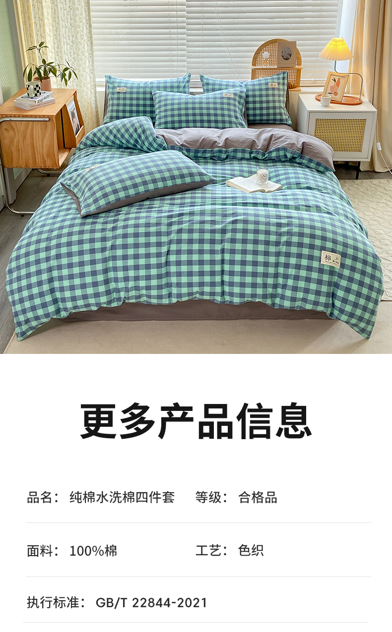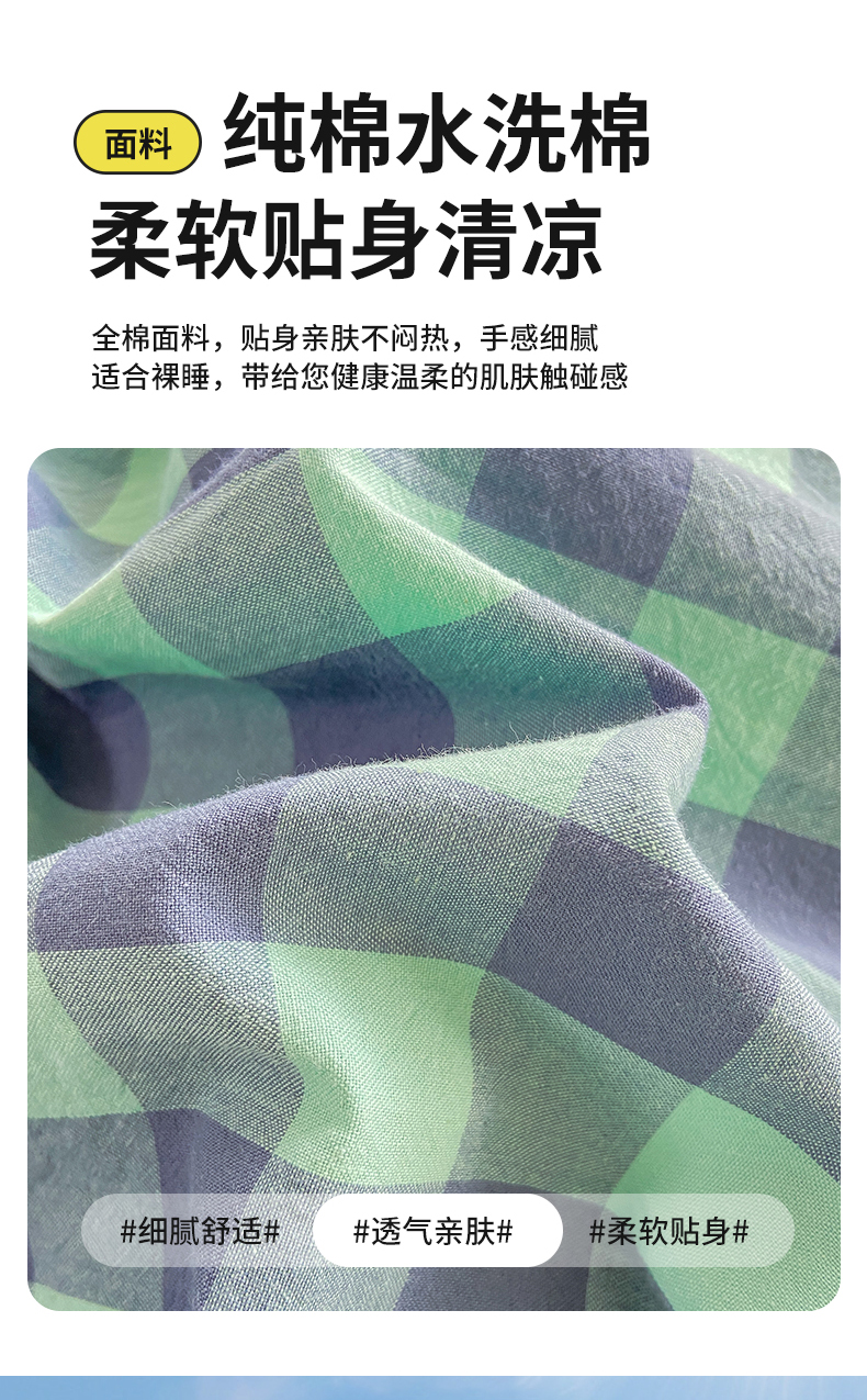 商品名称:恋人优选 2025新款A类全棉纯棉水洗棉系列(AB版)单被套 被套单件 蓝绿格(AB版)