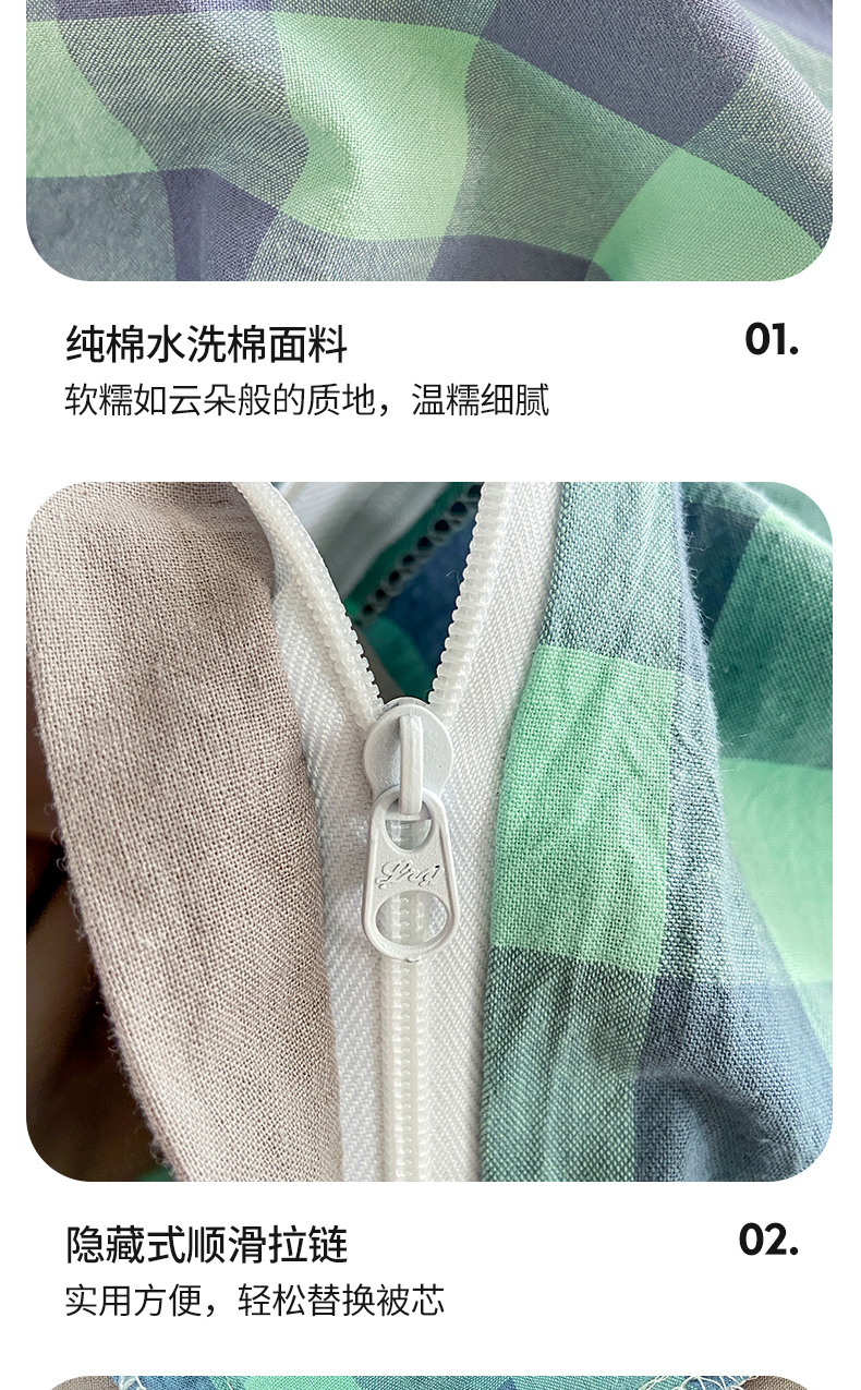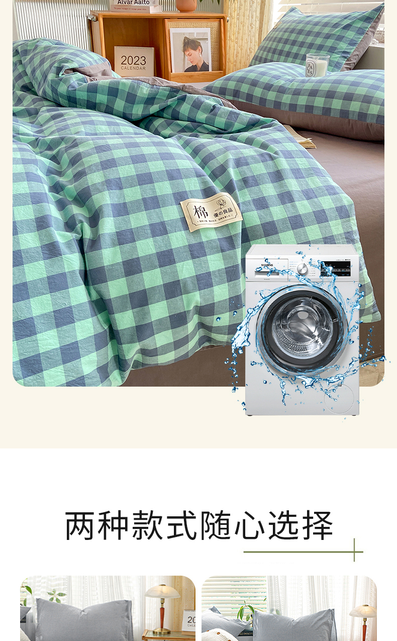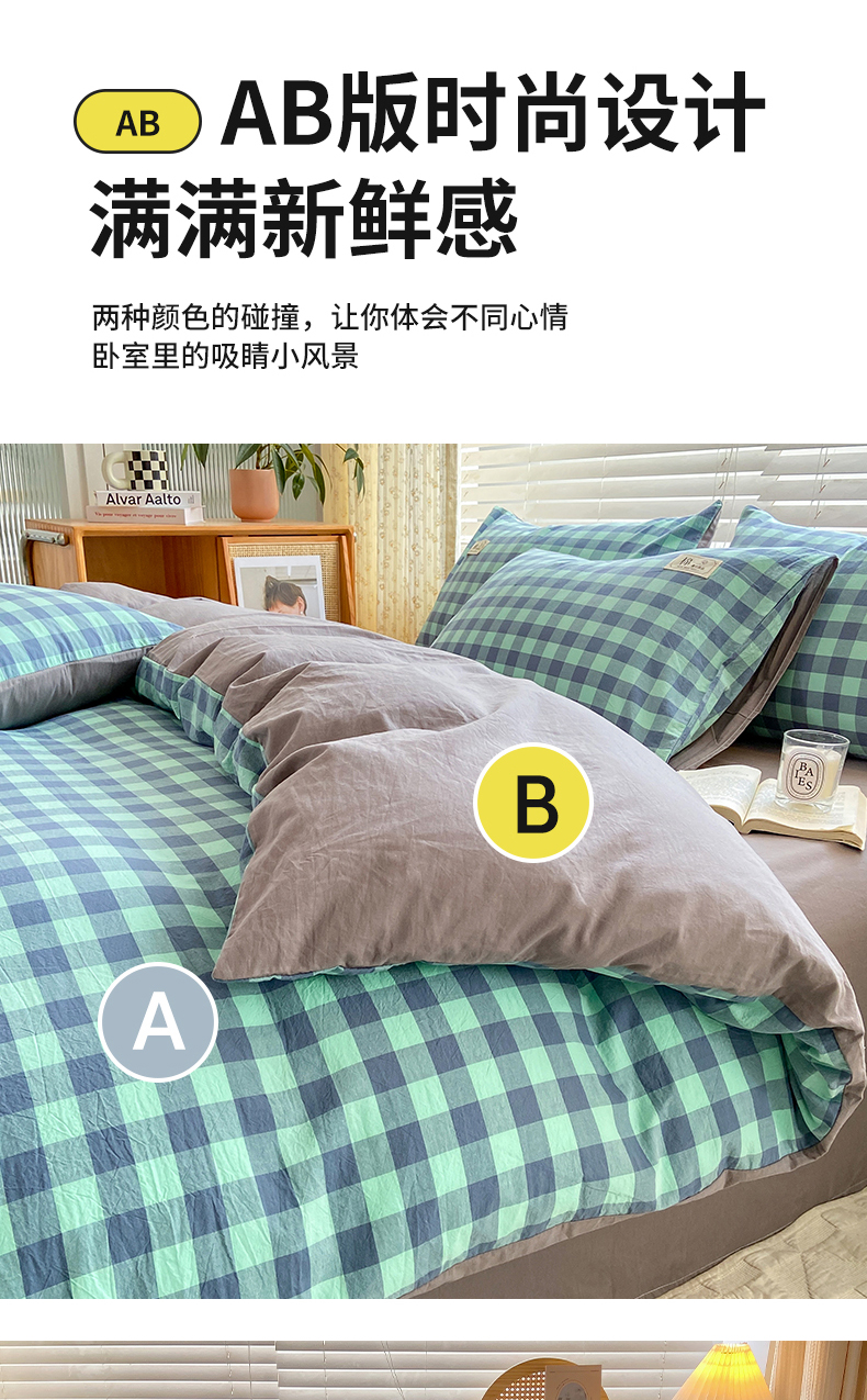 恋人优选 2025新款A类全棉纯棉水洗棉系列(AB版)单被套 被套单件 蓝绿格(AB版)