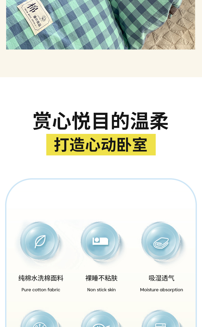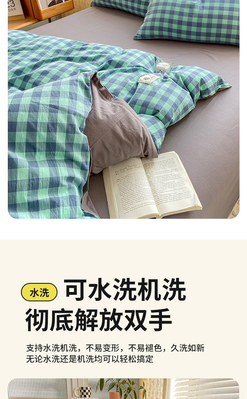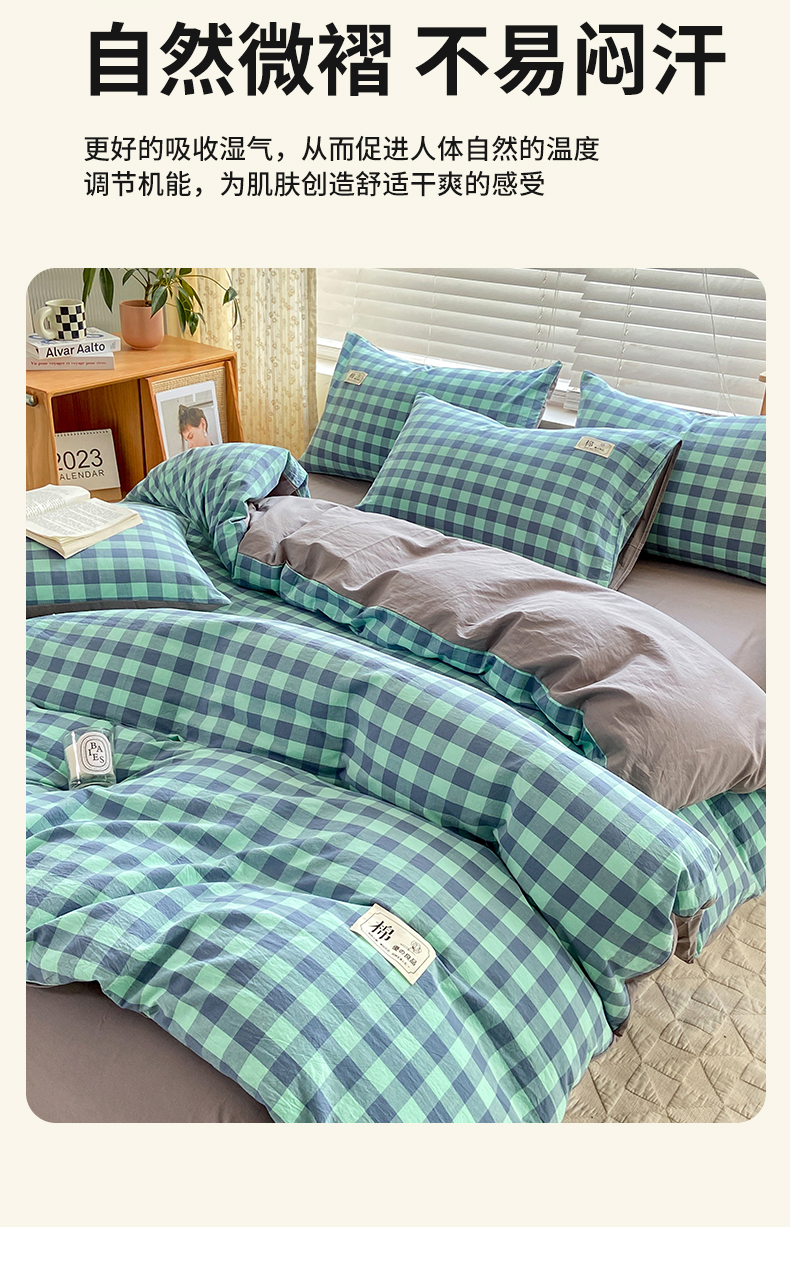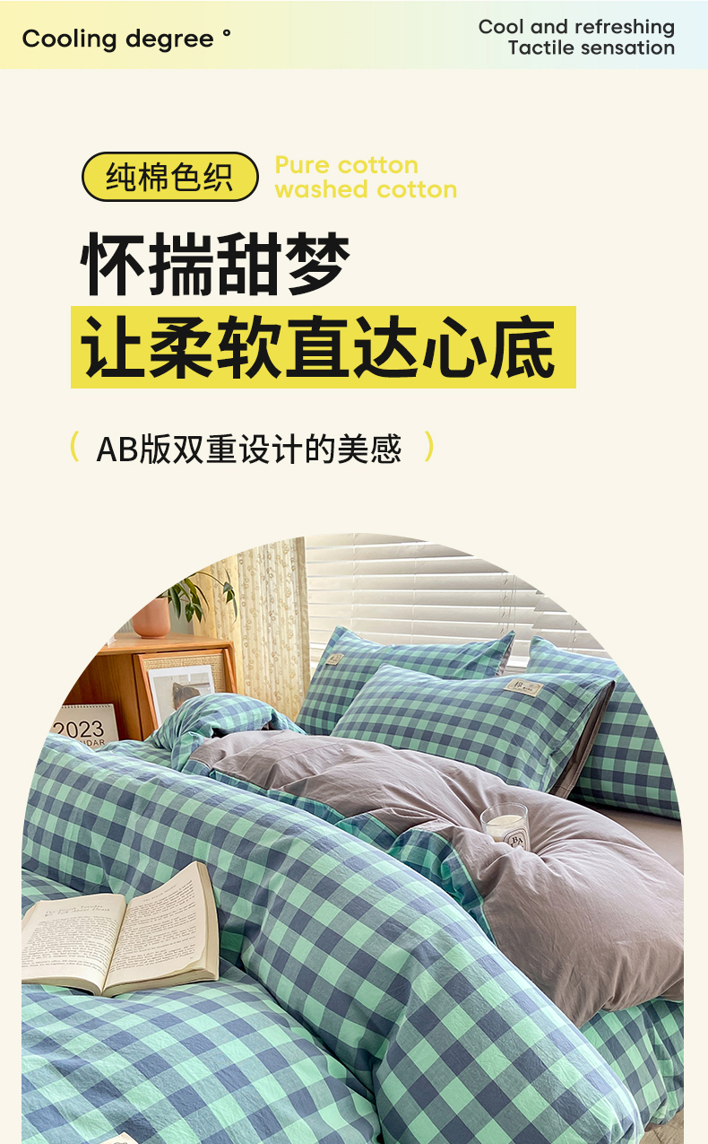 恋人优选 2025新款A类全棉纯棉水洗棉系列(AB版)单被套 被套单件 蓝绿格(AB版)
