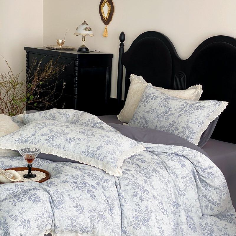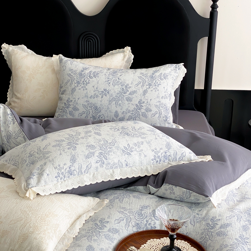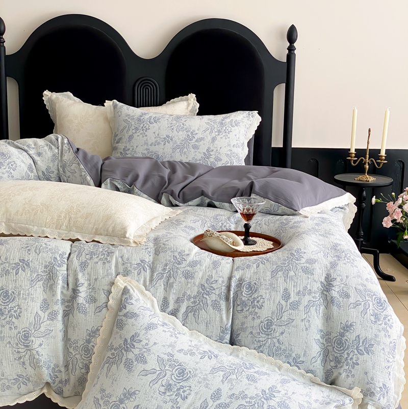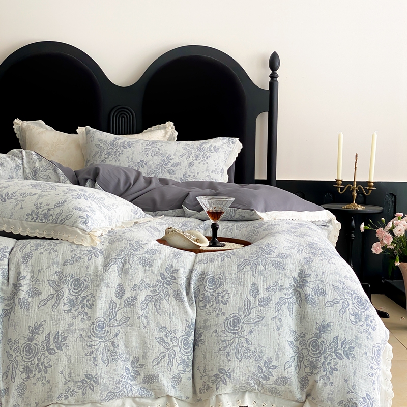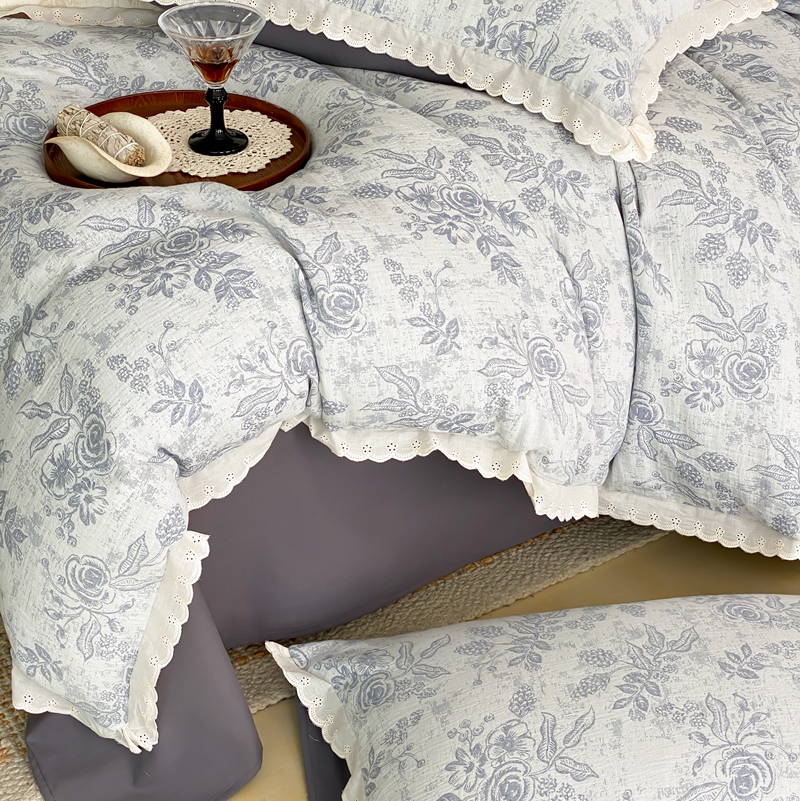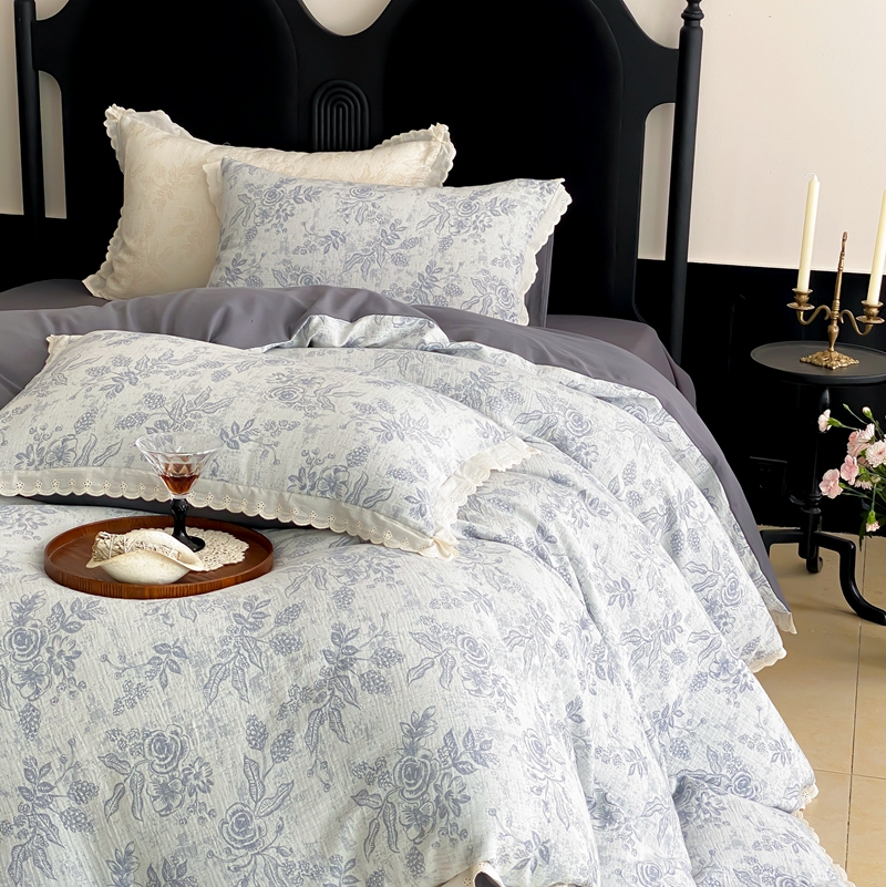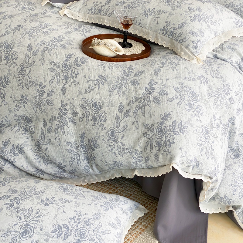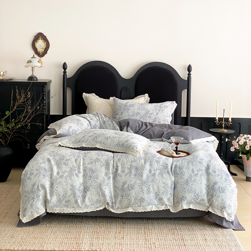 商品名称:梦享生活家居2025新款色织全棉双层纱提花四件套 洛莉灰