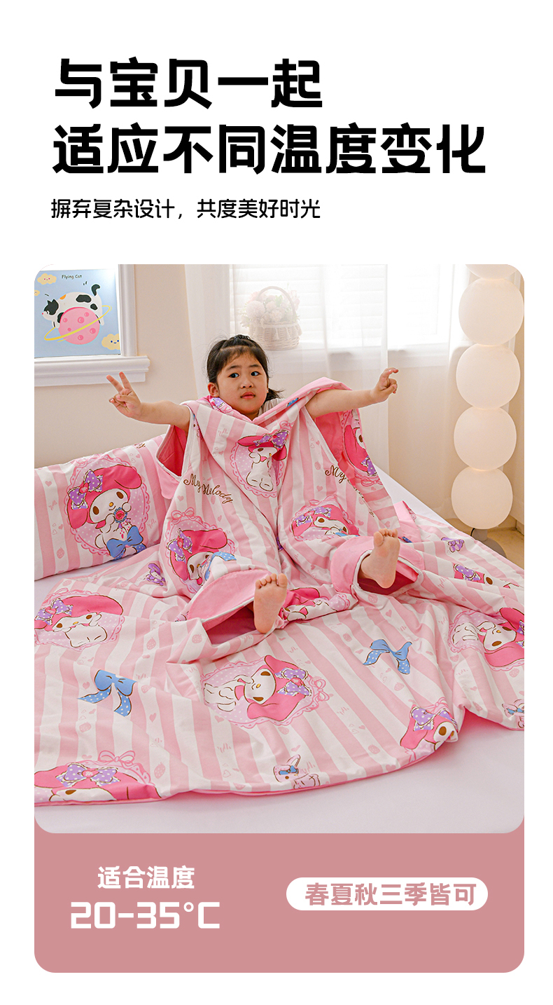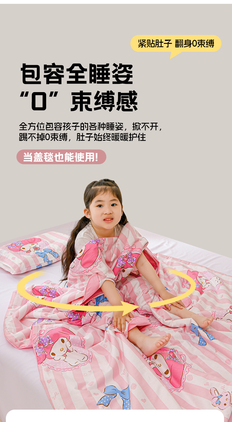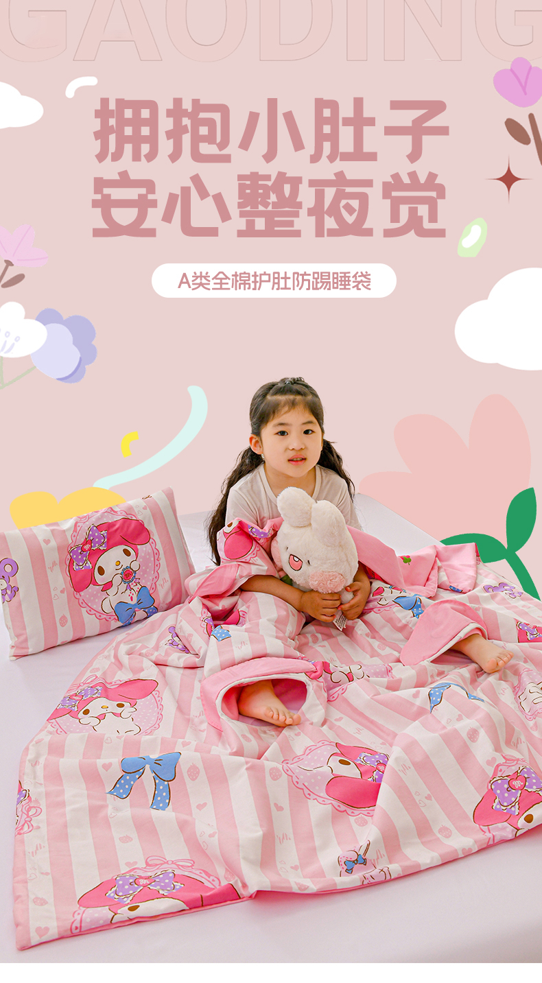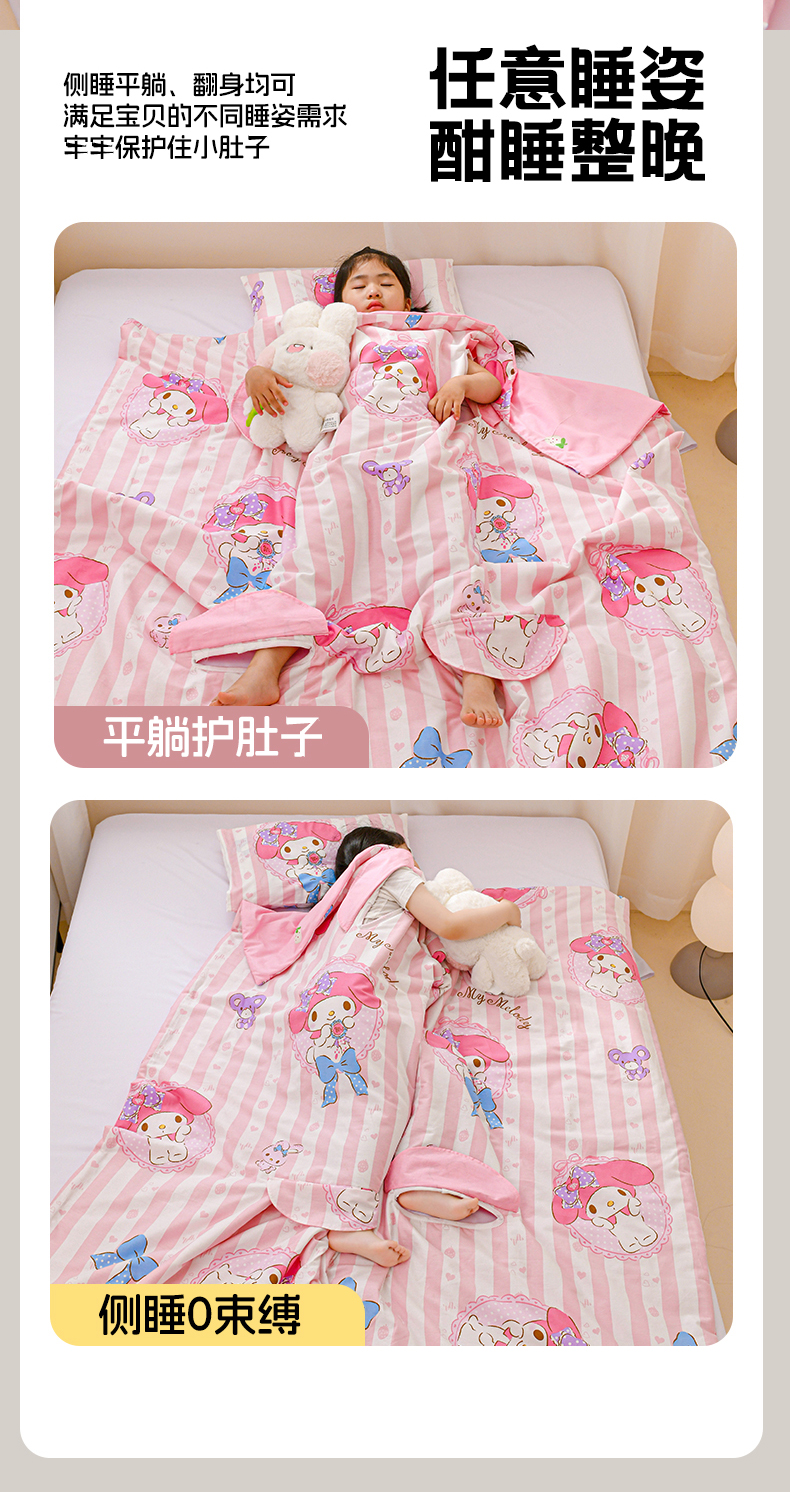 商品名称:名兮家居 2025新款正版授权全棉儿童护肚防踢盖毯 防踢被-竖条美乐蒂
