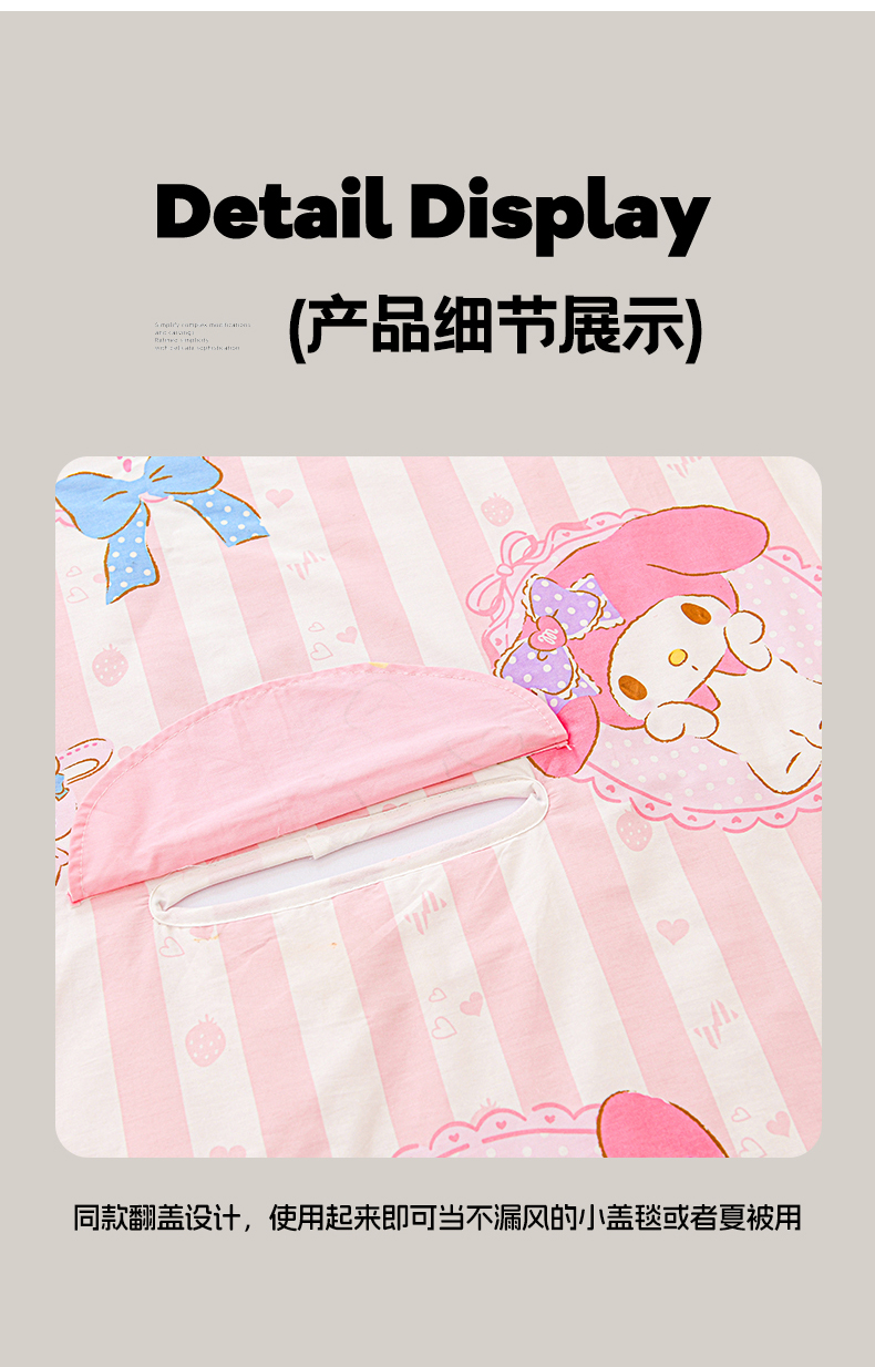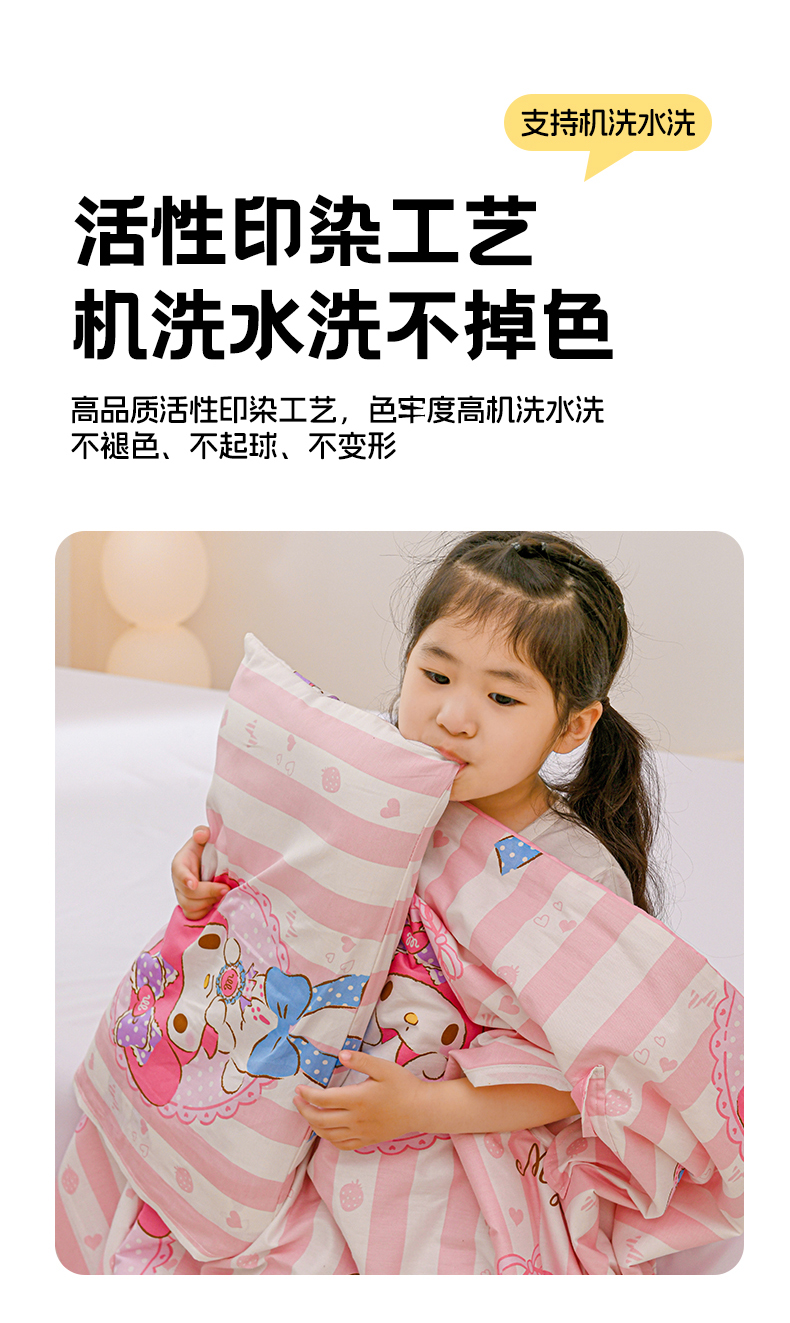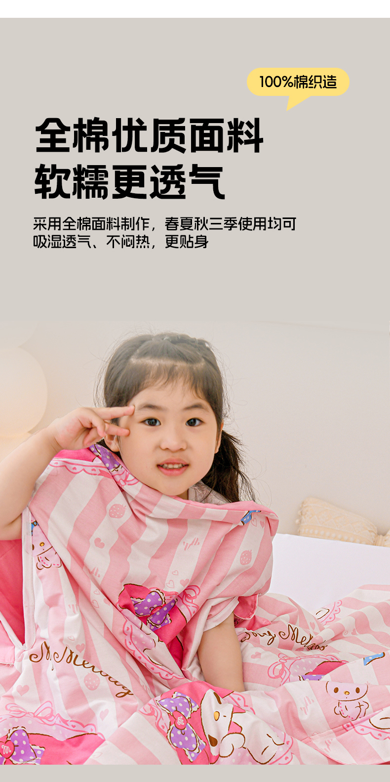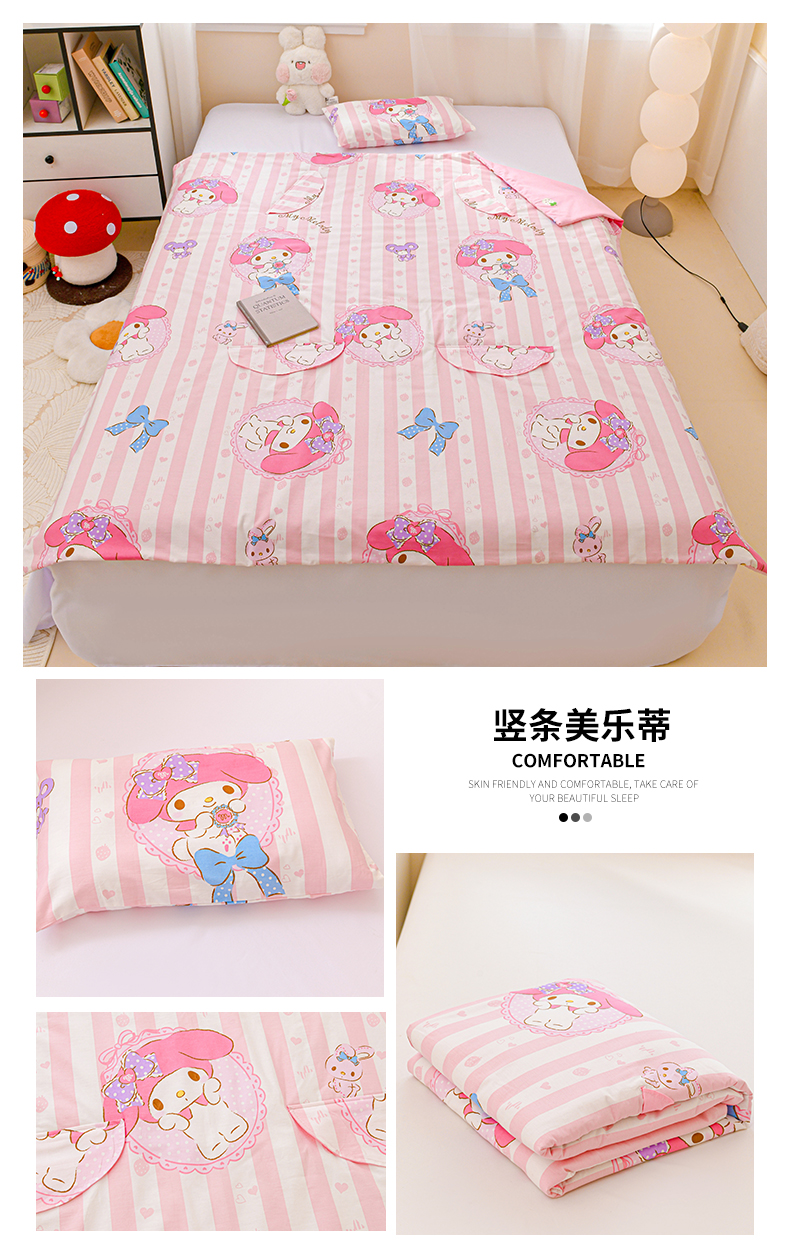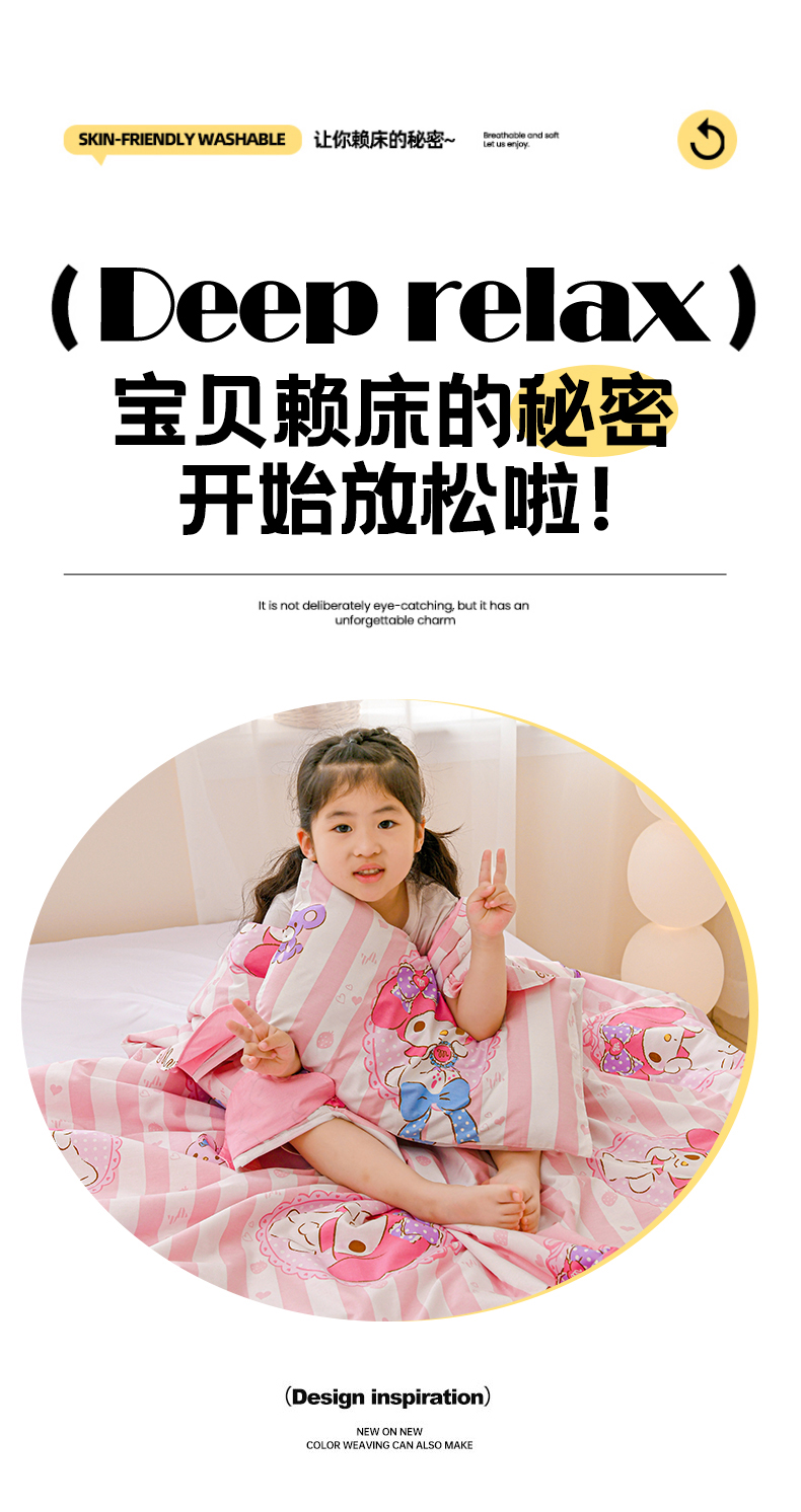 商品名称:名兮家居 2025新款正版授权全棉儿童护肚防踢盖毯 防踢被-竖条美乐蒂