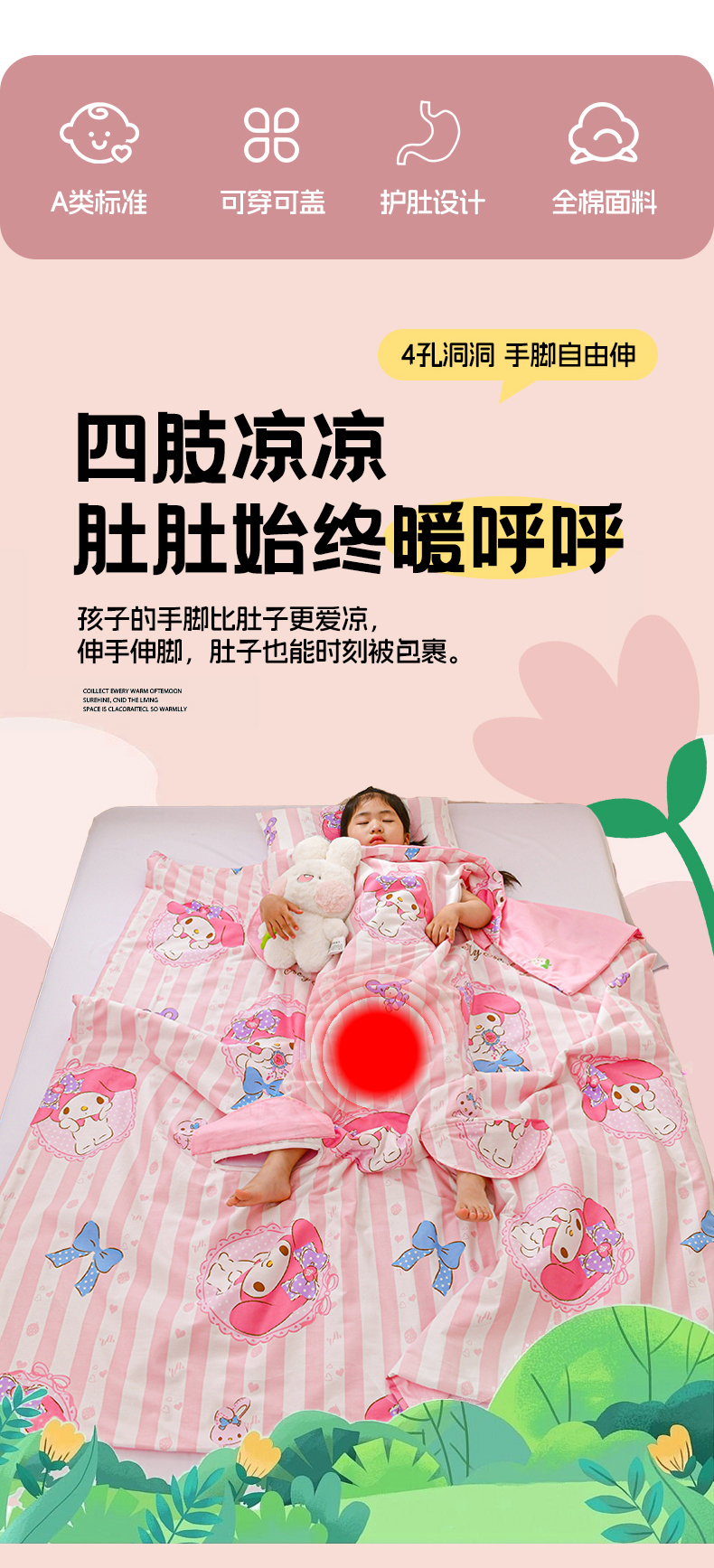 名兮家居 2025新款正版授权全棉儿童护肚防踢盖毯 防踢被-竖条美乐蒂