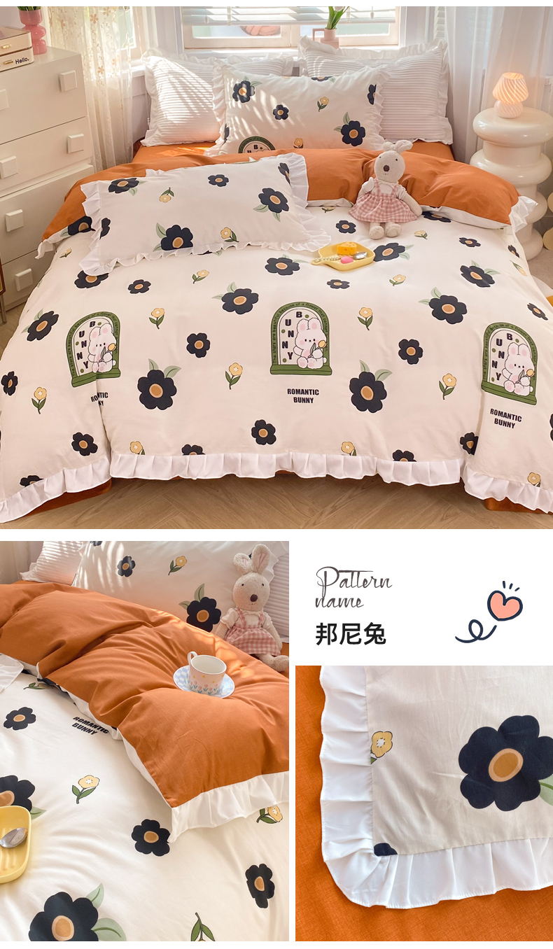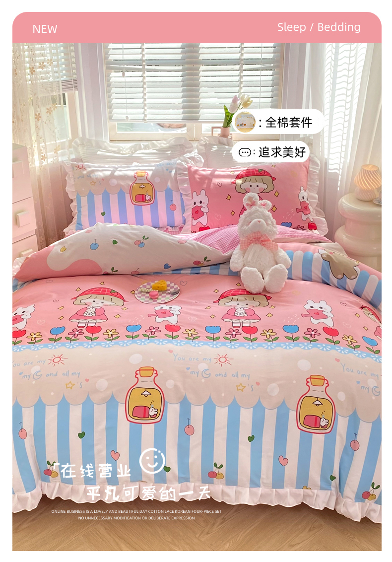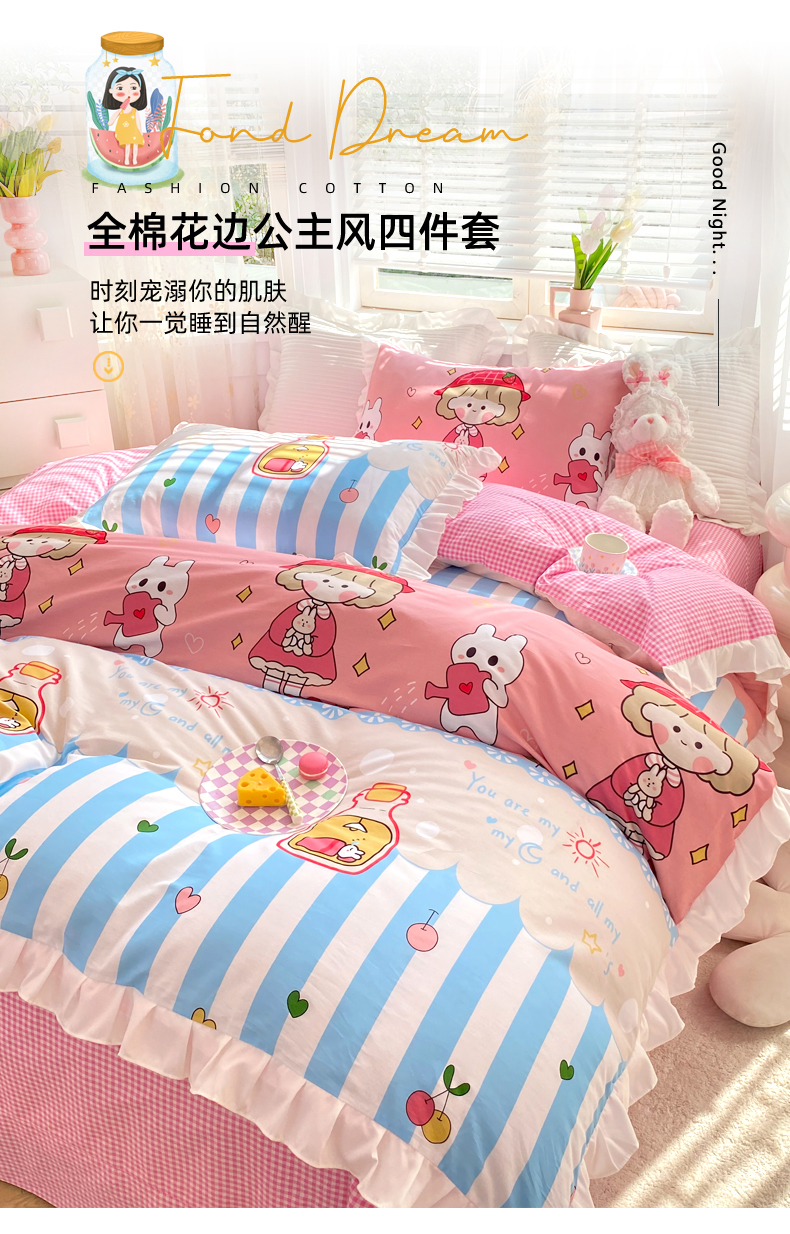 商品名称:玉元坊 2025春夏新款公主风全棉纯棉花边被套床单四件套 漂流瓶